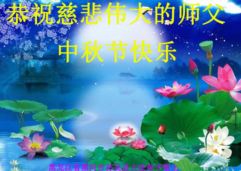 师尊您好!我们是北京市海淀区、西城区、石景山区四位老年大法弟子。在中国传统节日中秋节到来之际,以无比崇敬和感恩之心恭祝慈悲伟大的师尊中秋节快乐!师尊过节好!
