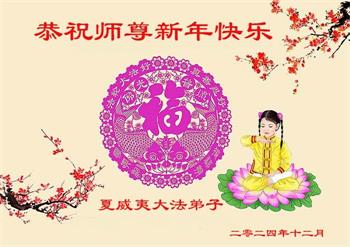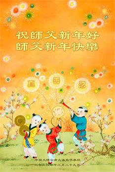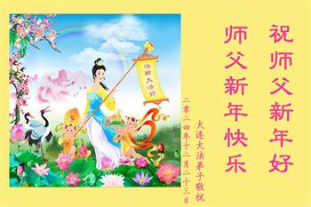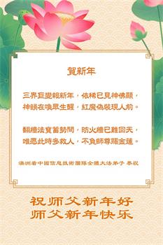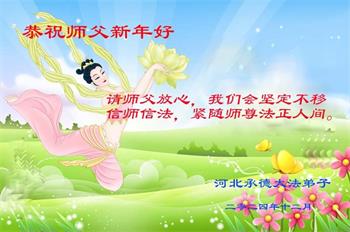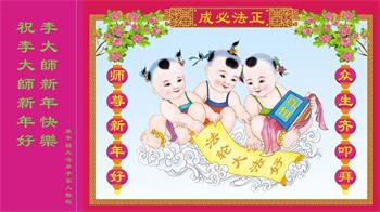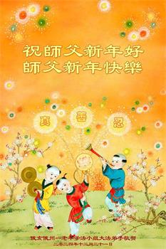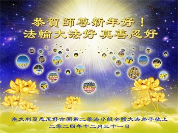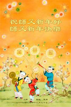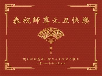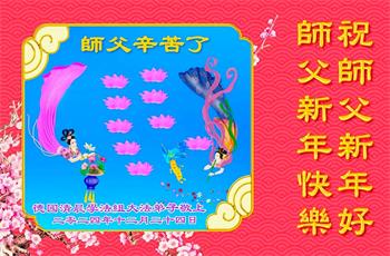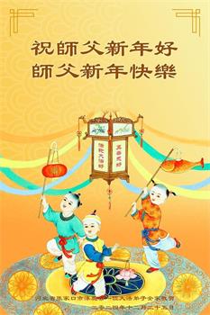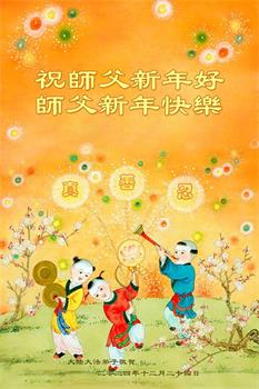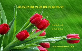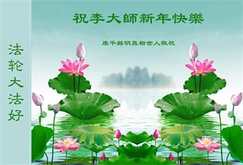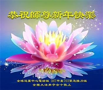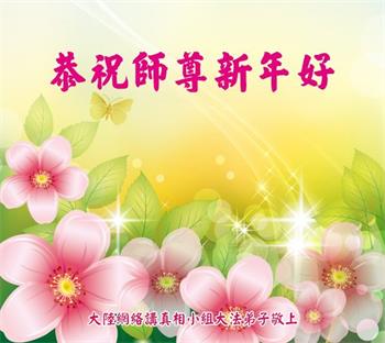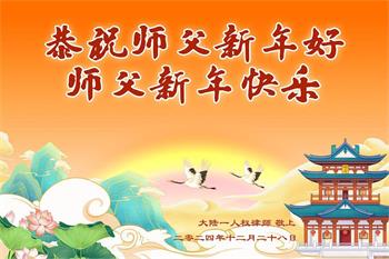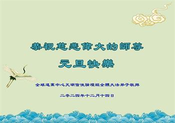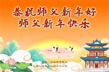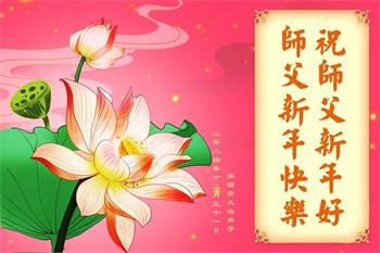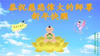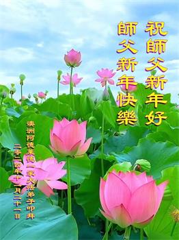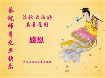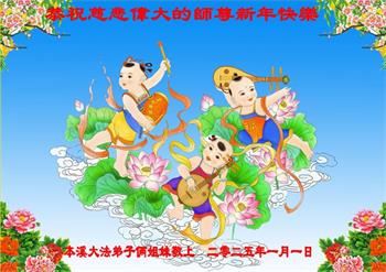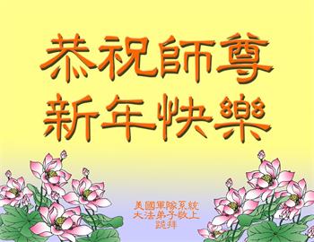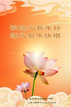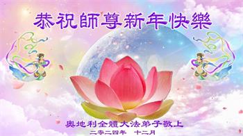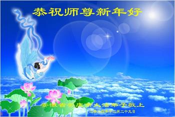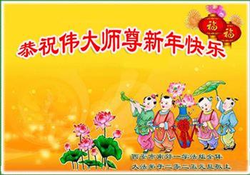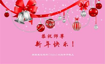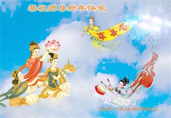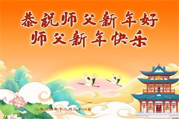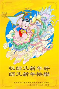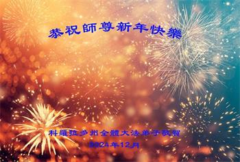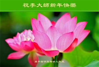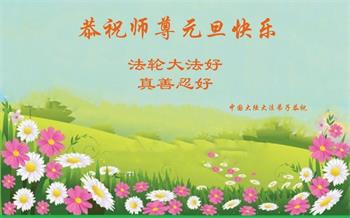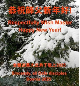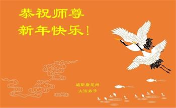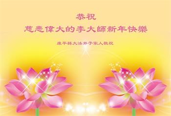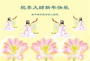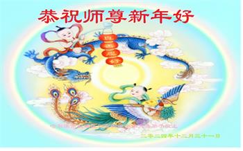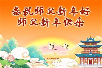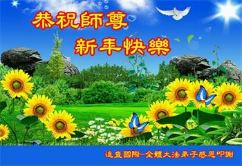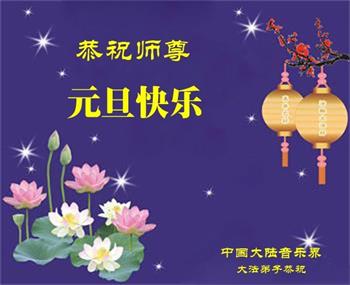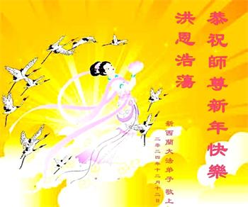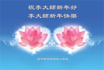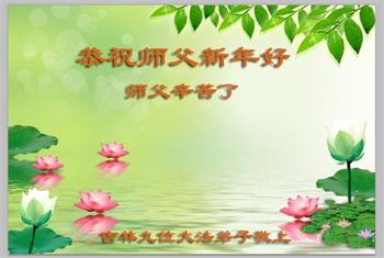 下面是部份来自美国、澳大利亚、加拿大、新西兰、德国、挪威、芬兰、爱沙尼亚、丹麦、荷兰、俄罗斯、奥地利、匈牙利、塞尔维亚、希腊、越南、印度、日本、韩国、新加坡、台湾、香港、老挝、马来西亚、印度尼西亚、泰国、阿富汗、秘鲁、哥伦比亚、哥斯达黎加、罗马尼亚、伊朗、阿联酋、波黑、保加利亚、波兰、以色列、乌克兰、英国、爱尔兰、法国、苏格兰、英格兰、西班牙、意大利、瑞士、瑞典、墨西哥、突尼斯、厄瓜多尔、比利时、葡萄牙、斯洛伐克、巴勒斯坦、沙特阿拉伯、阿拉伯叙利亚共和国、蒙古国、菲律宾、澳门、巴西、欧洲巴尔干地区、土耳其、等国家和地区大法弟子致敬师尊的新年问候。
