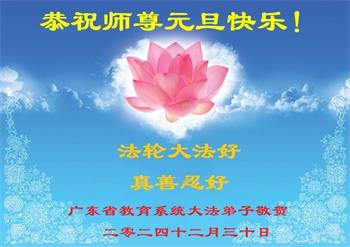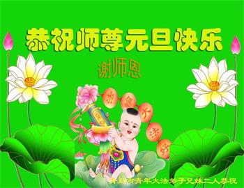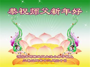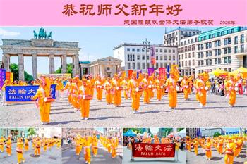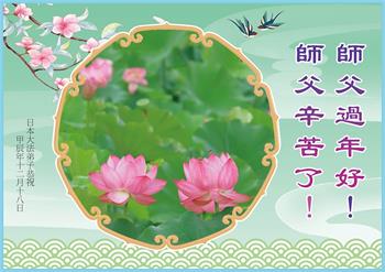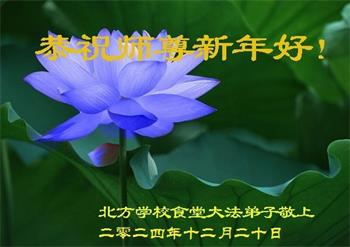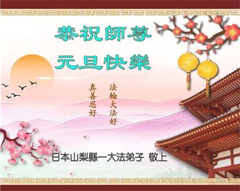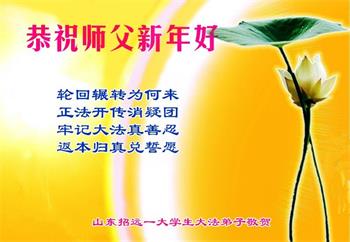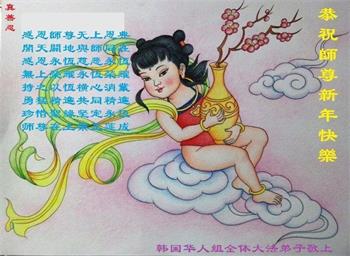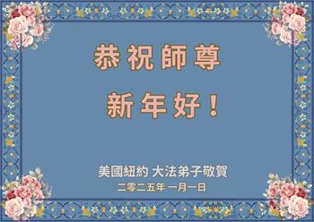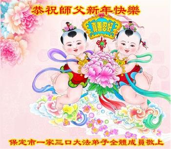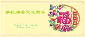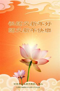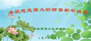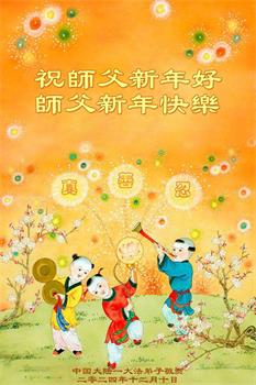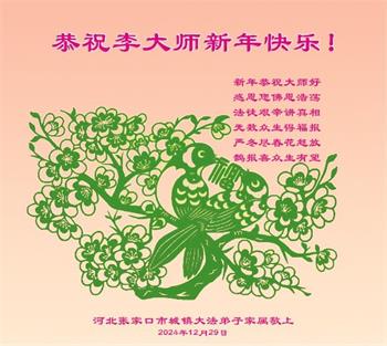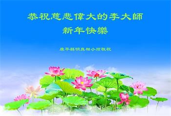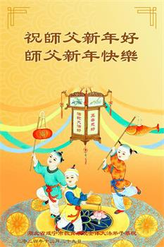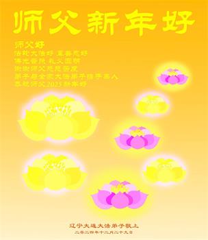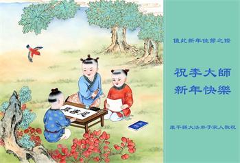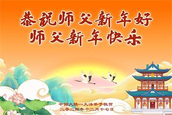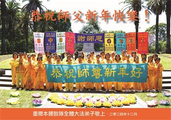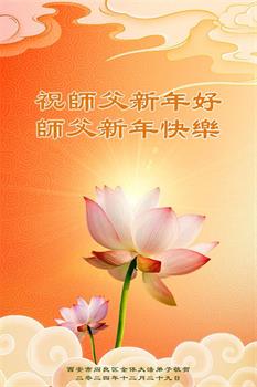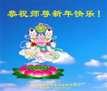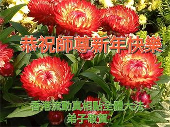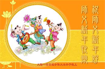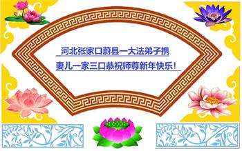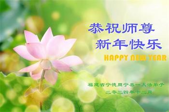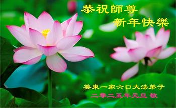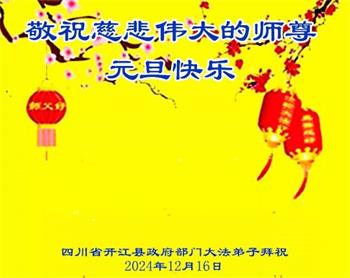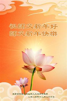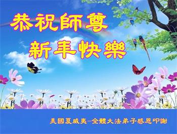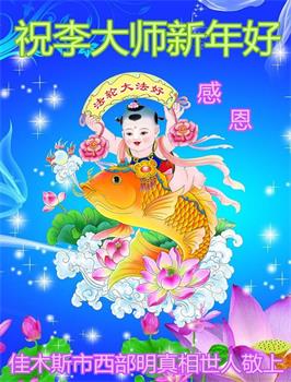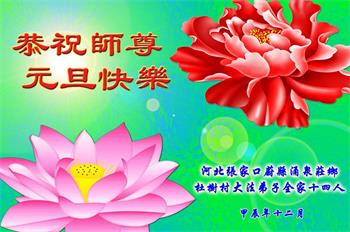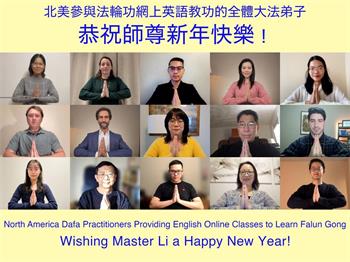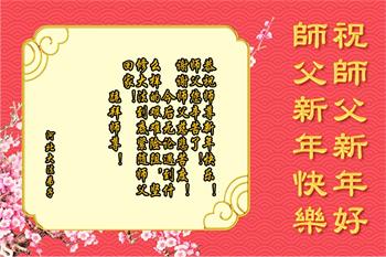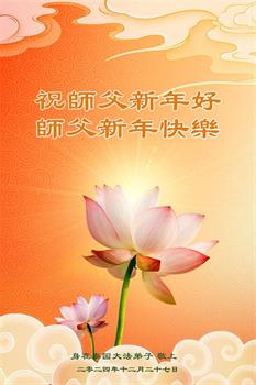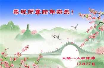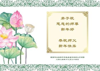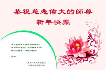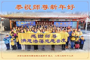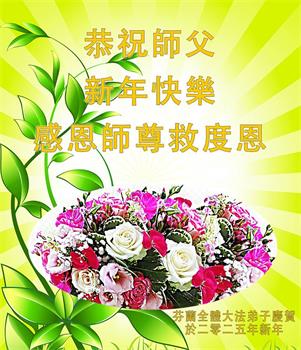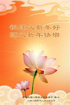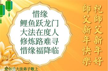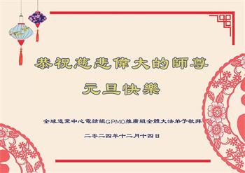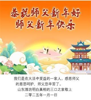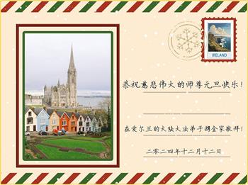 下面是部份来自美国、澳大利亚、加拿大、新西兰、德国、挪威、芬兰、爱沙尼亚、丹麦、荷兰、俄罗斯、奥地利、匈牙利、塞尔维亚、希腊、越南、印度、日本、韩国、新加坡、台湾、香港、老挝、马来西亚、印度尼西亚、泰国、阿富汗、秘鲁、哥伦比亚、哥斯达黎加、罗马尼亚、伊朗、阿联酋、波黑、保加利亚、波兰、以色列、乌克兰、英国、爱尔兰、法国、苏格兰、英格兰、西班牙、意大利、瑞士、瑞典、墨西哥、突尼斯、厄瓜多尔、比利时、葡萄牙、斯洛伐克、巴勒斯坦、沙特阿拉伯、阿拉伯叙利亚共和国、蒙古国、菲律宾、澳门、巴西、欧洲巴尔干地区、土耳其、等国家和地区大法弟子致敬师尊的新年问候。