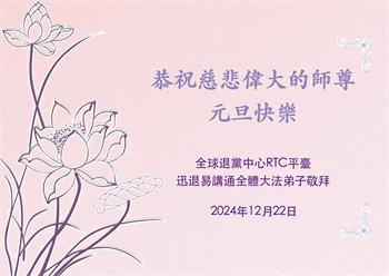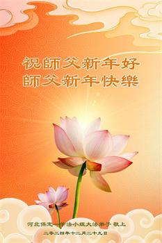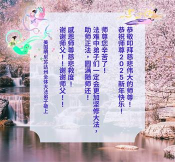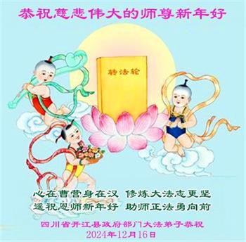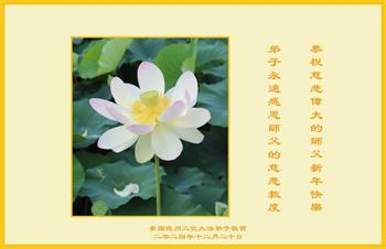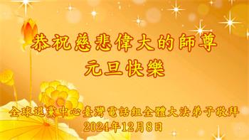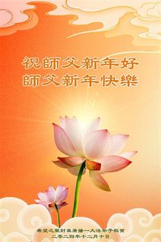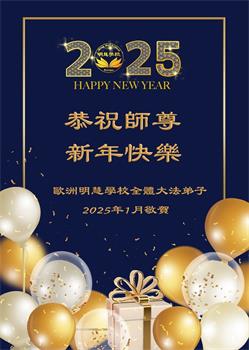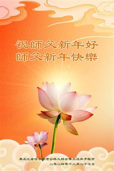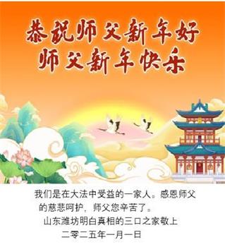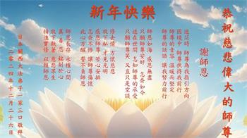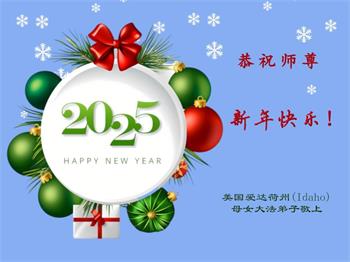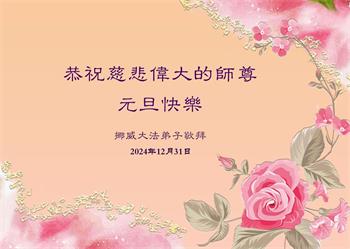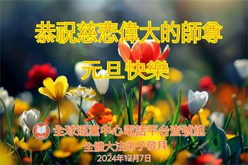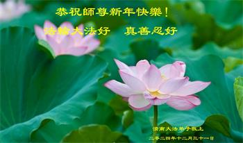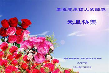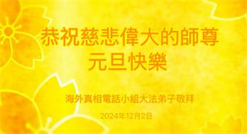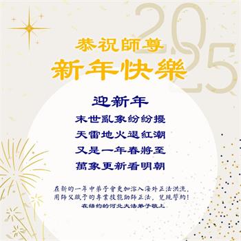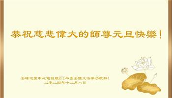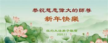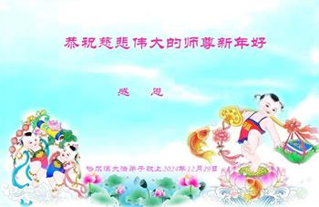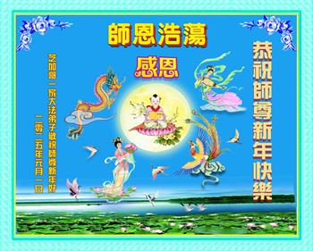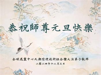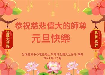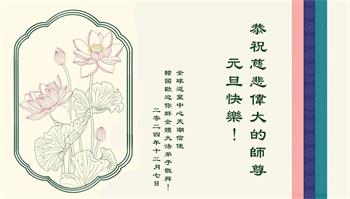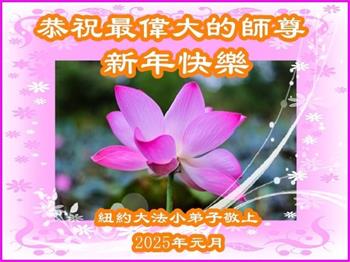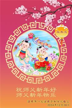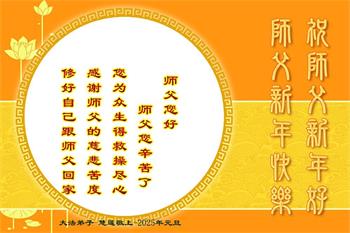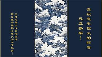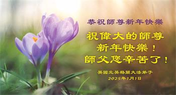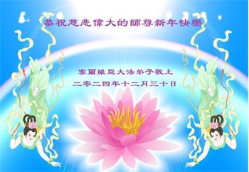 师父好!在我们迎接新年的黎明之际,我们反思师父您给予所有弟子的巨大慈悲和无私指导。您的真、善、忍的教诲,不仅照亮了弟子修炼的道路,也激励我们克服困难、净化心灵、提升品格。正是透过您无限的智慧和持久的耐心,无数的生命发生了改变,即使在最困难的时期也找到了希望和目标。