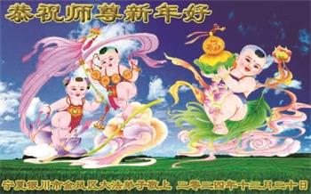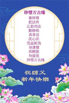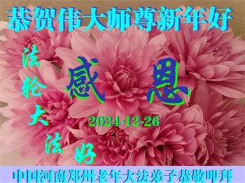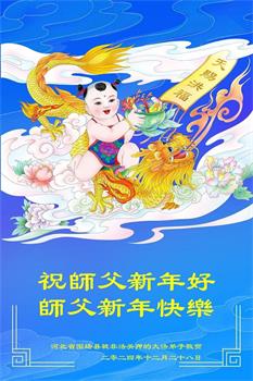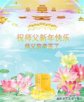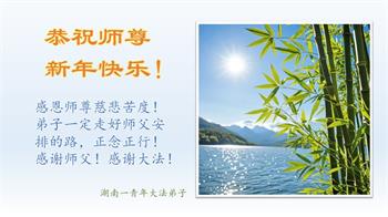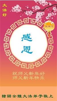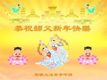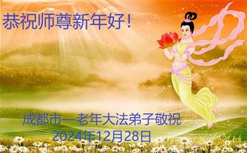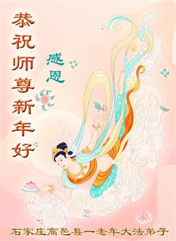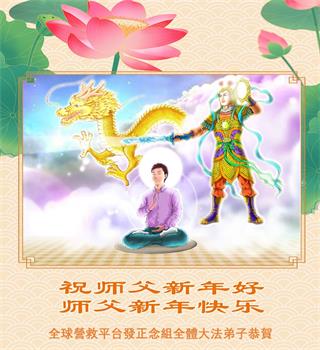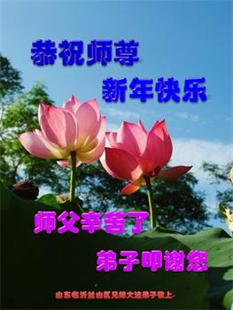 师父好!师父辛苦了!弟子每天读着您赐予的宝卷金篇,炼着五套舒缓优美的功法,向世人讲着真相,用正念灭着邪恶,随师尊又走过了正法的一年。弟子知道,这一年里,师尊您为众生又付出了无数的心血,为弟子们又承受了更多,弟子感恩无尽言。在新的一年里弟子要精進、再精進,做好三件事,兑现史前誓约,圆满随师还。叩谢师尊!