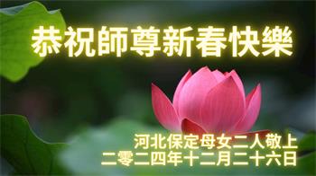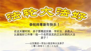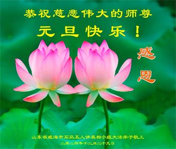 弟子们感恩师父的慈悲苦度。是师父用巨大的承受,换来了弟子们在修炼中的不断提升。弟子们希望在新的一年里,紧跟师父正法的步伐,做好三件事,兑现誓约。