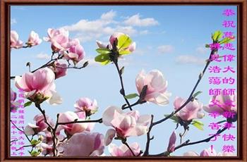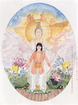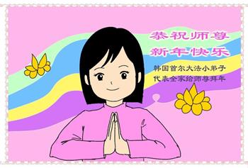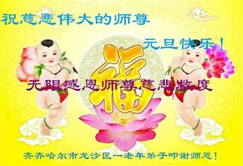 无限感谢您保护我,并教导我真、善、忍。我的整个生命都尊敬您,并以完全的敬意向您致以此问候。