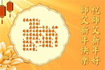 大法弟子们唯有精進修炼,践行使命,随师法正人间。恭祝慈悲伟大的师尊新年好!