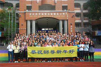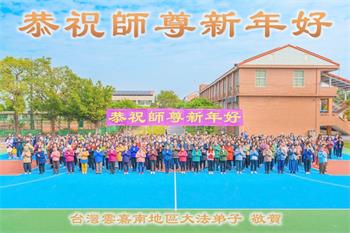 二零二四年十一月二十四日,嘉义地区部份法轮功学员汇聚嘉义县中埔乡和睦国小,恭祝伟大的师父新年快乐!全体学员双手合十,衷心表示感恩师父的慈悲救度,齐声喊出:“恭祝师尊新年快乐!法轮大法好!真善忍好!”声音洪大祥和,传遍四方。