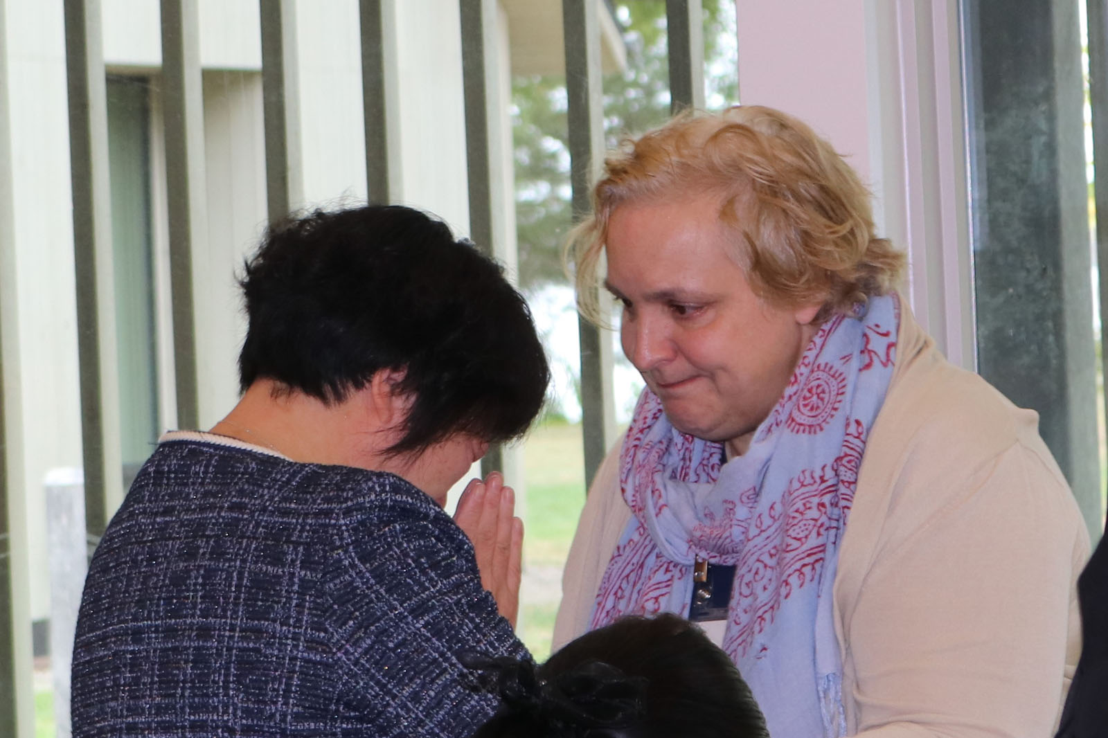 图4:梅格·弗拉纳根女士(右)与法轮功学员迟丽华。