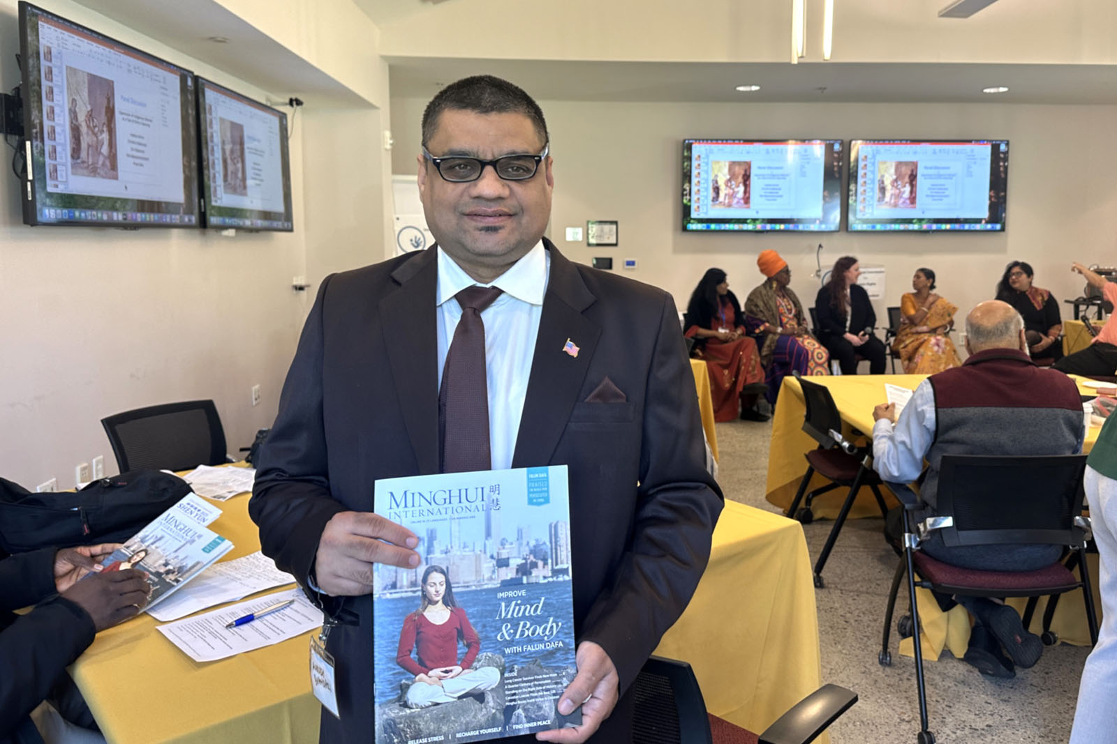 安库什·班达里(Ankush Bhandari)任职于新泽西州的一家IT公司。班达里说,这是他第一次听说法轮功及其遭受中共的迫害。他认为:“(真、善、忍)这个信息很好,提升人的精神境界。当你的精神境界提升时,身体也会随之改善。”