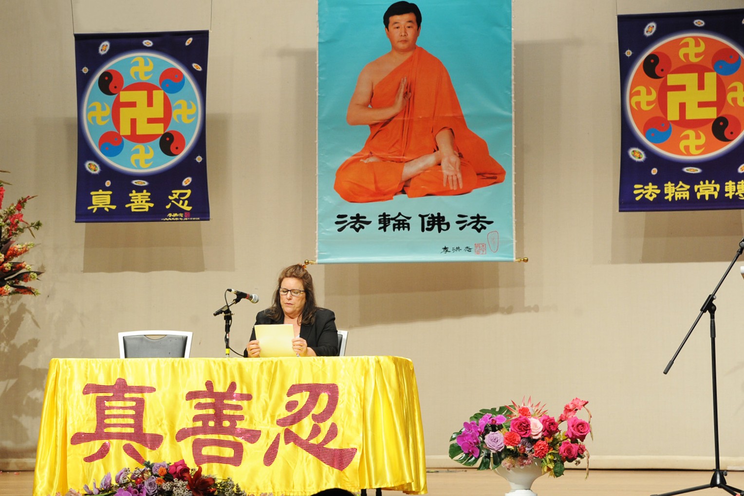 澳洲西人学员苏珊(Susan)交流了她如何克服怕心向当地政府讲真相的体会。第一次参加市会议旁听后,她开始思考如何能向这些市议员讲清真相。她感悟自己的发言必须有当地的角度并把这个问题放在心里,她相信一定能找到一个好的理由与他们交谈。“当我做第五套功法时,我突然灵机一动:我可以感谢他们已经做的事情,也就是他们取消了与中国的友好城市关系。我知道这个灵感来自于师父。”