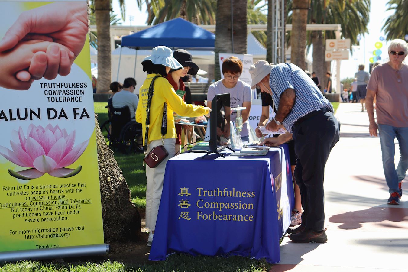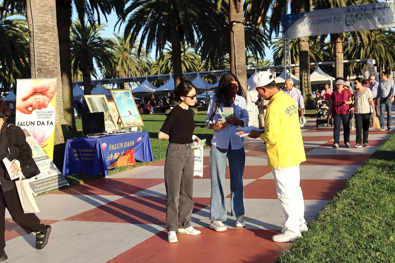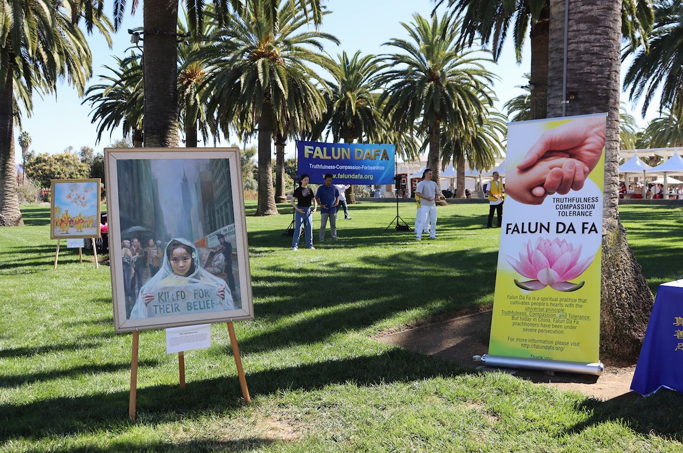 本届地球村节有116个摊位,约30家美食铺,以及各民族的精彩艺术表演。十几年来,当地的法轮大法修炼者持续参加尔湾地球村节的活动,以各种方式向人们展示着大法的美好和修炼后的身心改善。