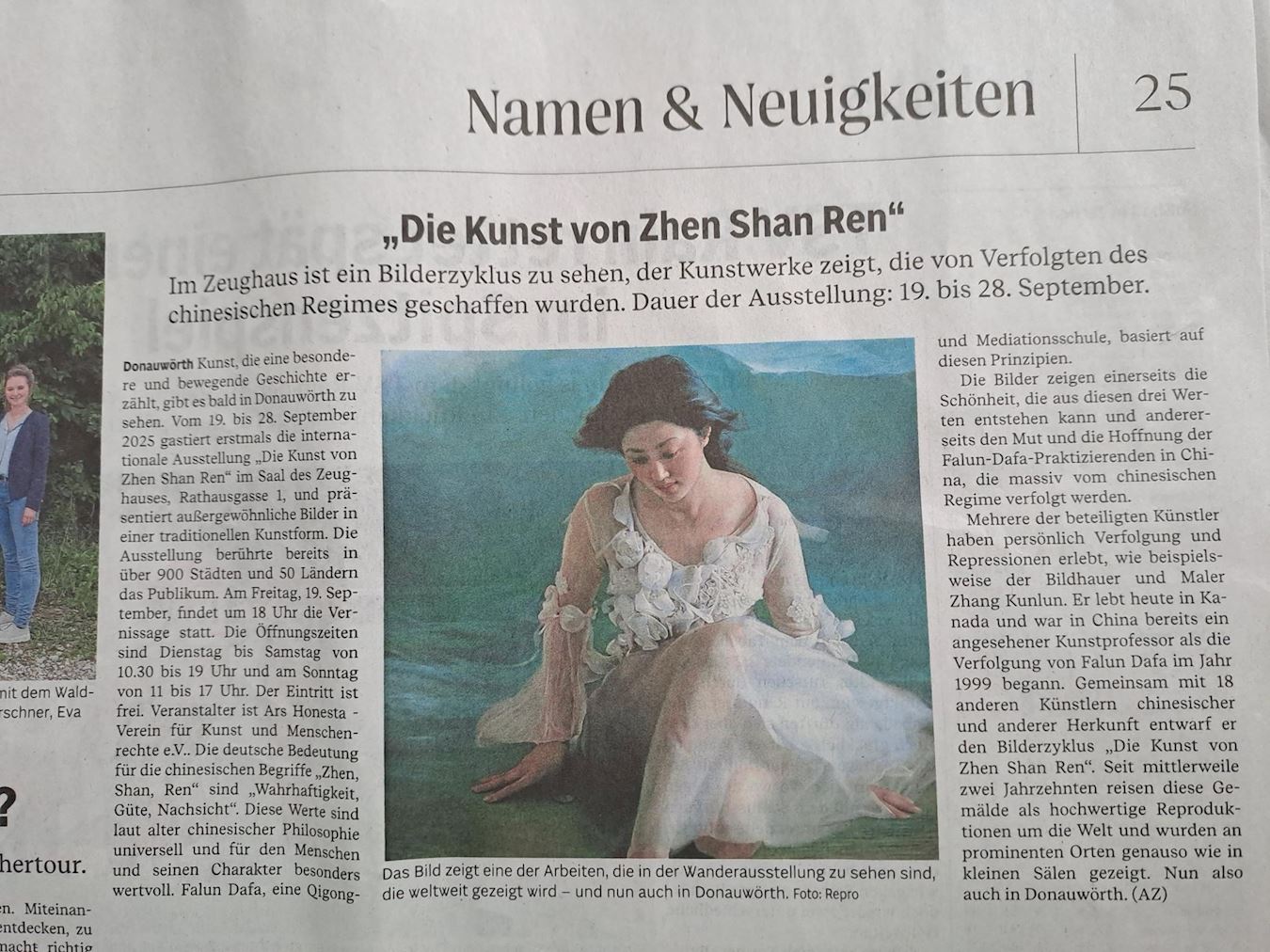 德国《多瑙沃特报》(Donauwörther Zeitung)提前以整版报道介绍了此次展览。这家报纸隶属德国发行量极高的《奥格斯堡日报》(Augsburger Allgemeine)集团,是当地最具影响力的主流媒体之一。