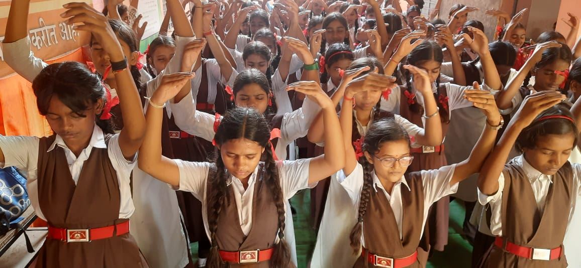 ![]() 图10:普拉蒂巴学校( Pratibha Vidyalaya )的学生们祥和地炼功。 |