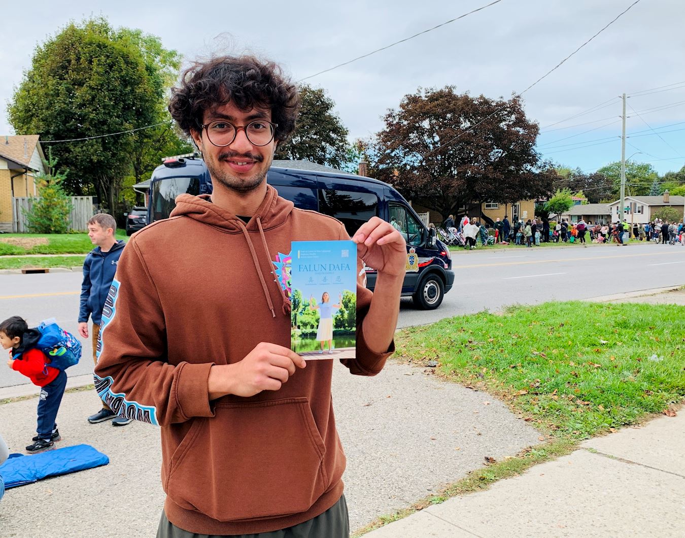 托尼(Tony)是当地的居民,他和家人一起来观看感恩节游行,当天国乐团的队伍经过时,他们一家人都为其鼓掌。托尼表示:“这个乐团太棒了!毫无疑问,排名第一,是这次游行中排名第一的乐队。”随后,学员向他介绍了这个乐团的成员都是法轮功修炼者,他便询问学员法轮功是在哪里,学员告诉他现在已洪传全世界,并向他介绍了法轮功是按“真、善、忍”修炼,还向他推荐了网上教功网站。托尼表示赞同,接过传单后,表示感谢。