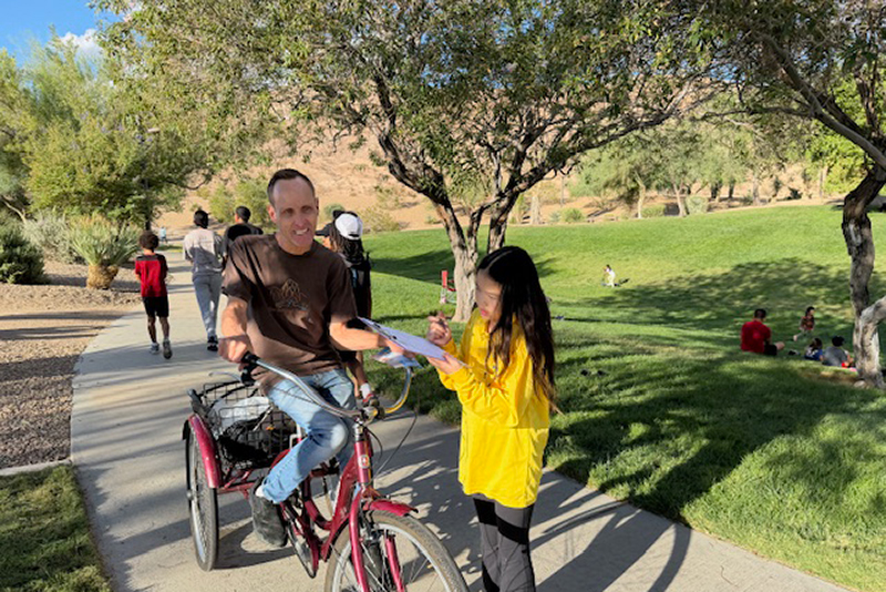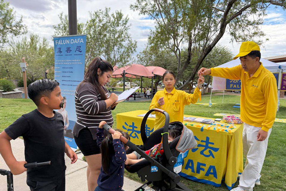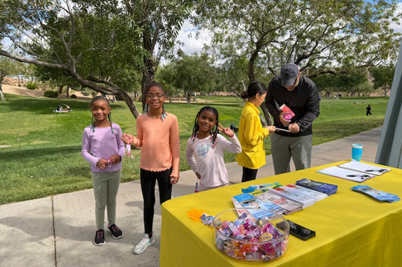 【明慧网二零二五年十月二日】中秋时节“月圆人圆”,寓意着祥和、感念与团圆。一年中秋月又圆,二零二五年九月二十八日下午,拉斯维加斯部分法轮功学员在探索峰公园(Exploration Peak Park)举办庆祝活动,把法轮大法的美好传递给当地民众,同时恭祝师尊中秋快乐,感恩师父的慈悲普度。