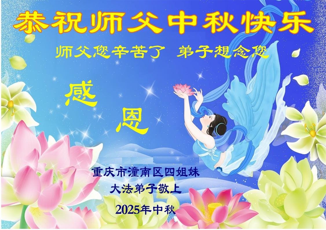 【明慧网二零二五年十月二日】(明慧网通讯员综合报道)大法净化灵魂,真善忍呼唤本性。中国许多明真相及亲身受益的人们,在中共仍在持续迫害法轮功的环境中纷纷走入大法修炼。二零二五年中秋佳节来临,不同年龄段、居住在不同省份地区的新学员感谢师尊!