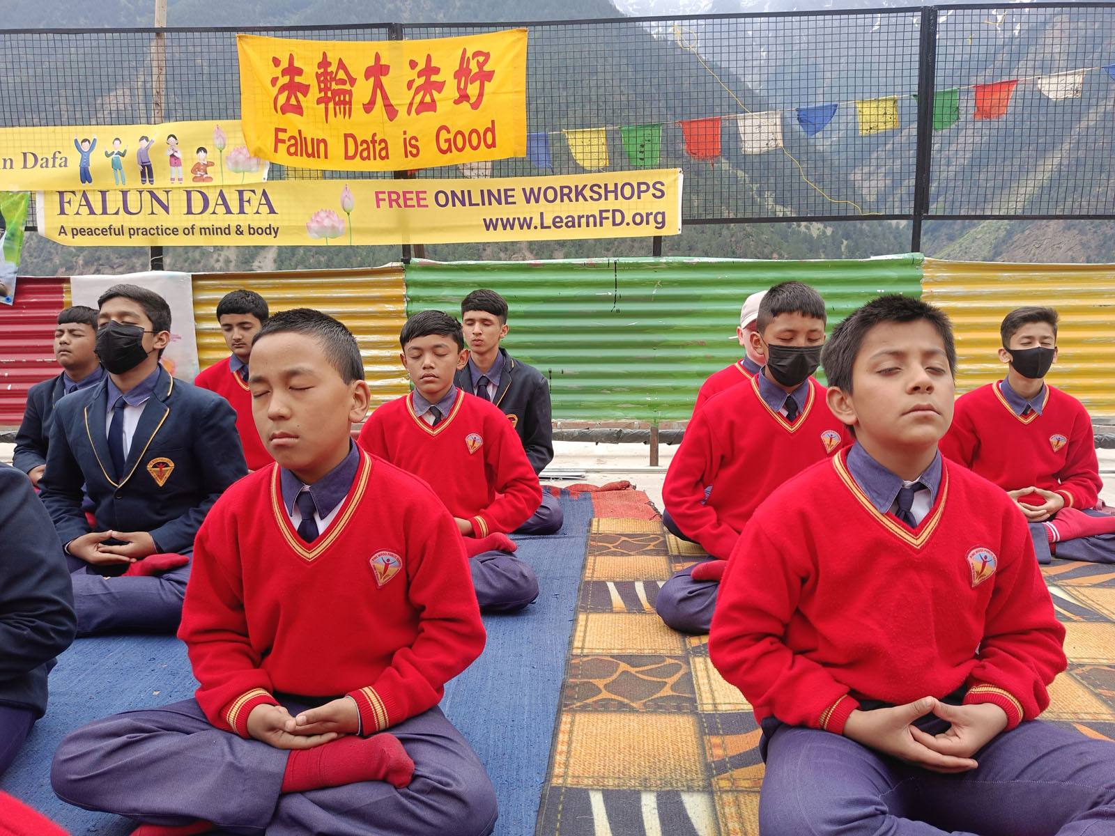 ![]() 图1~12:法轮功学员走访了西喜马拉雅地区的十三所学校,向师生介绍法轮功并免费教授功法 |