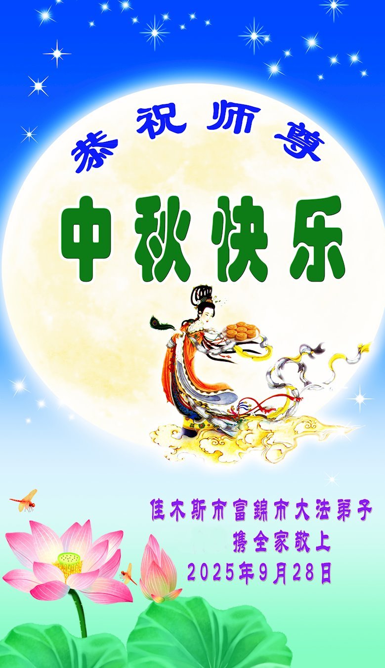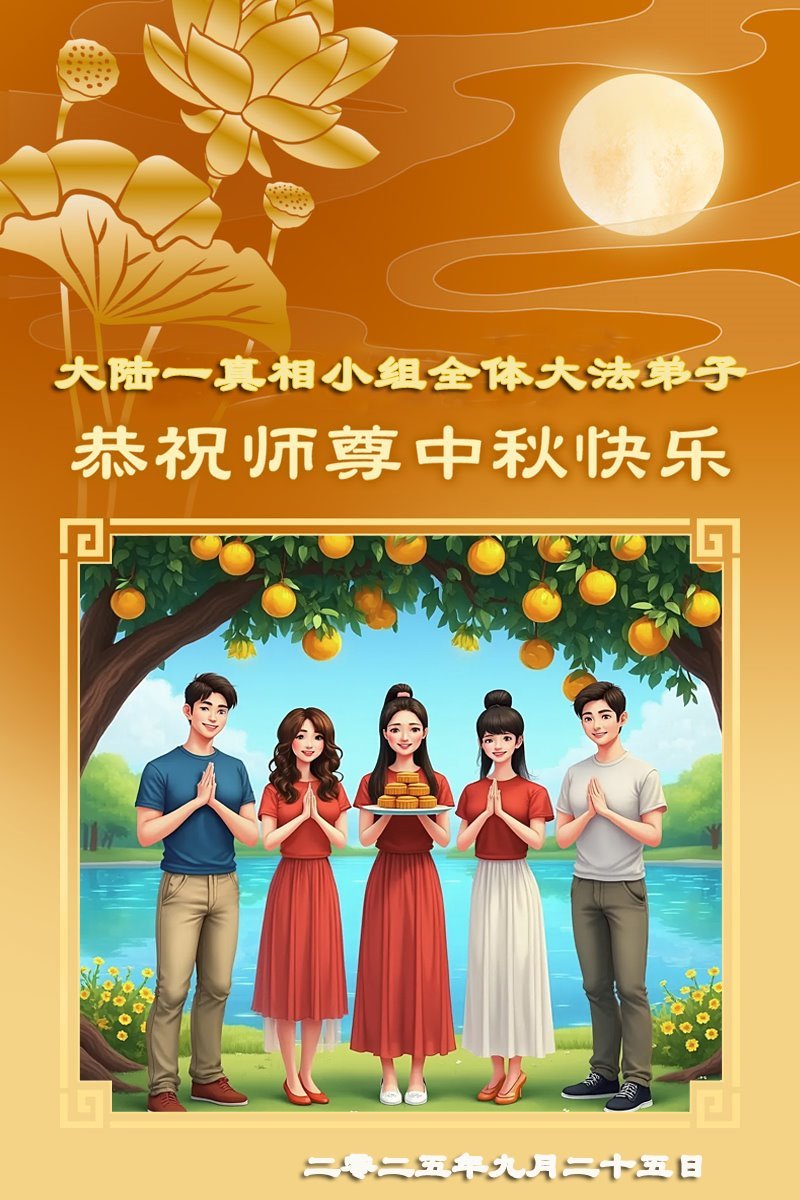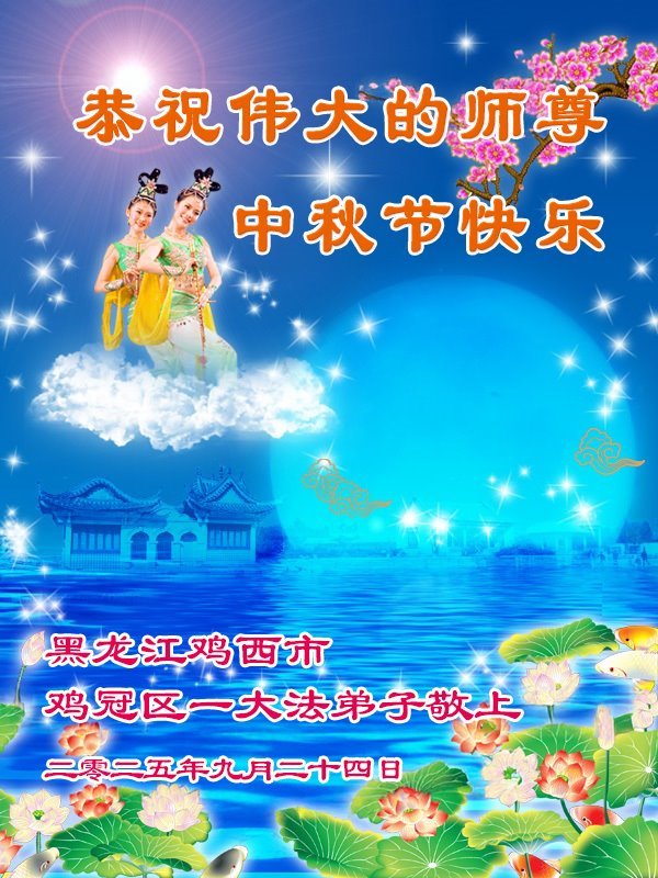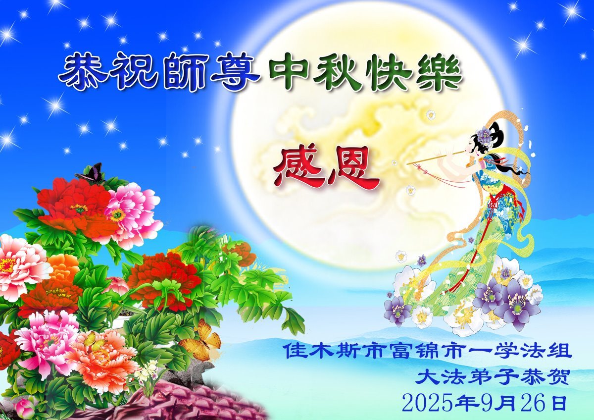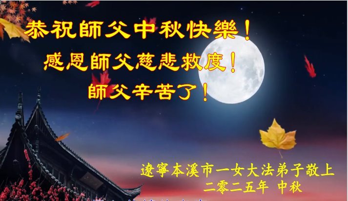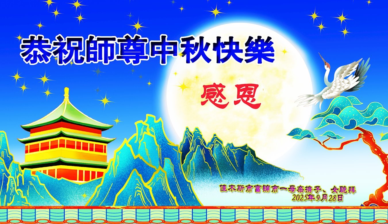 【明慧网二零二五年十月三日】繁星点点,中秋月圆,望月明志,遥拜恩师。中国大陆各行各业大法弟子们寄上一封封诚挚问候,表达对李洪志师尊的无限感恩。大法弟子们表示,一定学好法,修好自己,多救人,走好走正修炼的路,不辜负师尊赋予大法弟子的使命,紧随师尊法正人间。