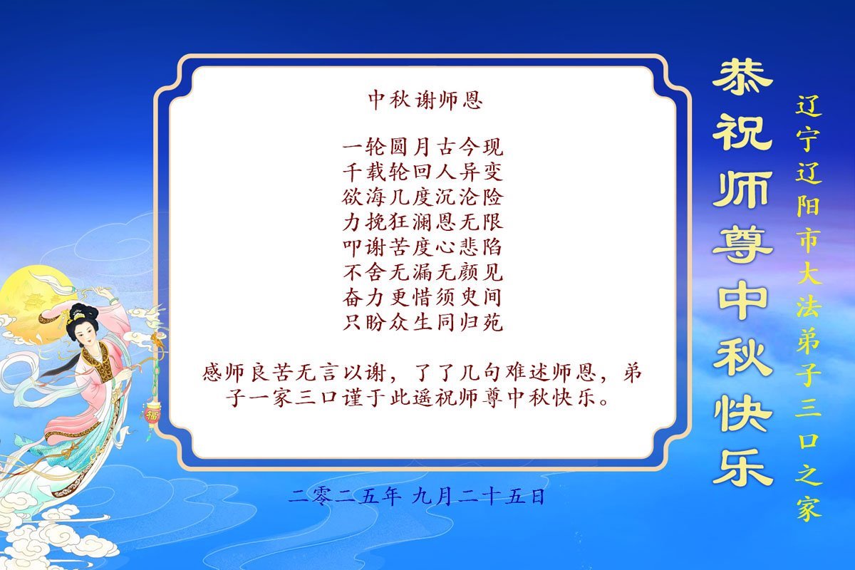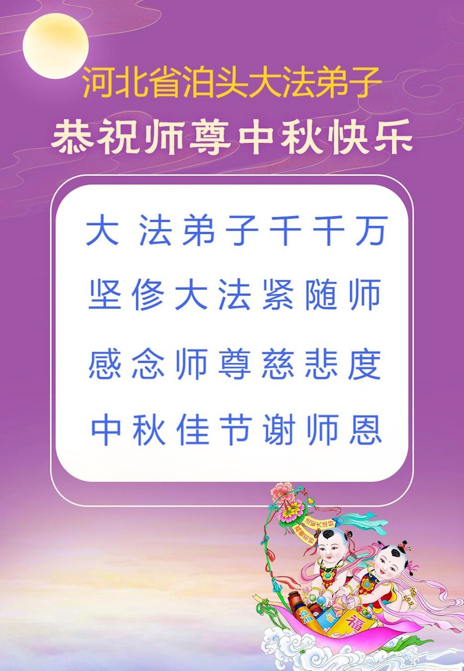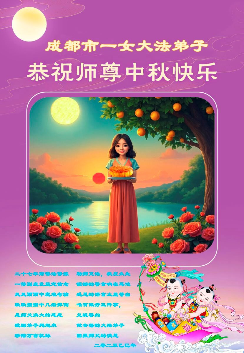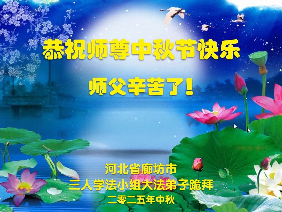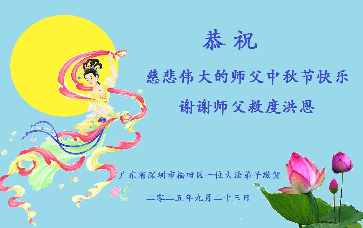 【明慧网二零二五年十月三日】繁星点点,中秋月圆,望月明志,遥拜恩师。中国大陆各行各业大法弟子们寄上一封封诚挚问候,表达对李洪志师尊的无限感恩。大法弟子们表示,一定学好法,修好自己,多救人,走好走正修炼的路,不辜负师尊赋予大法弟子的使命,紧随师尊法正人间。