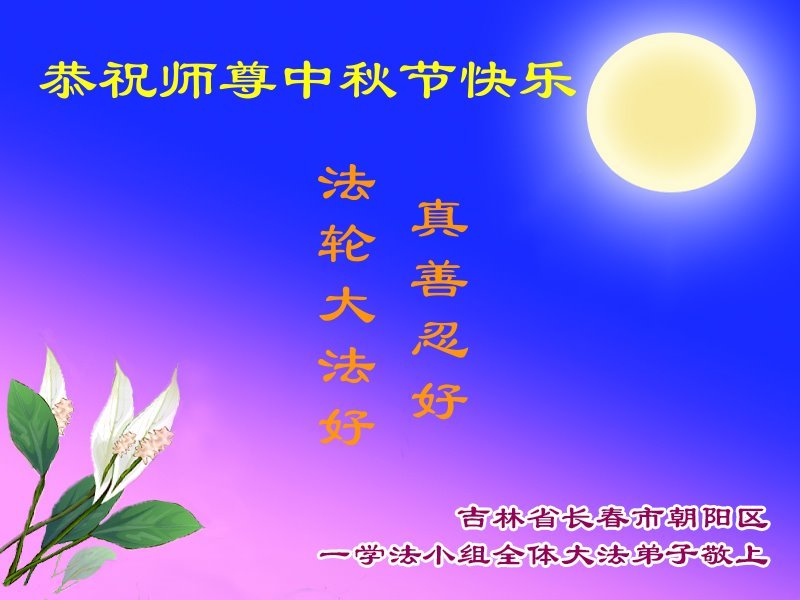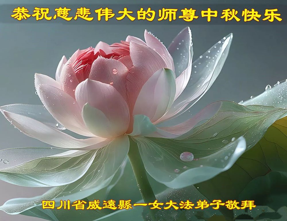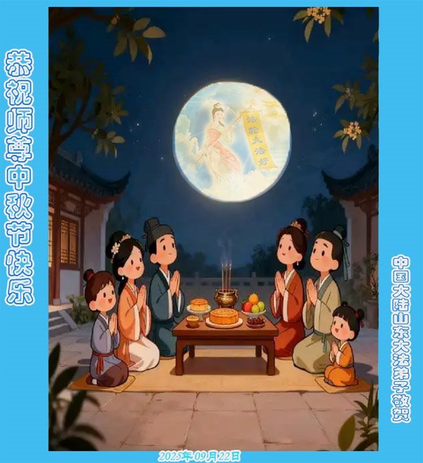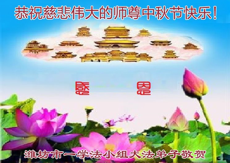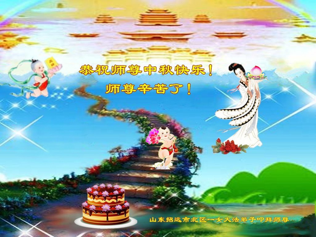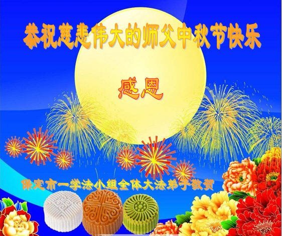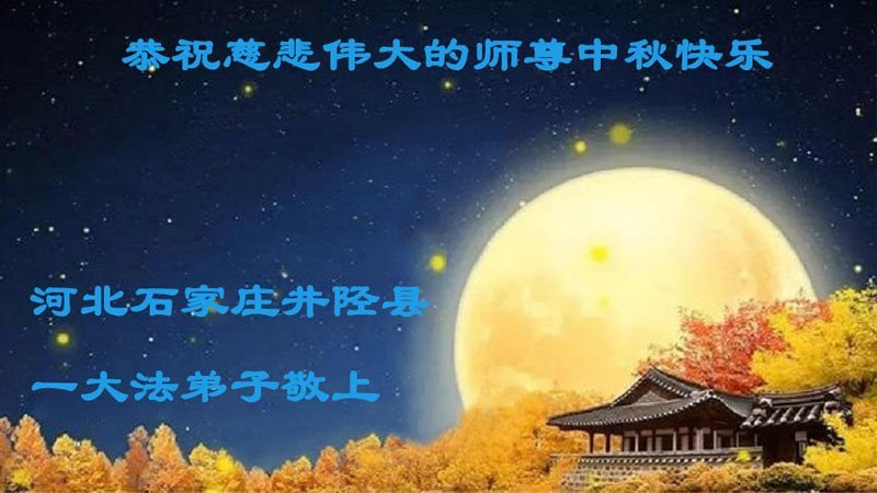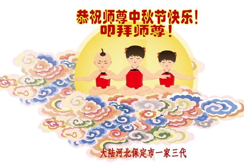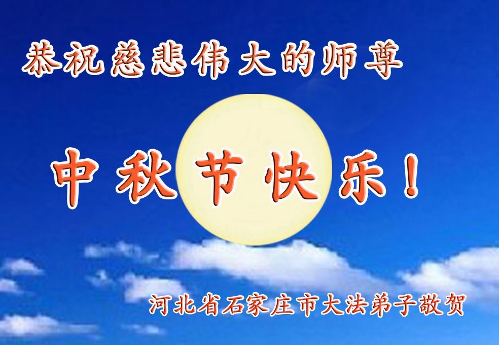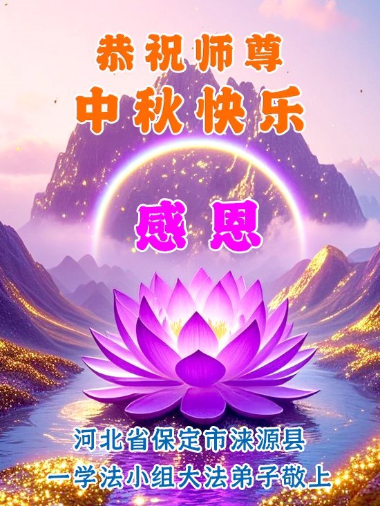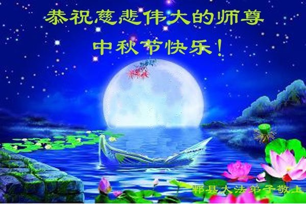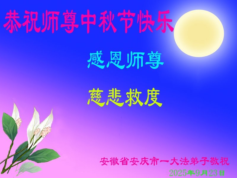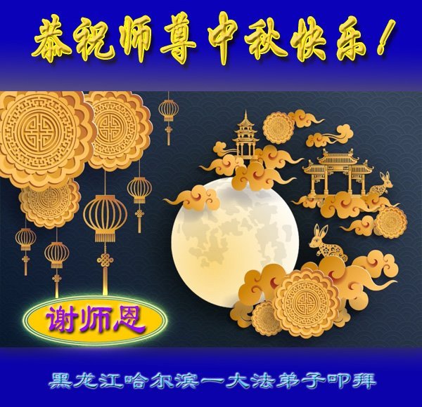 师尊您辛苦了!阖家团圆的中秋佳节又来临了。我们想念师尊,盼望早日见到师尊。在二十多年的修炼路上,是慈悲伟大的师尊牵着我们的手,一步步的走到了今天,师尊为我们的巨大付出和承受,我们是根本无法想象的,师尊的洪恩是用人类的语言无法表达的。弟子只有一颗坚定的心,谨遵师尊教诲,在所剩不多的时间里做好三件事,走好修炼的路,完成大法弟子的使命。深深叩拜师尊的救度之恩!