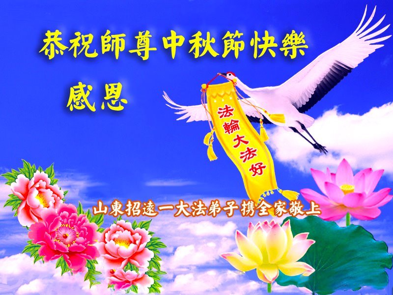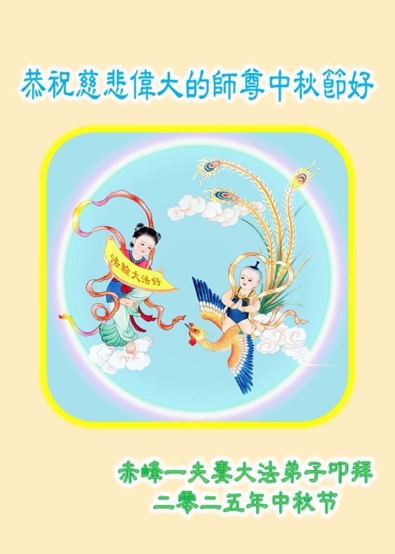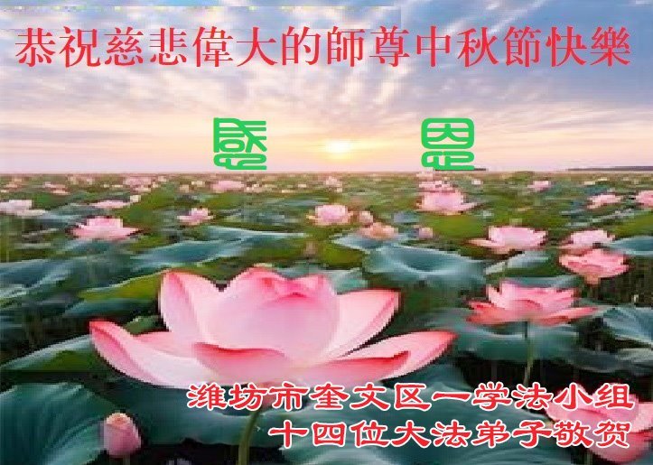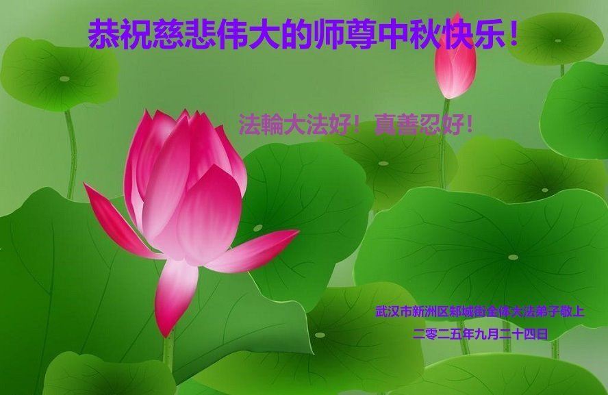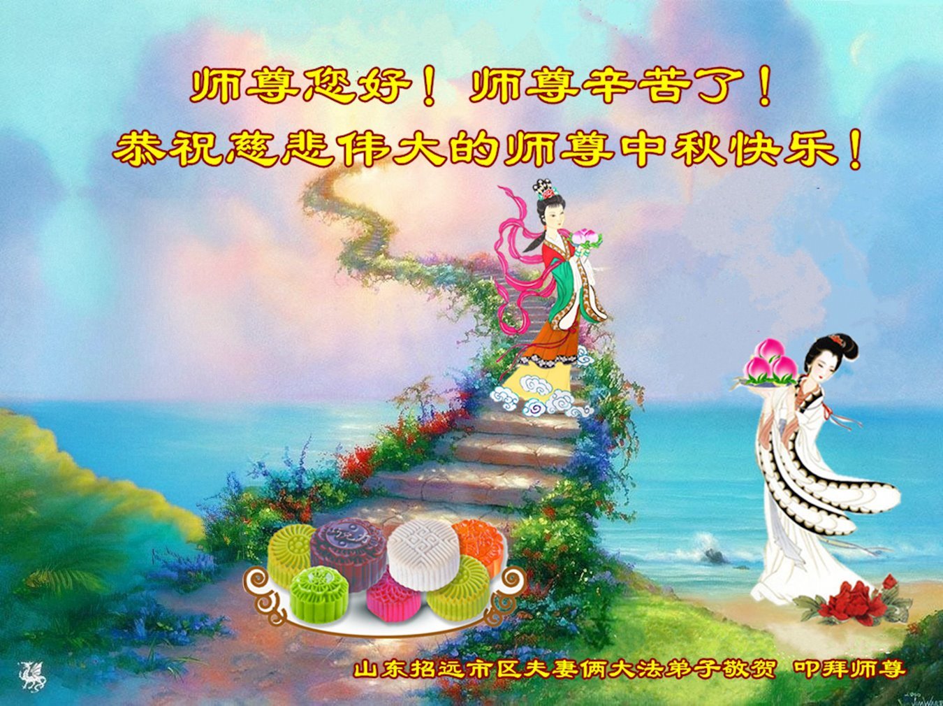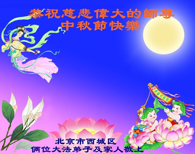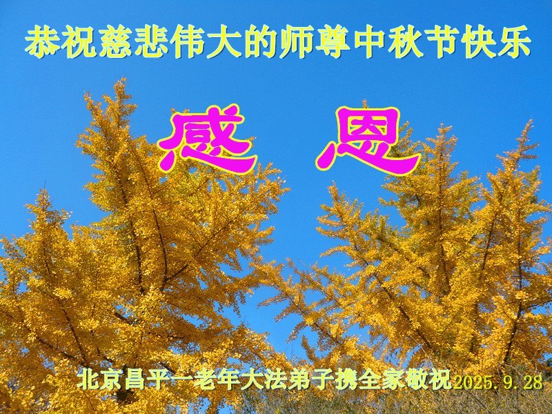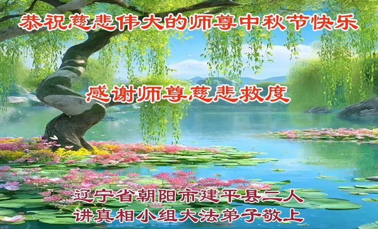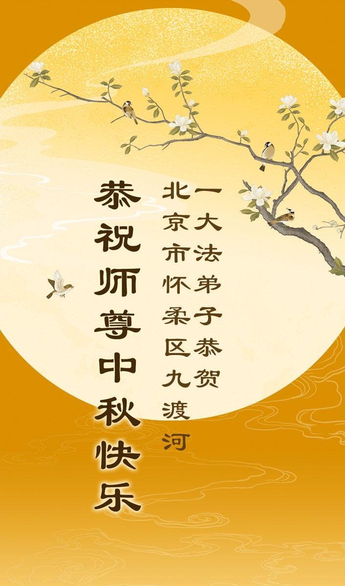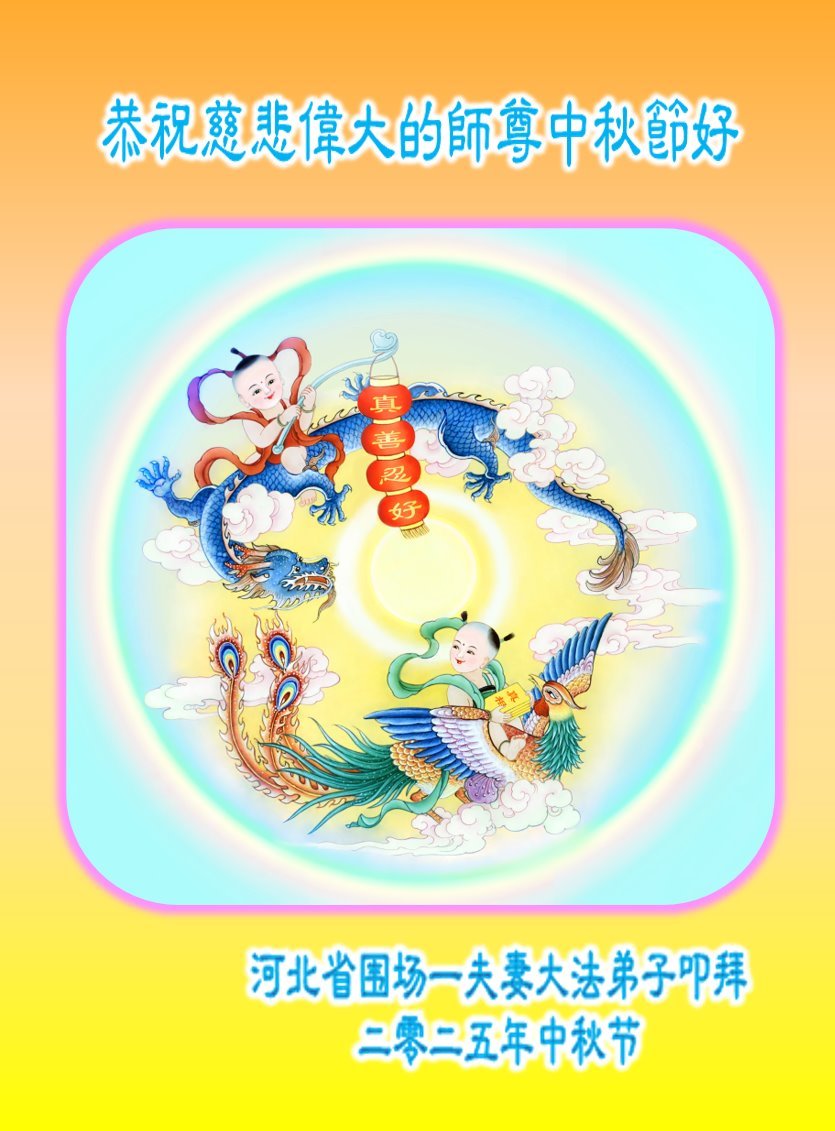 师尊您辛苦了!阖家团圆的中秋佳节又来临了。我们想念师尊,盼望早日见到师尊。在二十多年的修炼路上,是慈悲伟大的师尊牵着我们的手,一步步的走到了今天,师尊为我们的巨大付出和承受,我们是根本无法想象的,师尊的洪恩是用人类的语言无法表达的。弟子只有一颗坚定的心,谨遵师尊教诲,在所剩不多的时间里做好三件事,走好修炼的路,完成大法弟子的使命。深深叩拜师尊的救度之恩!