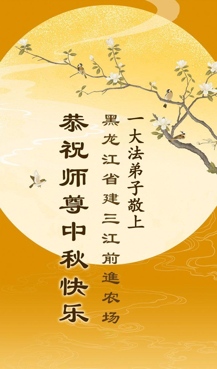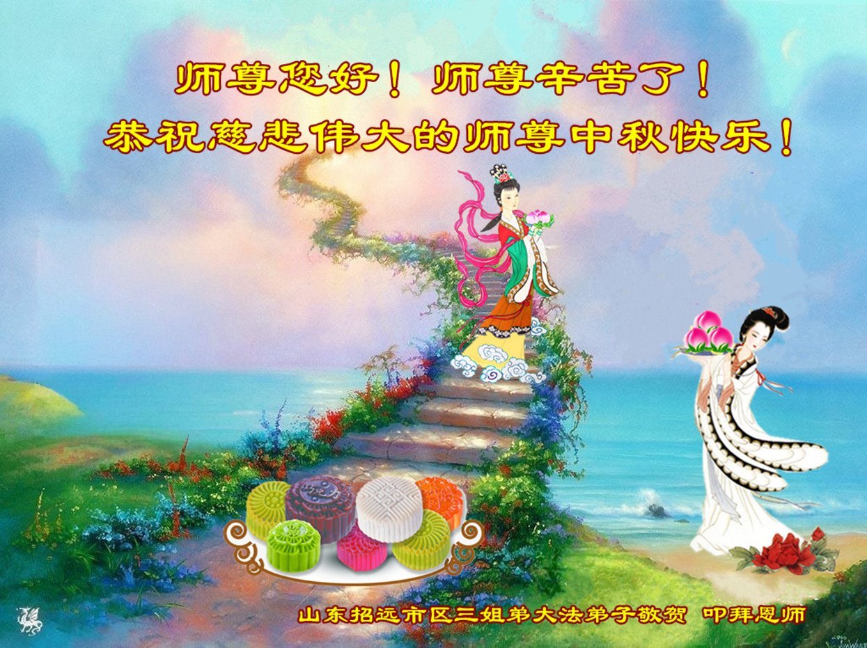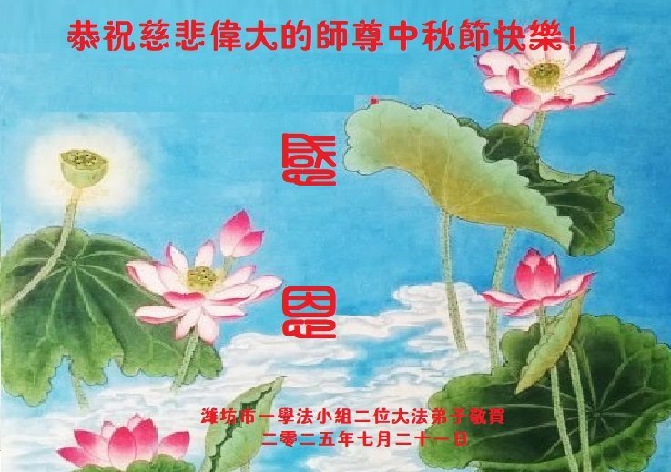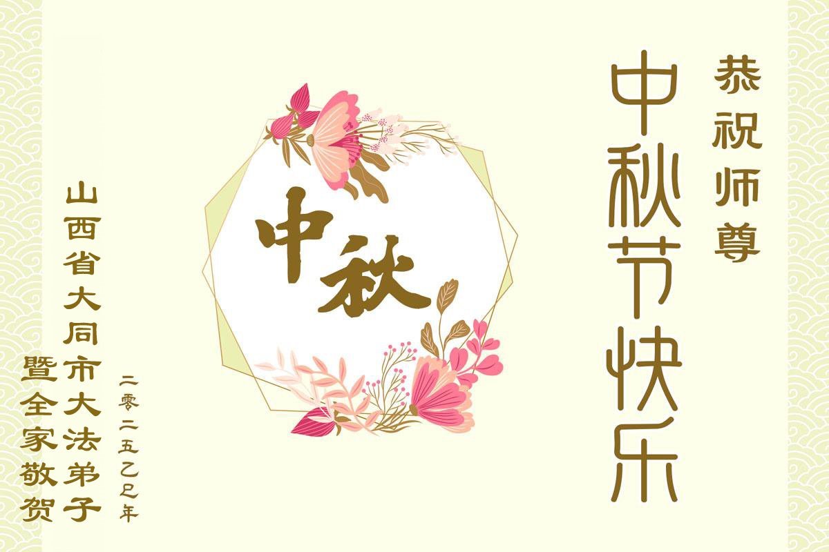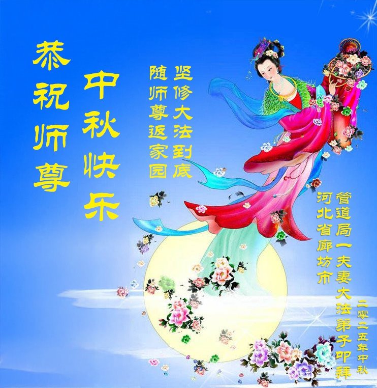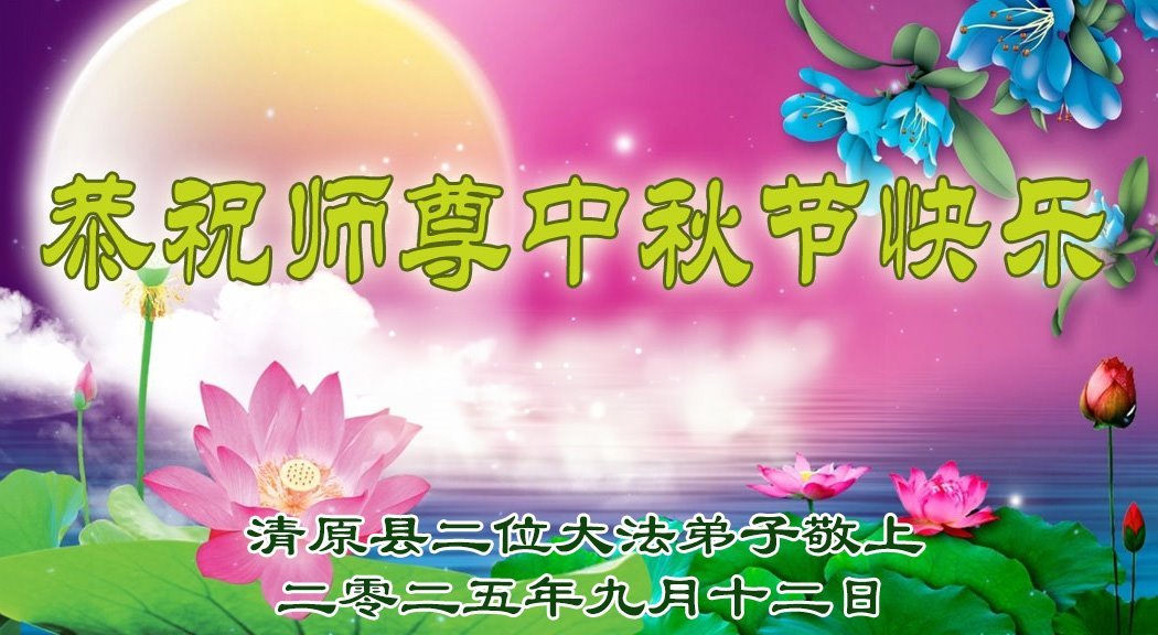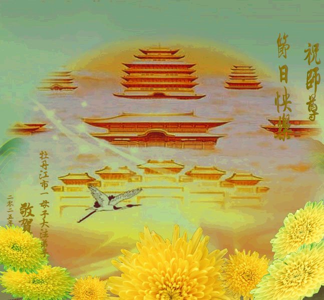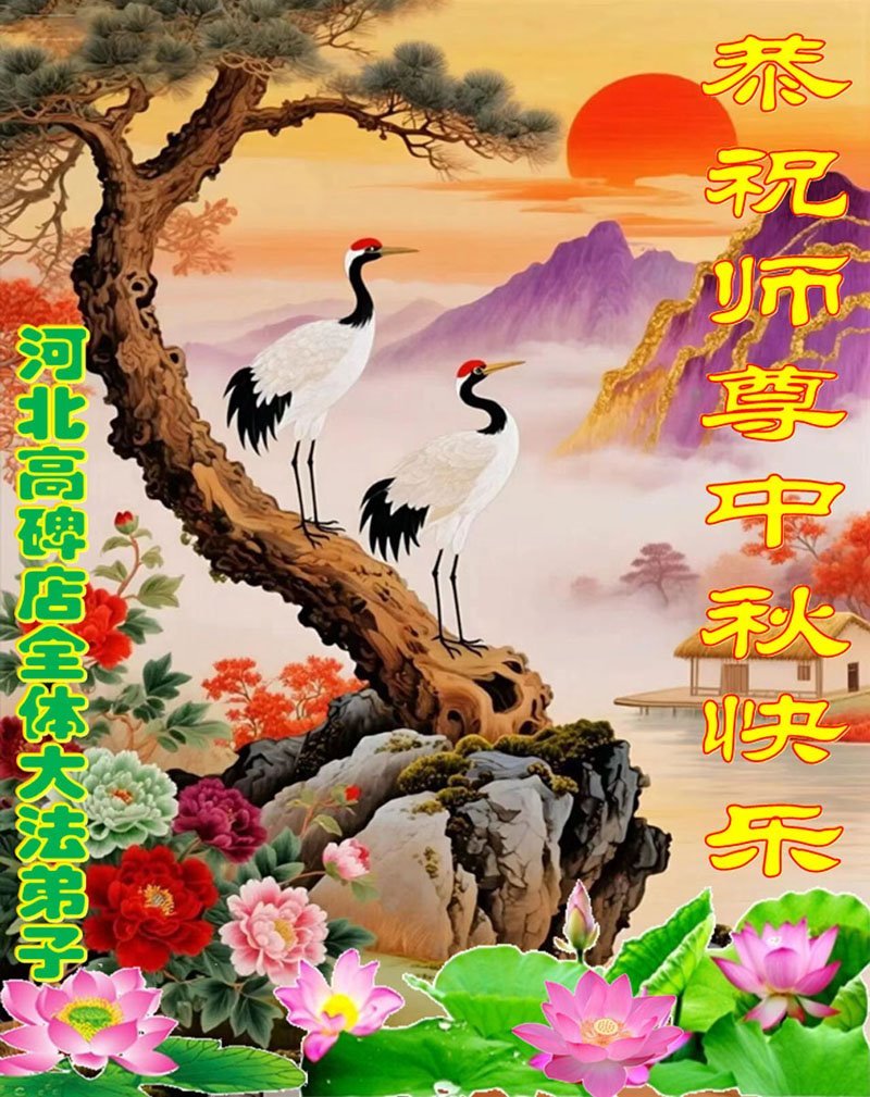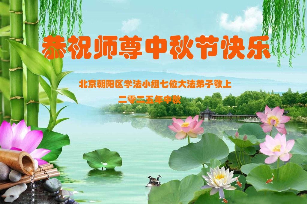 师尊您辛苦了!阖家团圆的中秋佳节又来临了。我们想念师尊,盼望早日见到师尊。在二十多年的修炼路上,是慈悲伟大的师尊牵着我们的手,一步步的走到了今天,师尊为我们的巨大付出和承受,我们是根本无法想象的,师尊的洪恩是用人类的语言无法表达的。弟子只有一颗坚定的心,谨遵师尊教诲,在所剩不多的时间里做好三件事,走好修炼的路,完成大法弟子的使命。深深叩拜师尊的救度之恩!