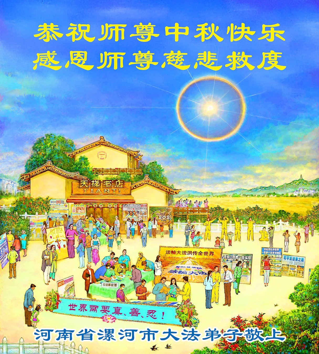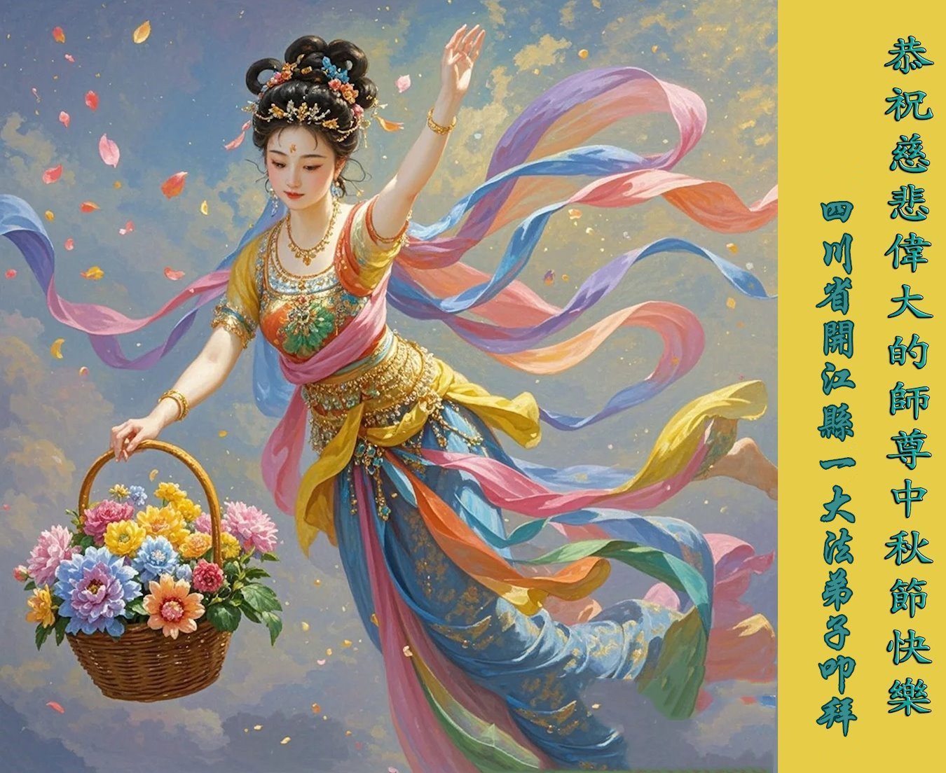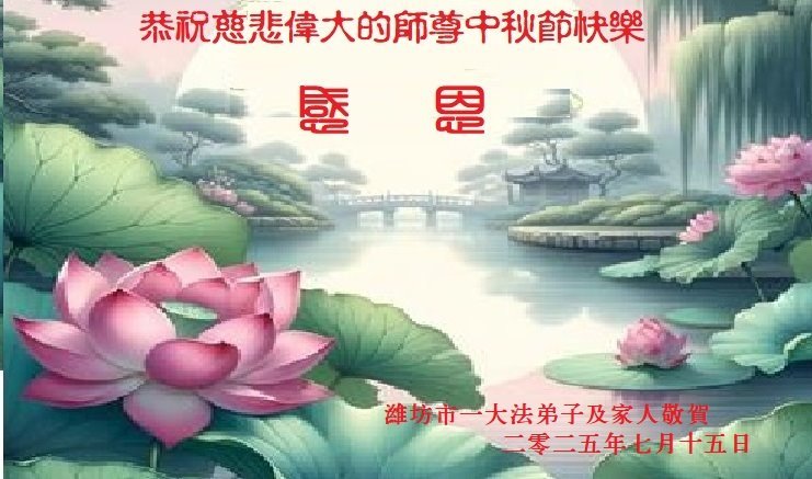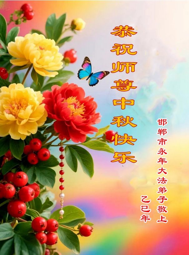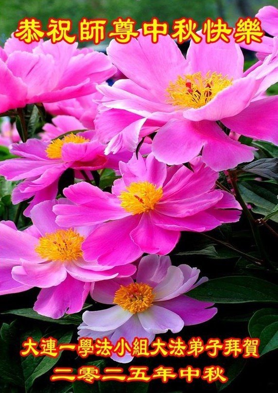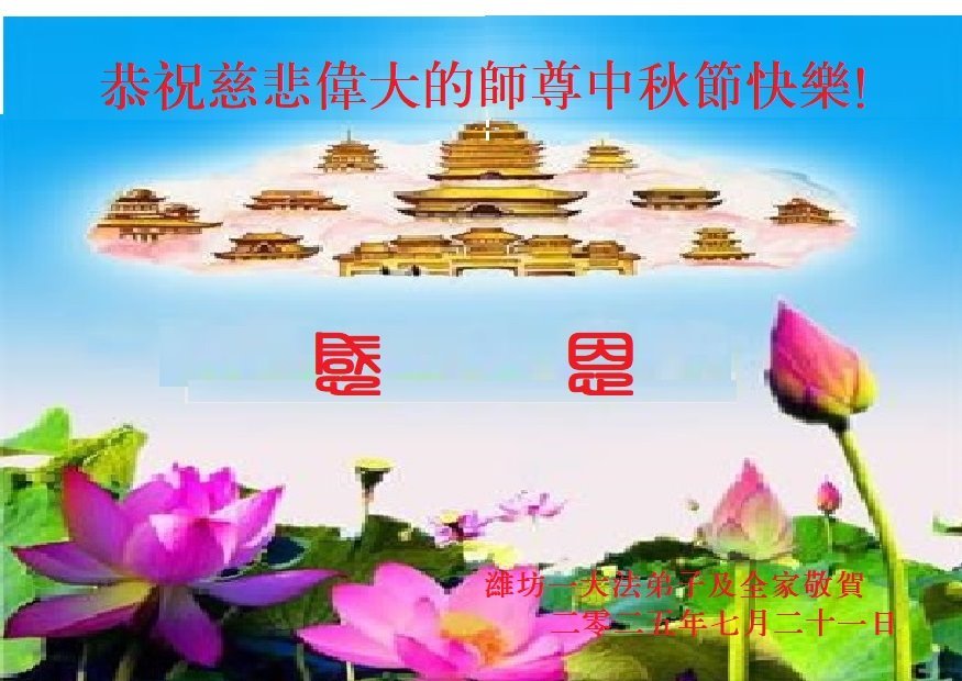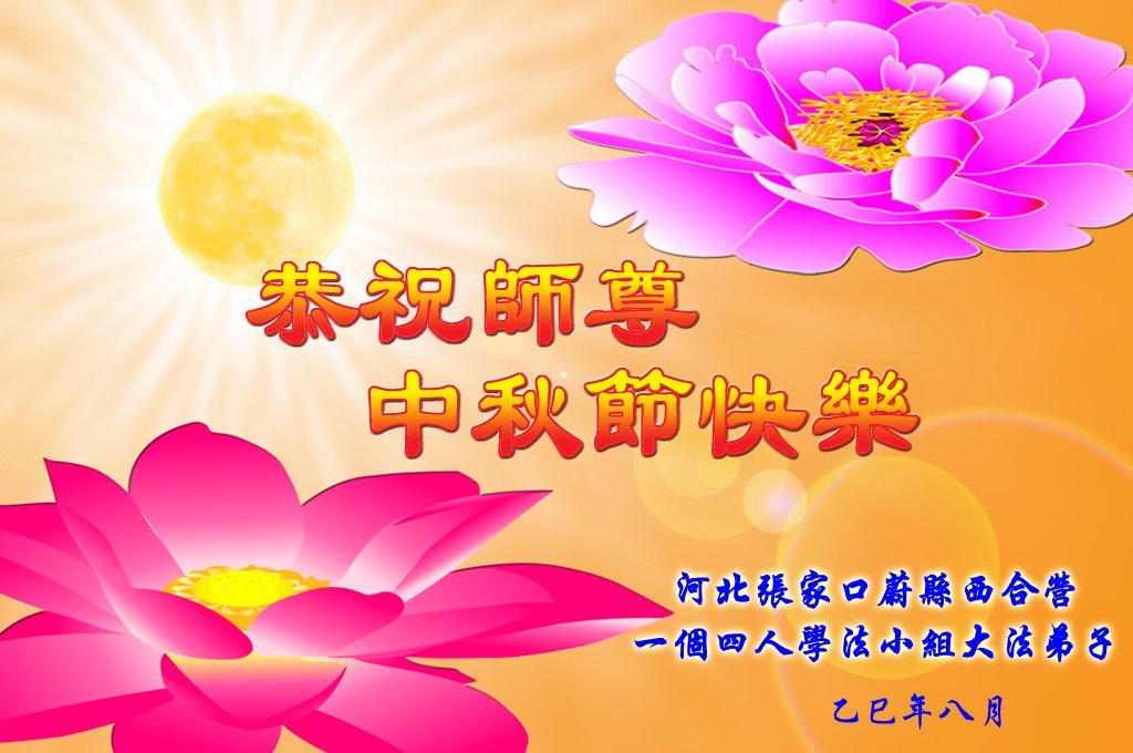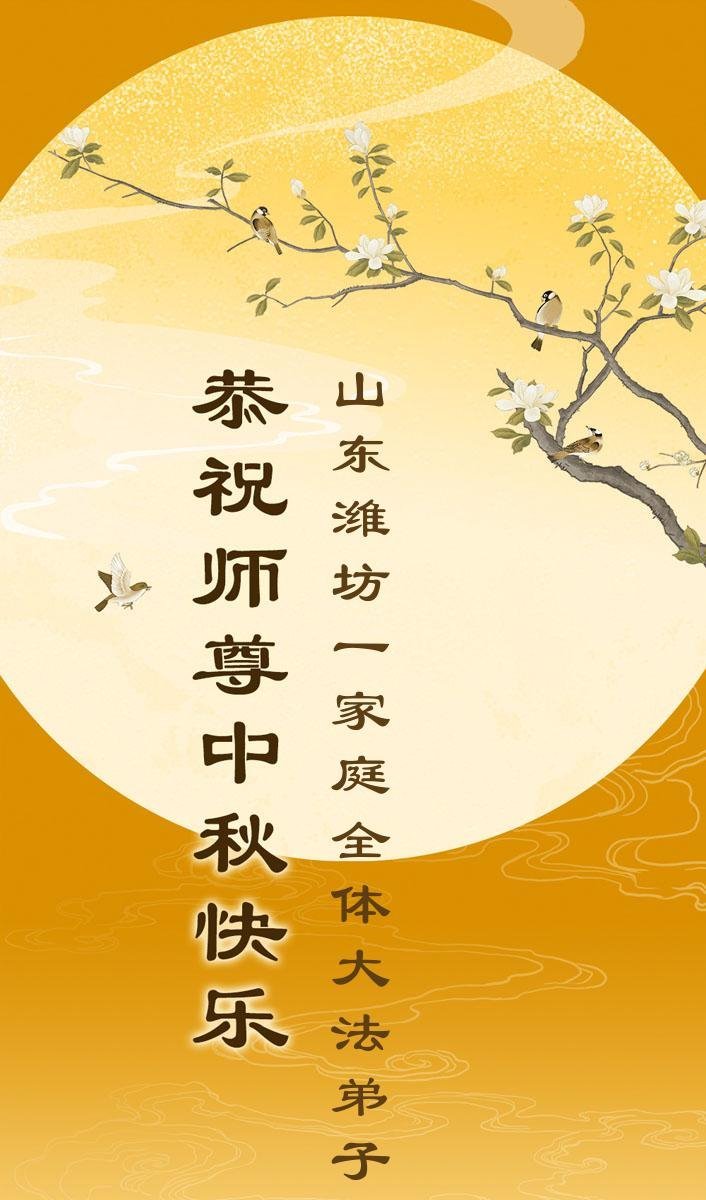 师尊您辛苦了!阖家团圆的中秋佳节又来临了。我们想念师尊,盼望早日见到师尊。在二十多年的修炼路上,是慈悲伟大的师尊牵着我们的手,一步步的走到了今天,师尊为我们的巨大付出和承受,我们是根本无法想象的,师尊的洪恩是用人类的语言无法表达的。弟子只有一颗坚定的心,谨遵师尊教诲,在所剩不多的时间里做好三件事,走好修炼的路,完成大法弟子的使命。深深叩拜师尊的救度之恩!