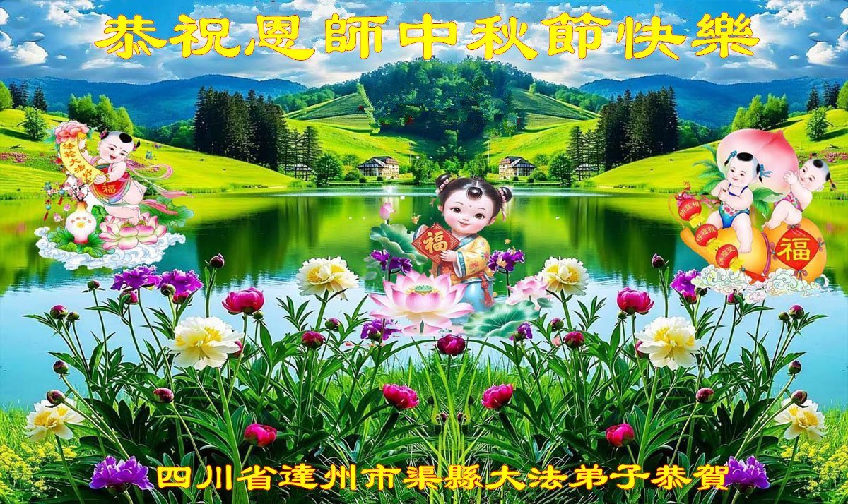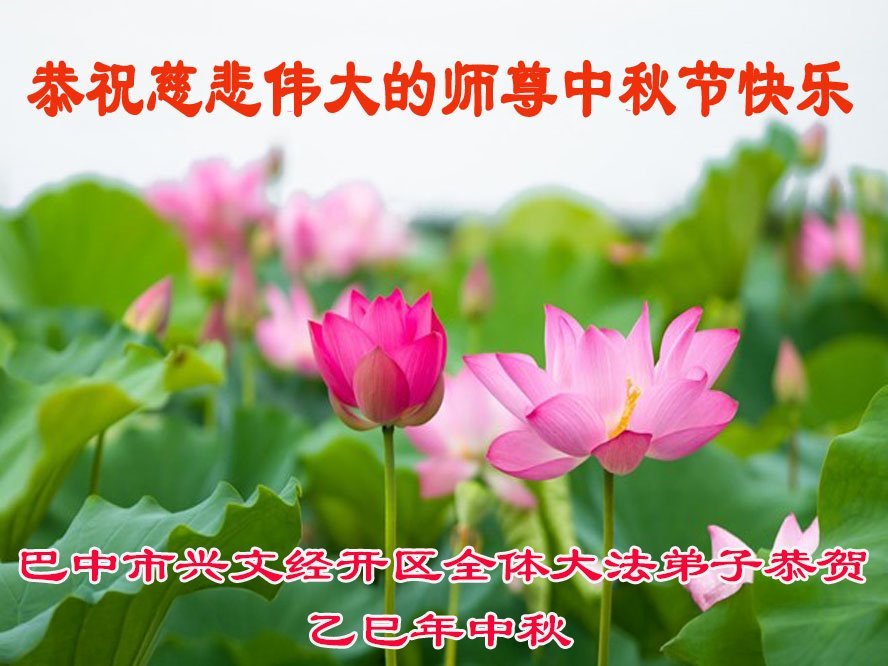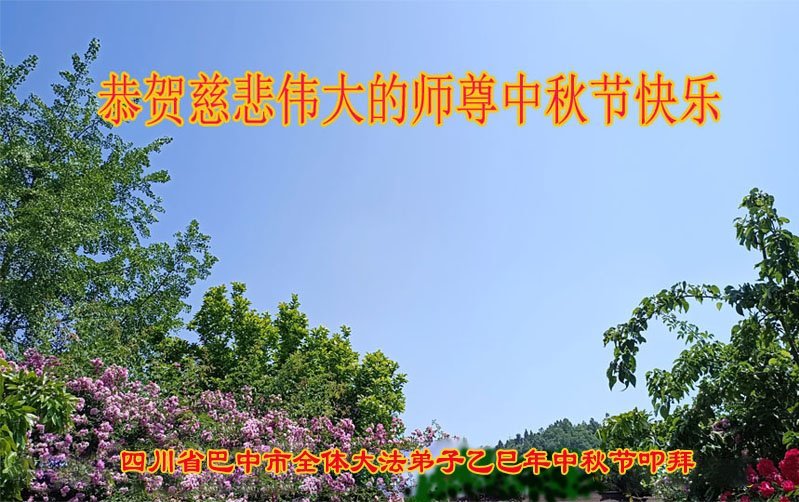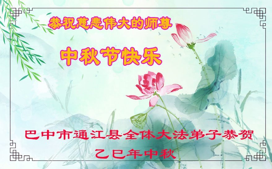 四川省巴中市财税系统大法弟子在贺词中表示:“茫茫宇宙,芸芸众生,师尊选择我们当正法时期的大法弟子,传给我们宇宙大法,将我们满身业债洗净,使我们生命得到升华回归,师尊佛恩浩荡,弟子无比感恩!”