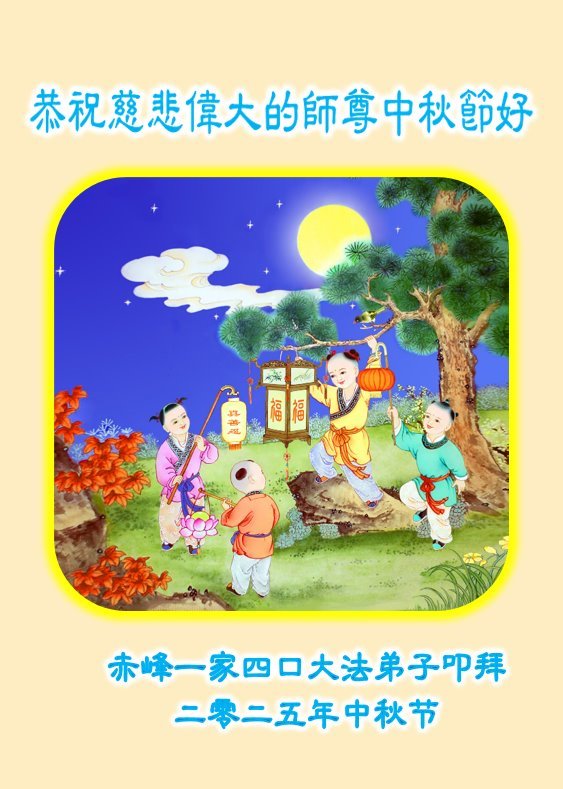 人逢佳节倍思亲。我们高校系统大法弟子思念恩师,盼望恩师早日回到故国家园与亲人团聚!弟子一定遵循师父的谆谆教诲,多学法,学好法,实修自己,做好三件事,圆满跟师父回家!