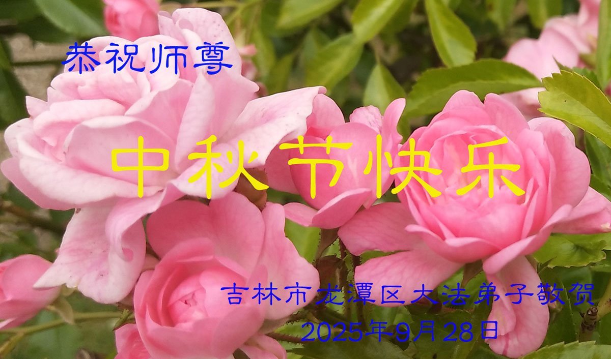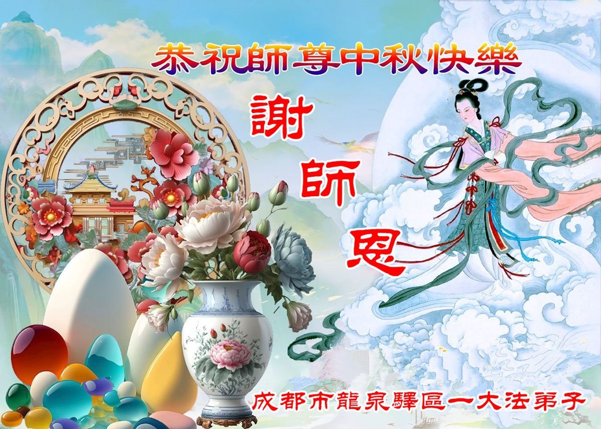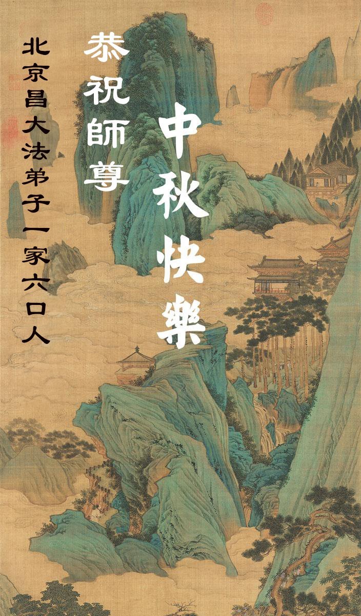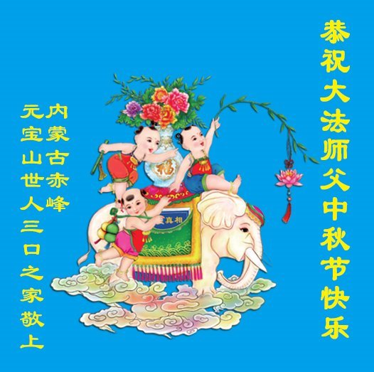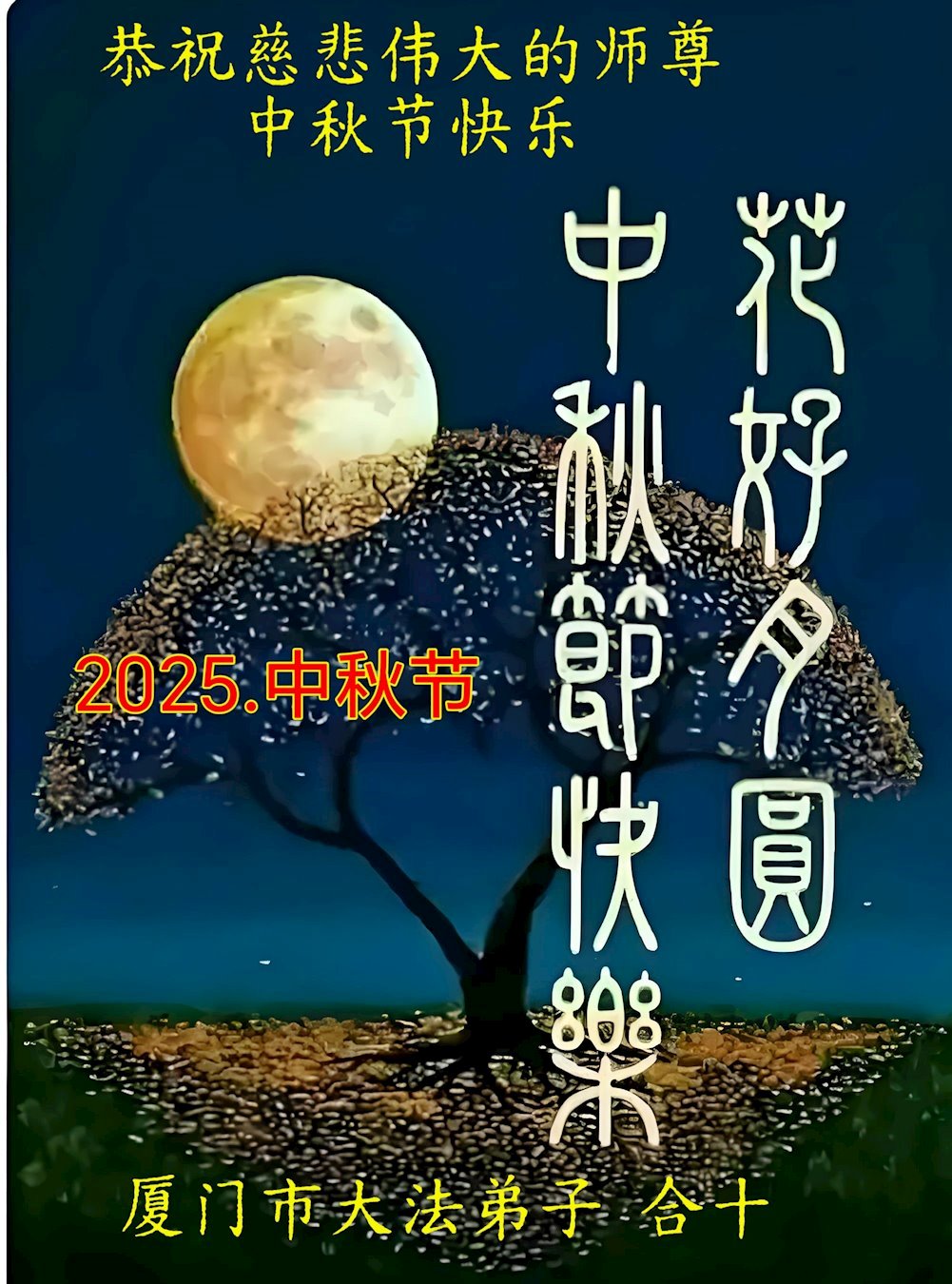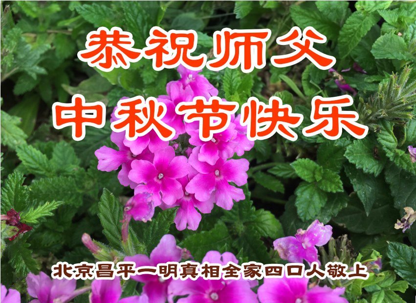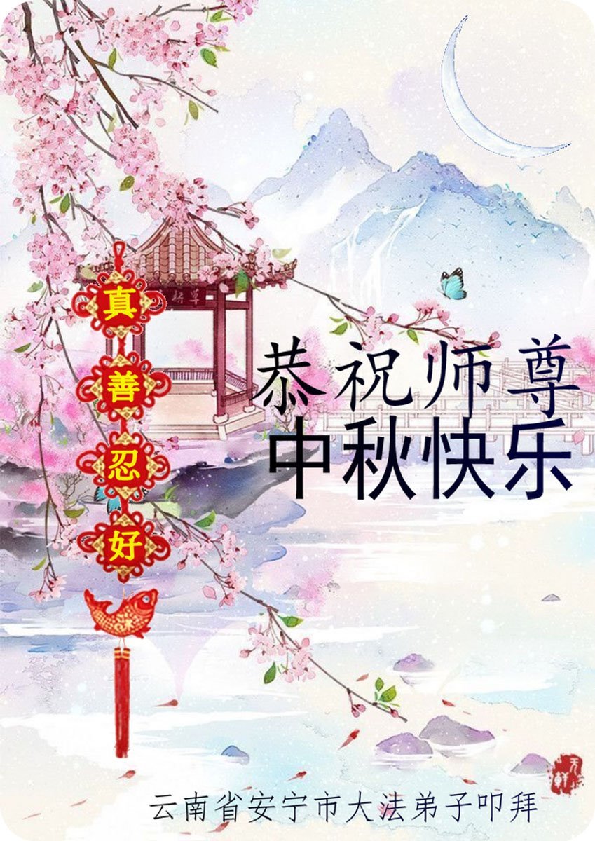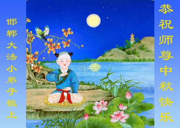 一年一度的中秋团圆佳节已来临,弟子在大洋彼岸向师尊问好。我们已经感觉到与师尊团聚的时间为期不远了。虽然盼望与师父早日团聚,但是大法弟子的使命是重要的。因此,在这最后的时刻,弟子一定抓紧时间做好三件事,完成自己的历史使命,圆满随师还。