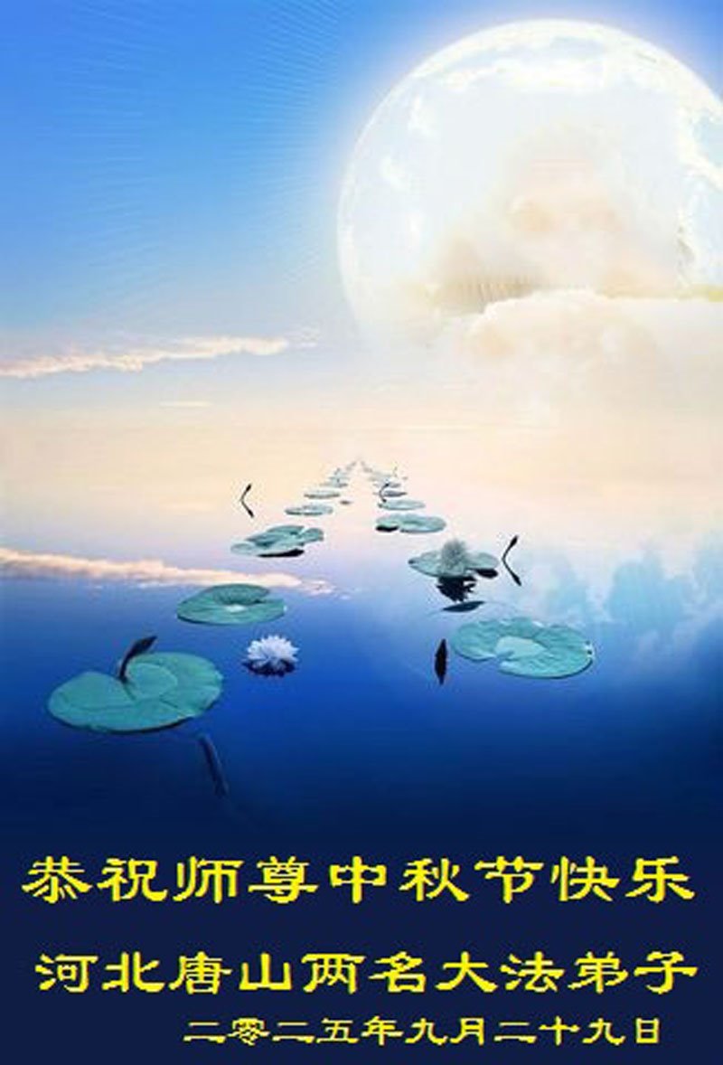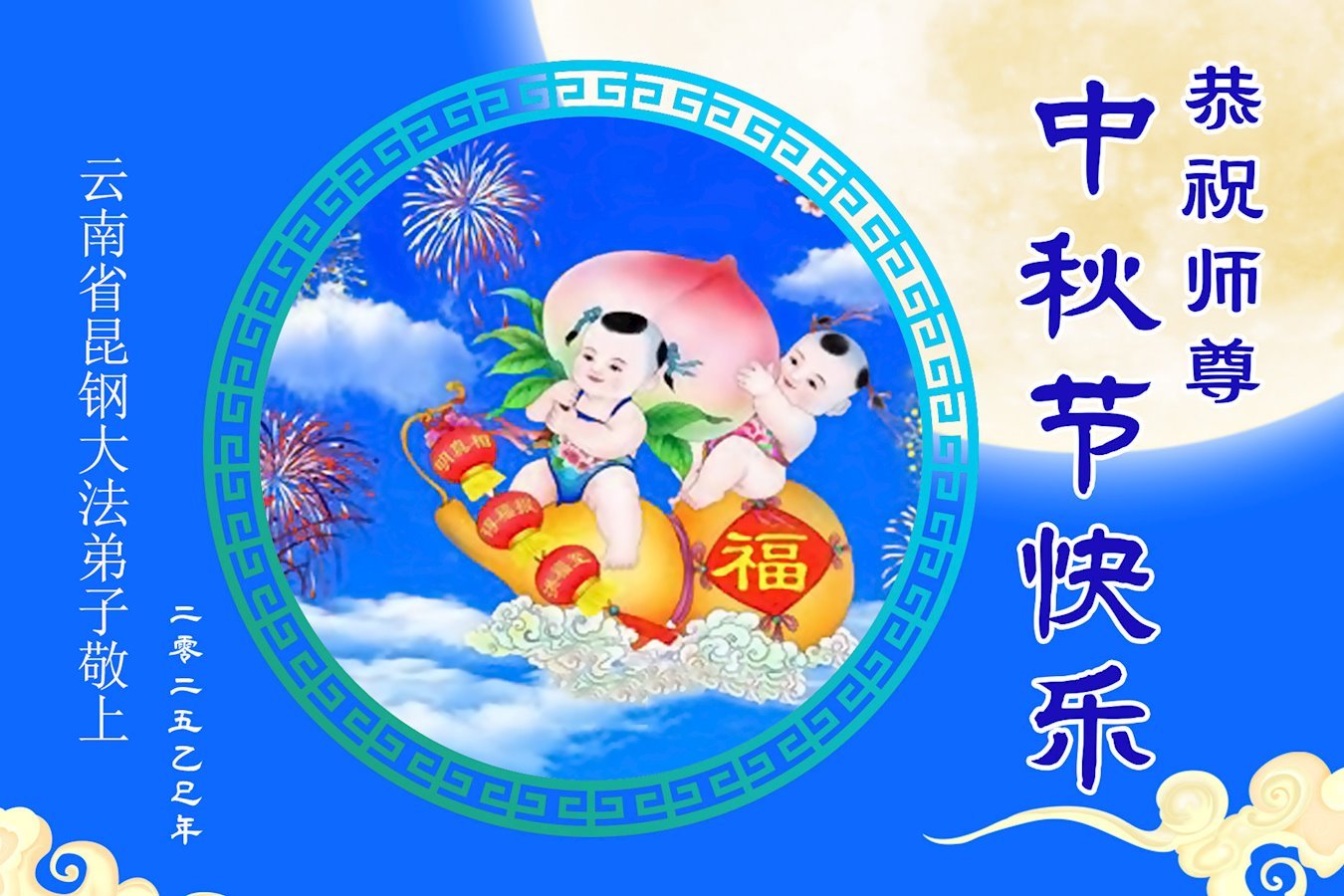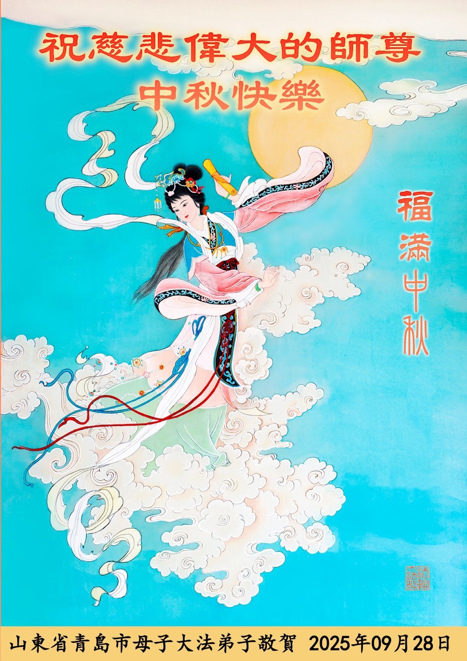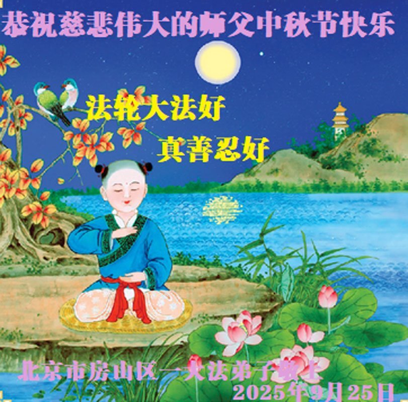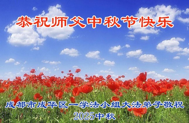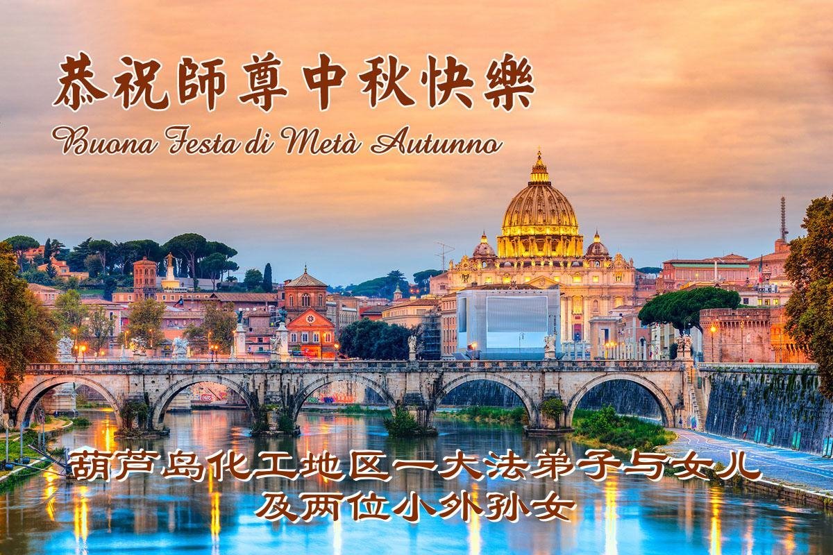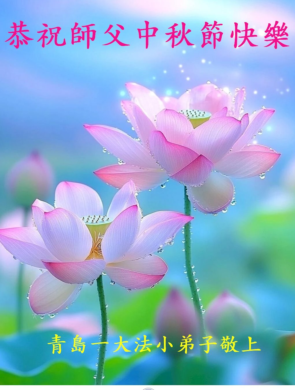 一年一度的中秋团圆佳节已来临,弟子在大洋彼岸向师尊问好。我们已经感觉到与师尊团聚的时间为期不远了。虽然盼望与师父早日团聚,但是大法弟子的使命是重要的。因此,在这最后的时刻,弟子一定抓紧时间做好三件事,完成自己的历史使命,圆满随师还。