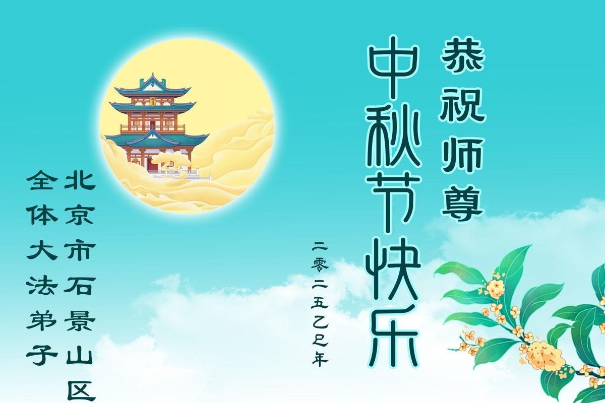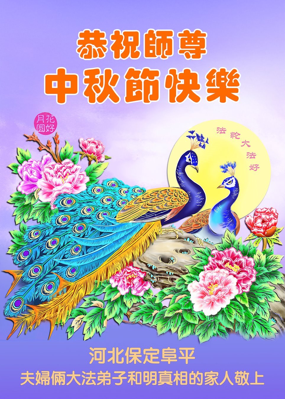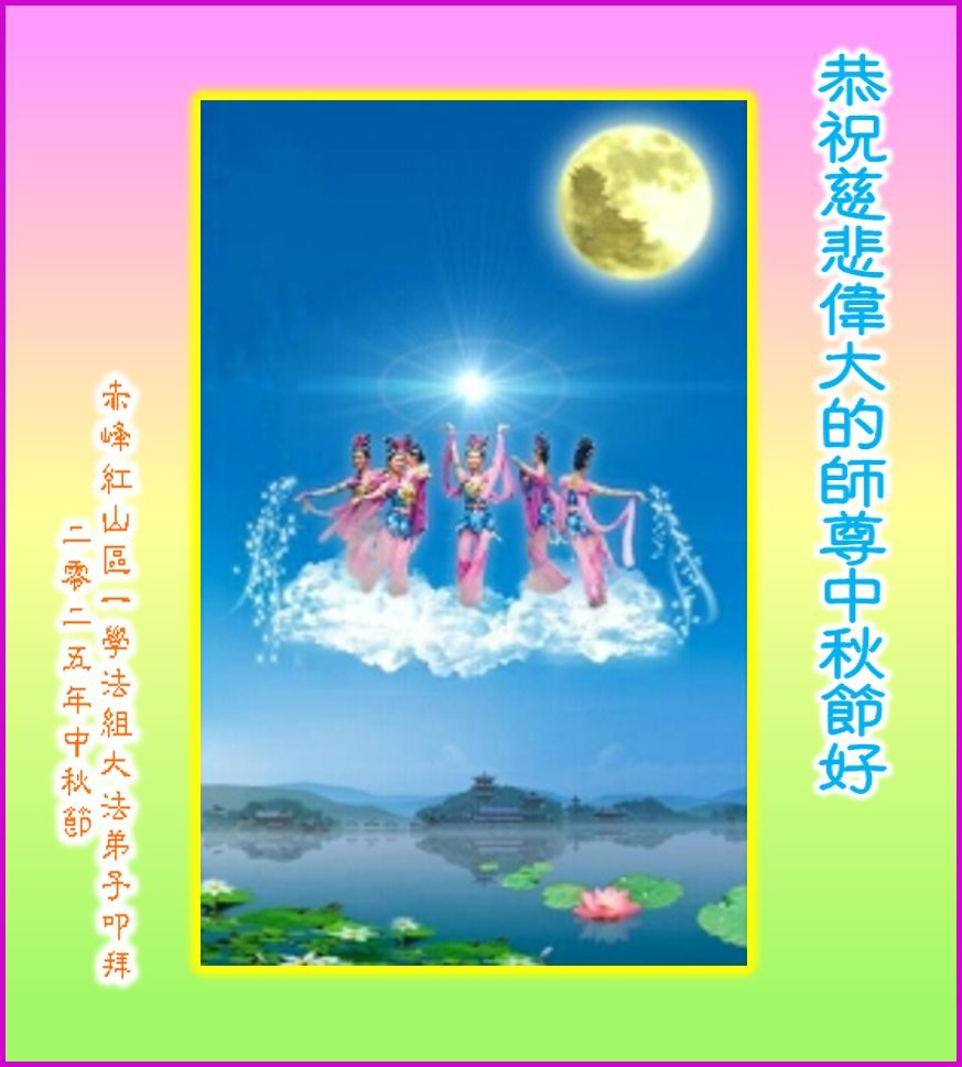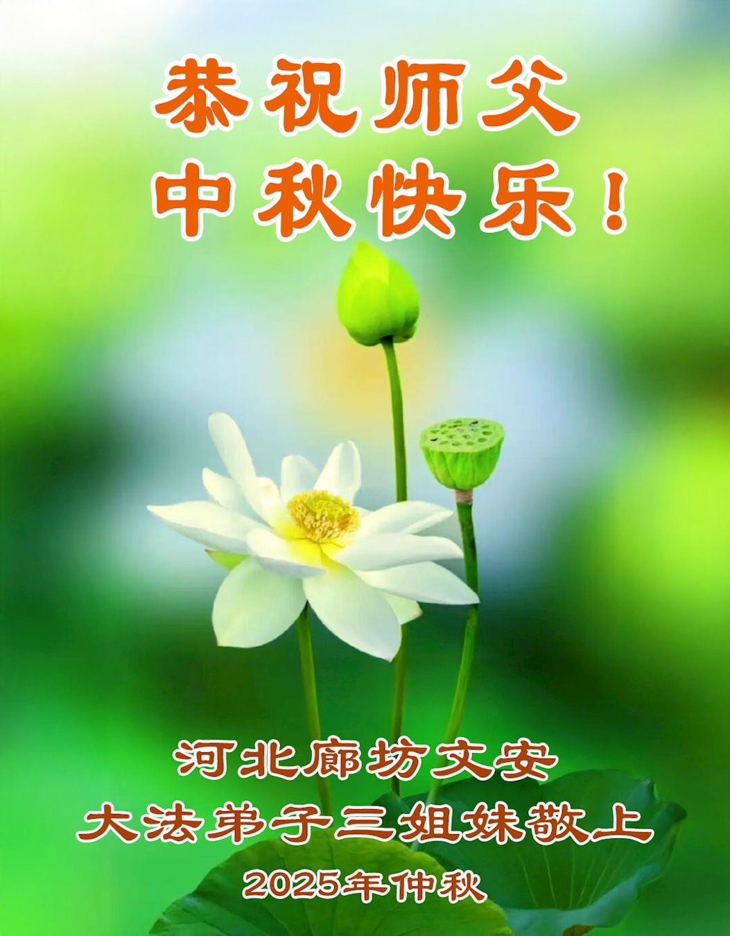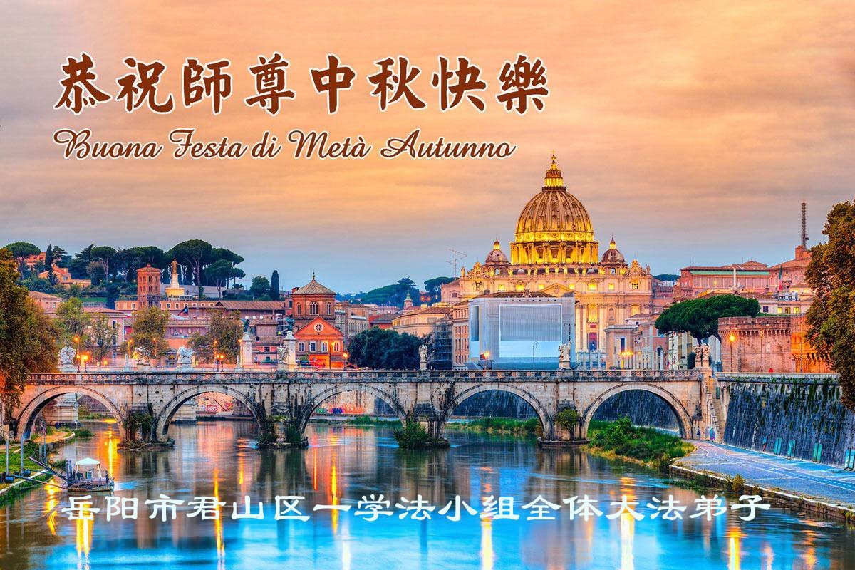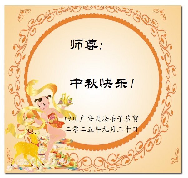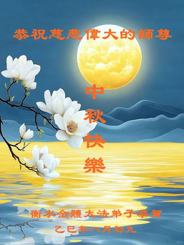 一年一度的中秋团圆佳节已来临,弟子在大洋彼岸向师尊问好。我们已经感觉到与师尊团聚的时间为期不远了。虽然盼望与师父早日团聚,但是大法弟子的使命是重要的。因此,在这最后的时刻,弟子一定抓紧时间做好三件事,完成自己的历史使命,圆满随师还。