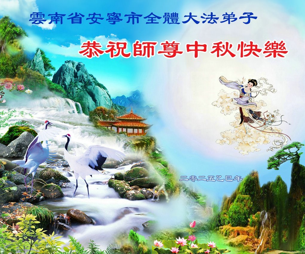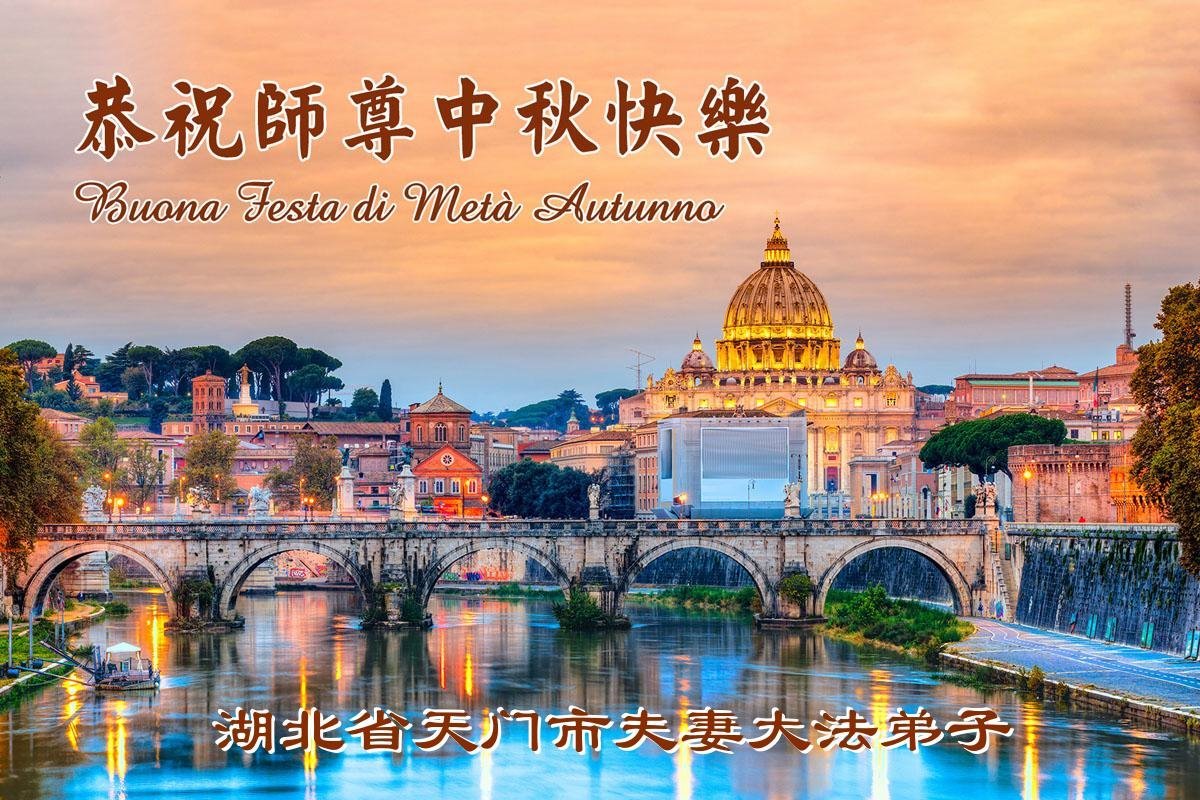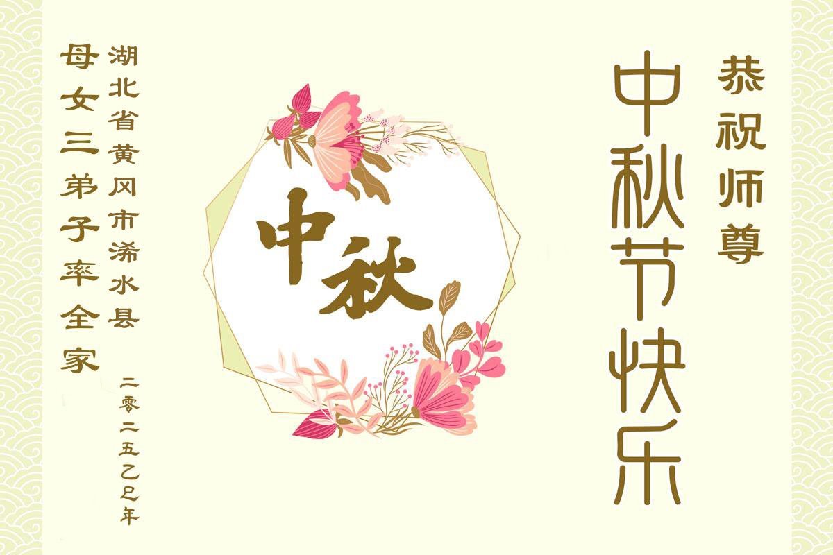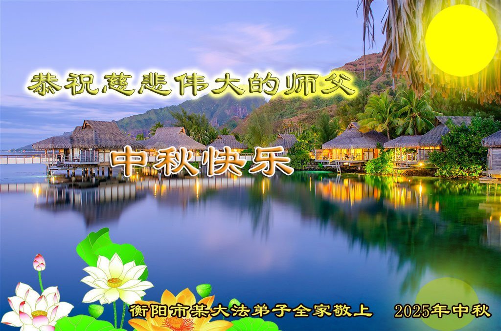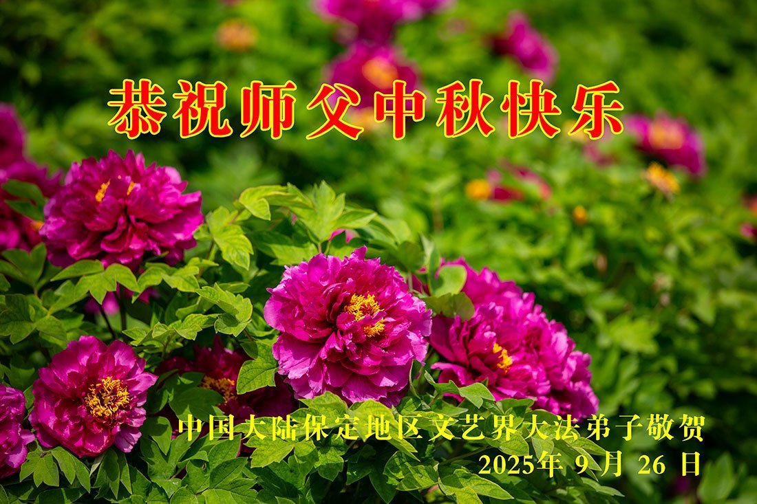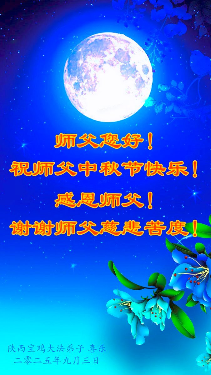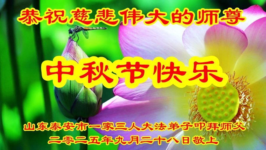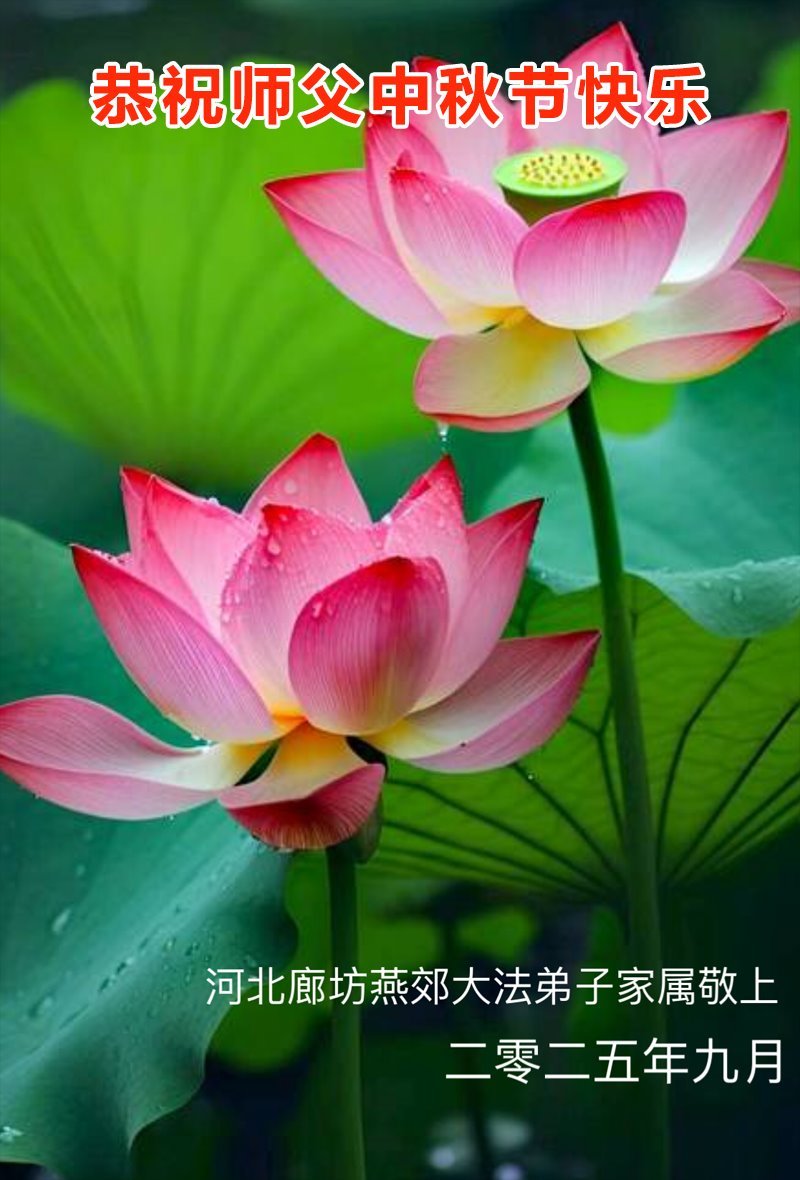 一年一度的中秋团圆佳节已来临,弟子在大洋彼岸向师尊问好。我们已经感觉到与师尊团聚的时间为期不远了。虽然盼望与师父早日团聚,但是大法弟子的使命是重要的。因此,在这最后的时刻,弟子一定抓紧时间做好三件事,完成自己的历史使命,圆满随师还。