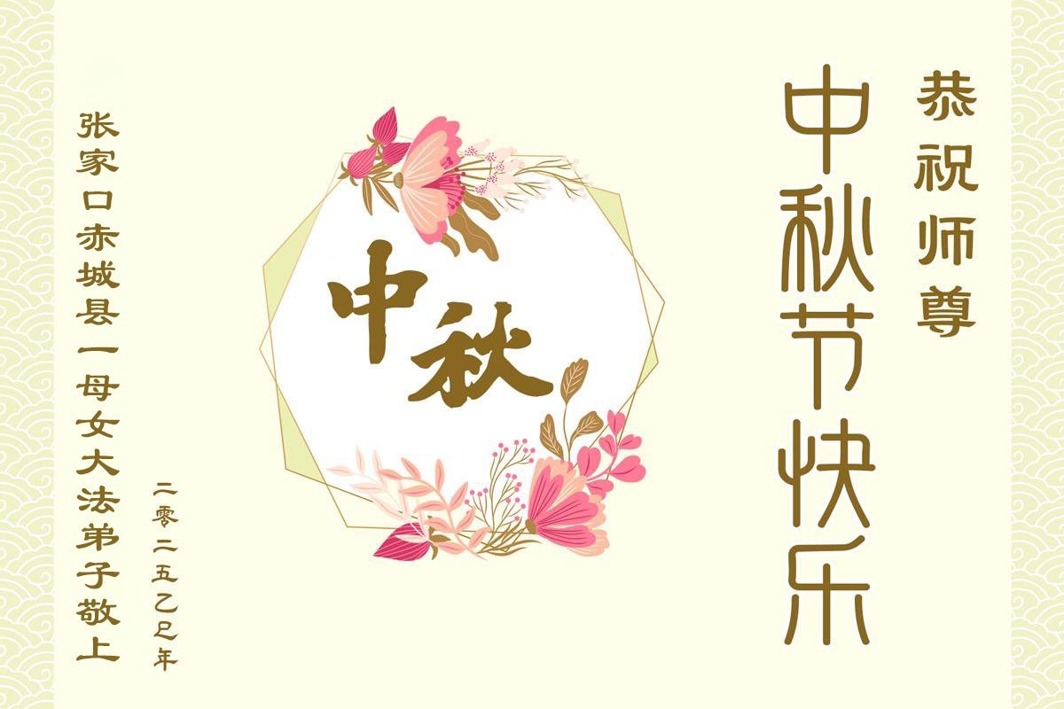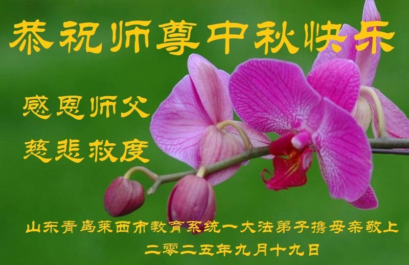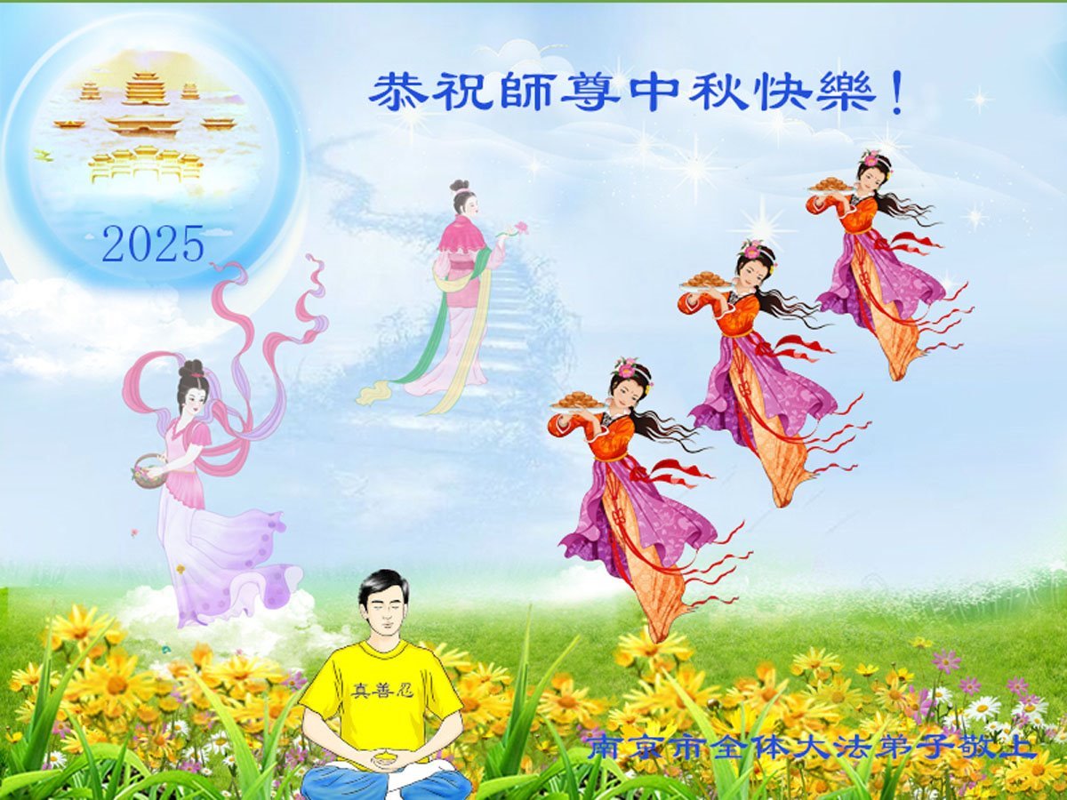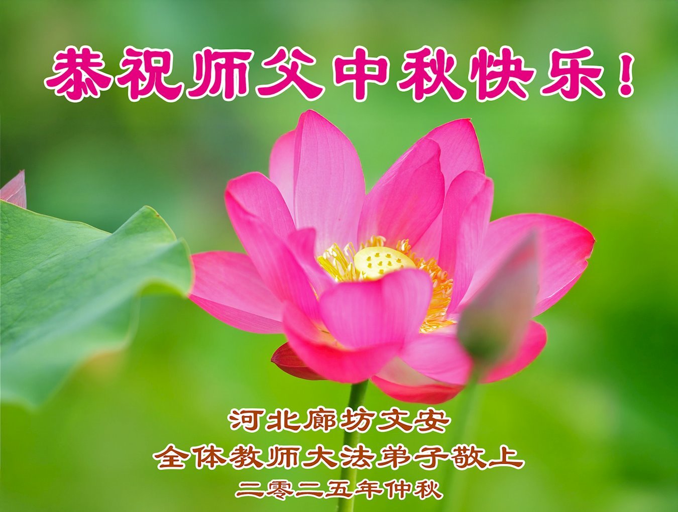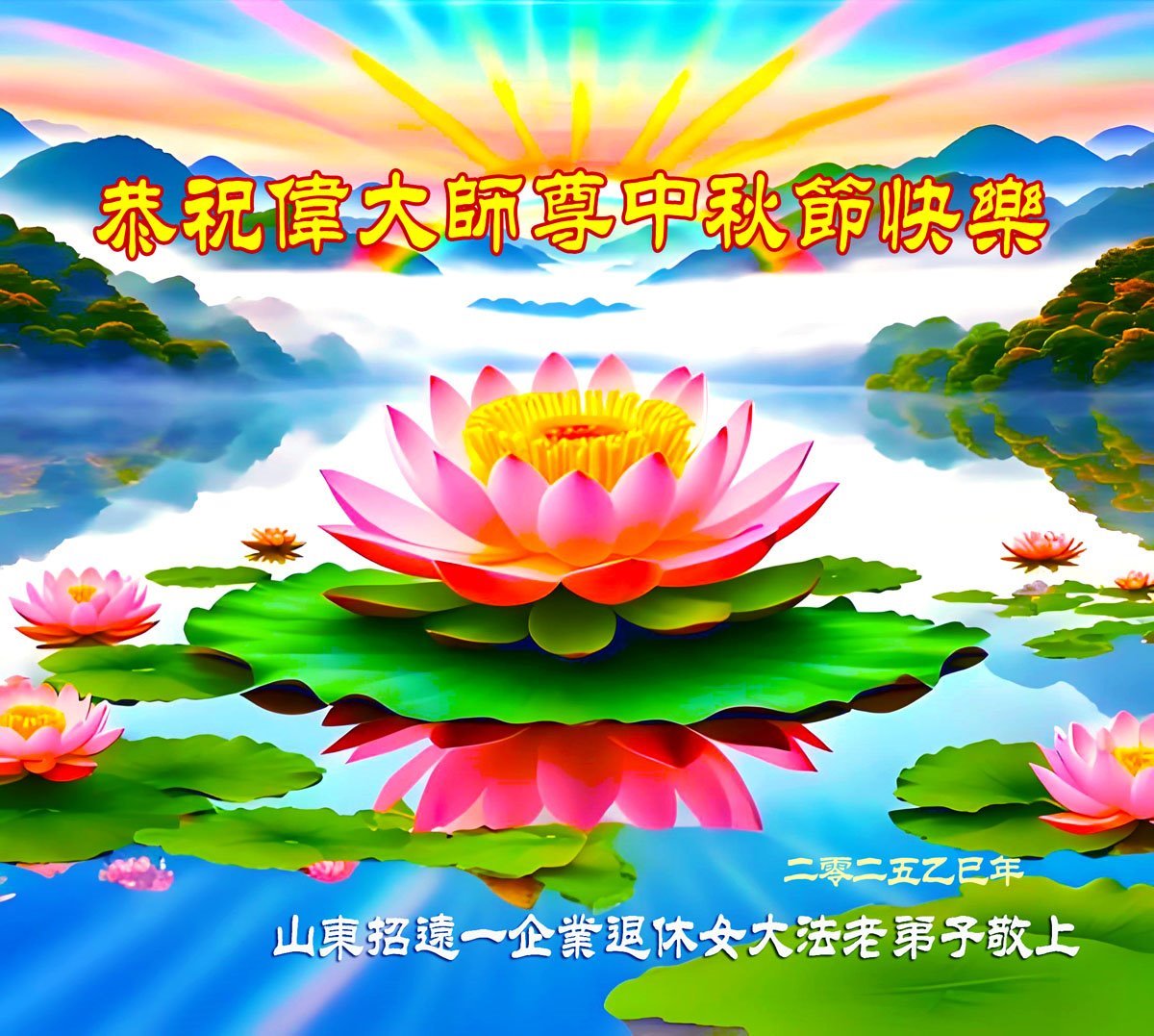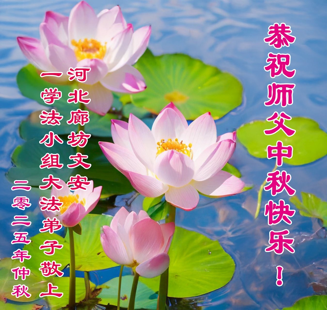 一年一度的中秋团圆佳节已来临,弟子在大洋彼岸向师尊问好。我们已经感觉到与师尊团聚的时间为期不远了。虽然盼望与师父早日团聚,但是大法弟子的使命是重要的。因此,在这最后的时刻,弟子一定抓紧时间做好三件事,完成自己的历史使命,圆满随师还。