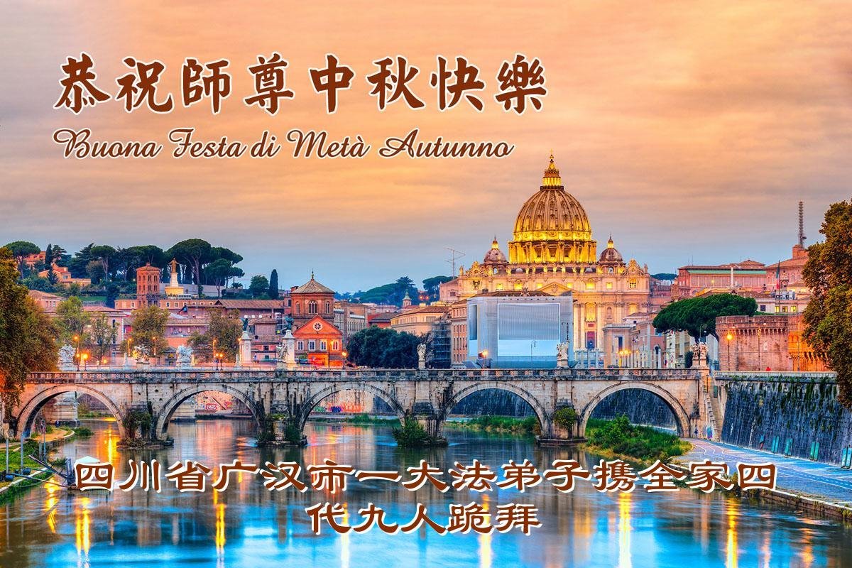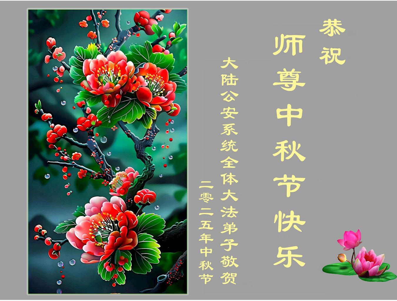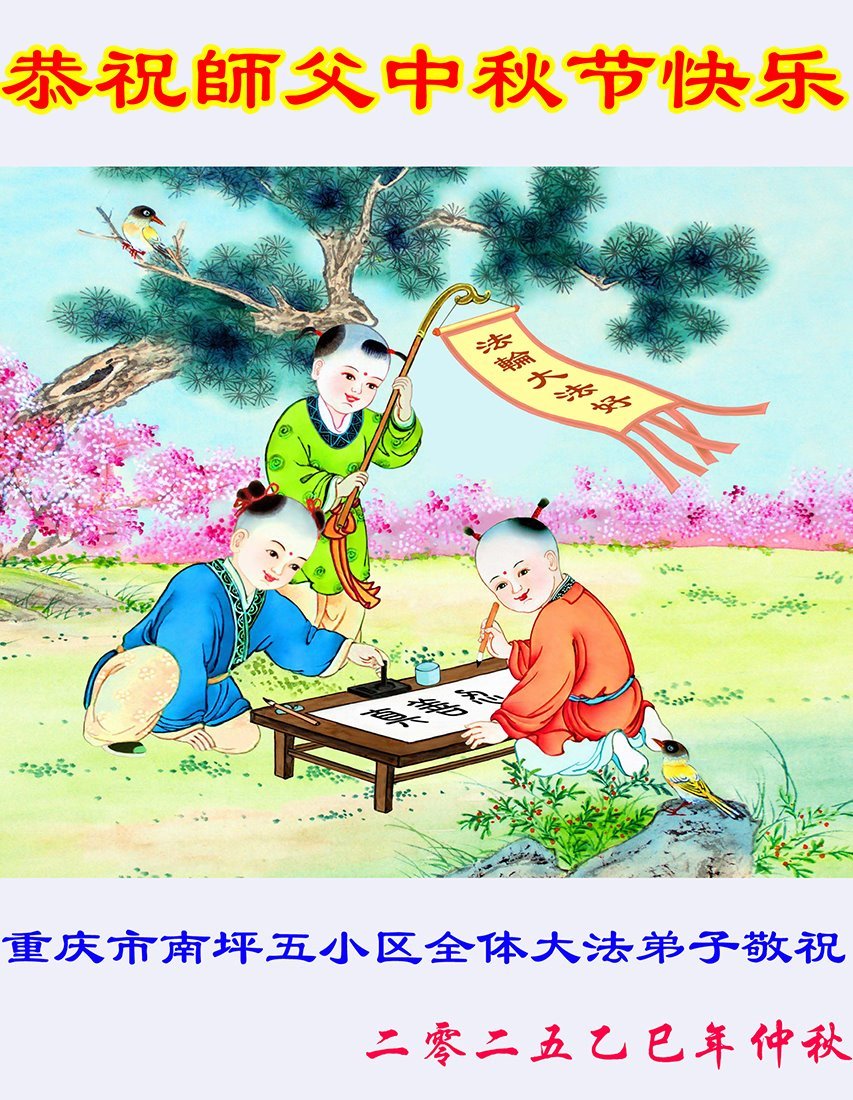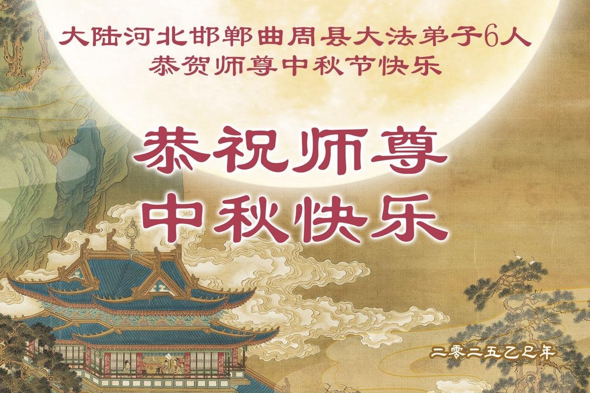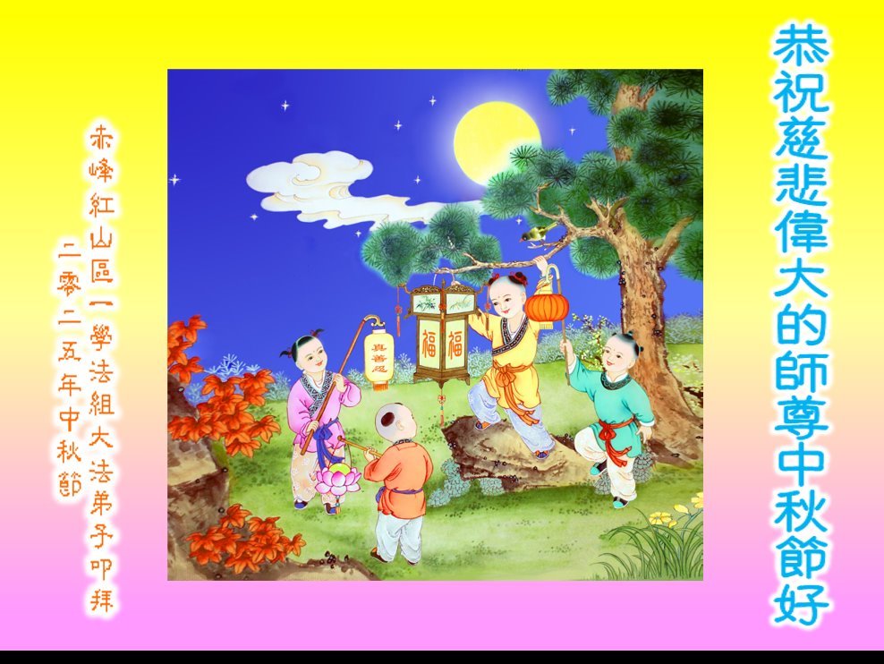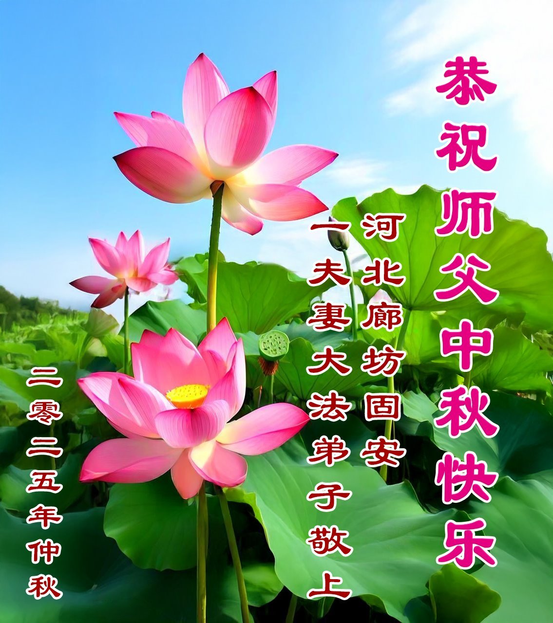 一年一度的中秋团圆佳节已来临,弟子在大洋彼岸向师尊问好。我们已经感觉到与师尊团聚的时间为期不远了。虽然盼望与师父早日团聚,但是大法弟子的使命是重要的。因此,在这最后的时刻,弟子一定抓紧时间做好三件事,完成自己的历史使命,圆满随师还。