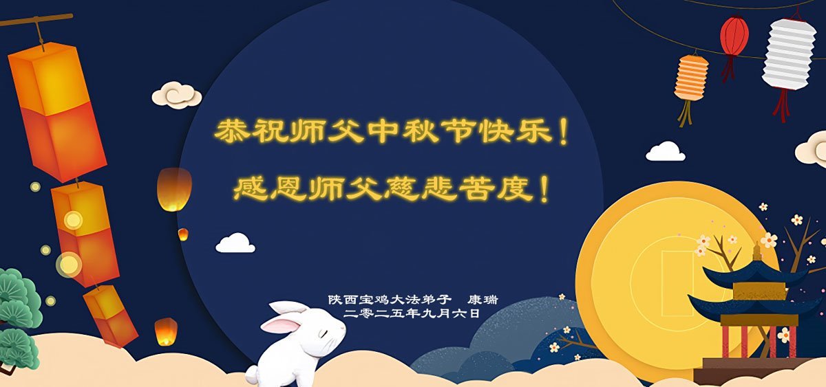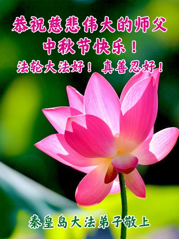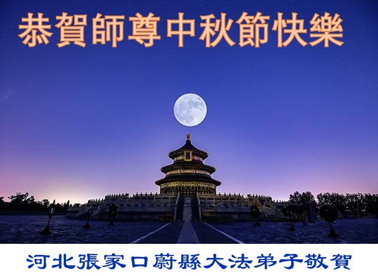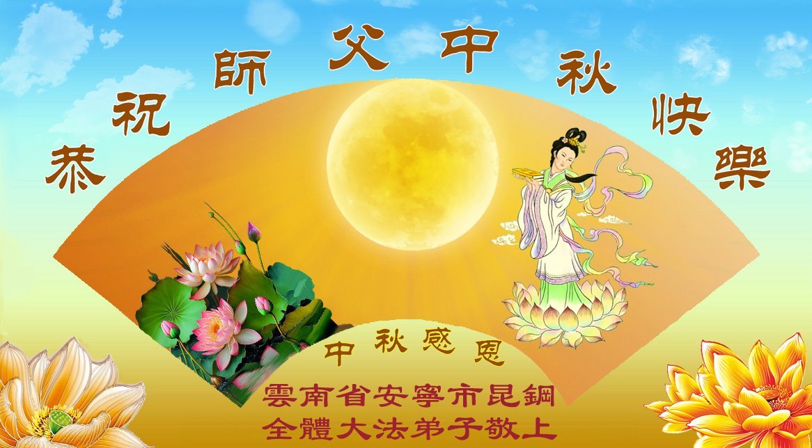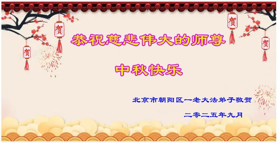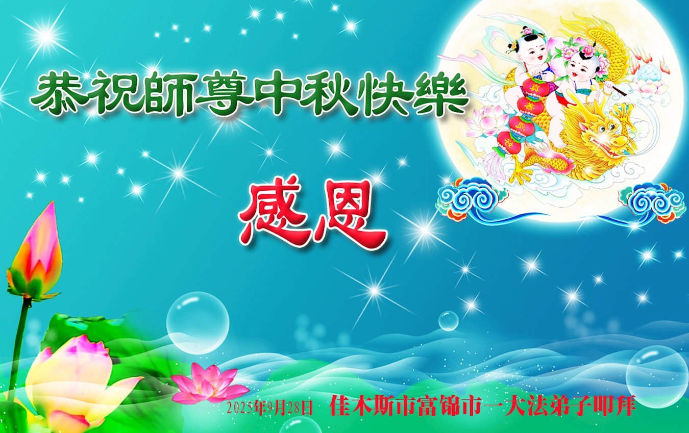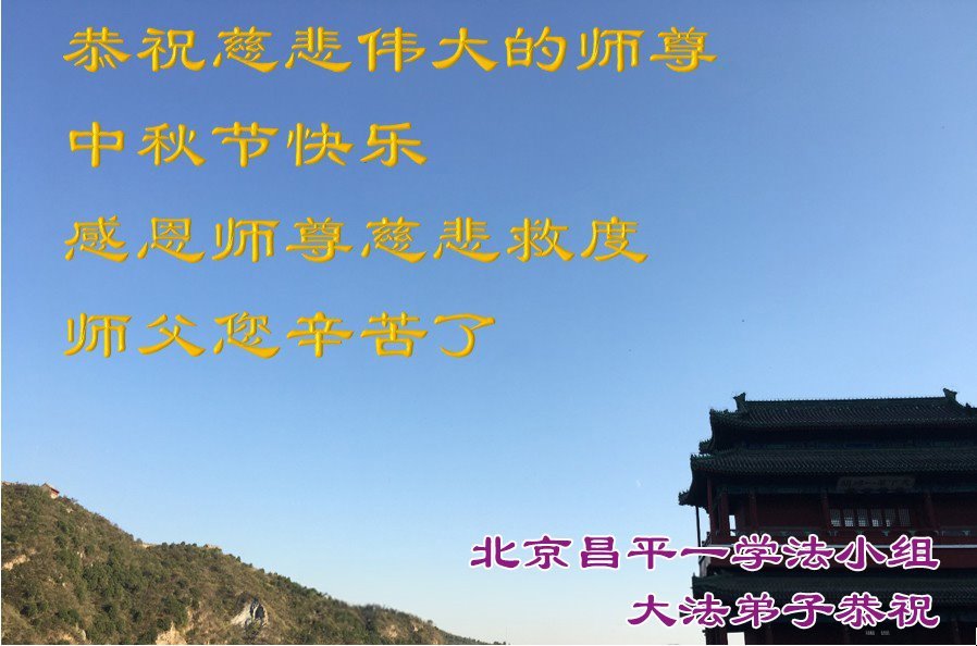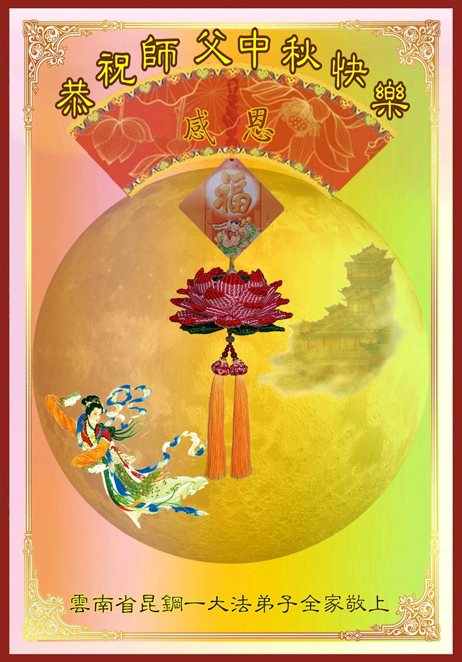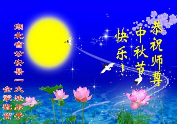 师父,您为众生承受的太多了!为了使大法弟子修炼成熟,为了使更多的众生得救,师父用巨大的付出一再延长时间。作为弟子没有语言表达对师父的感恩,唯有借此中秋佳节之际向伟大的师父问好:师父您辛苦了!我们一定遵照师父教诲,做好三件事,以报师恩!