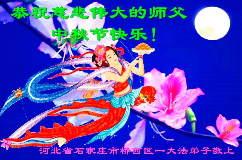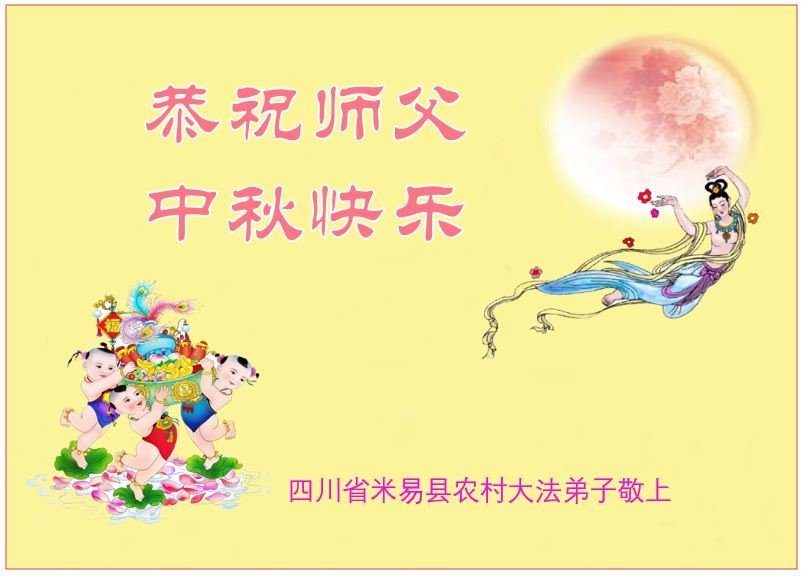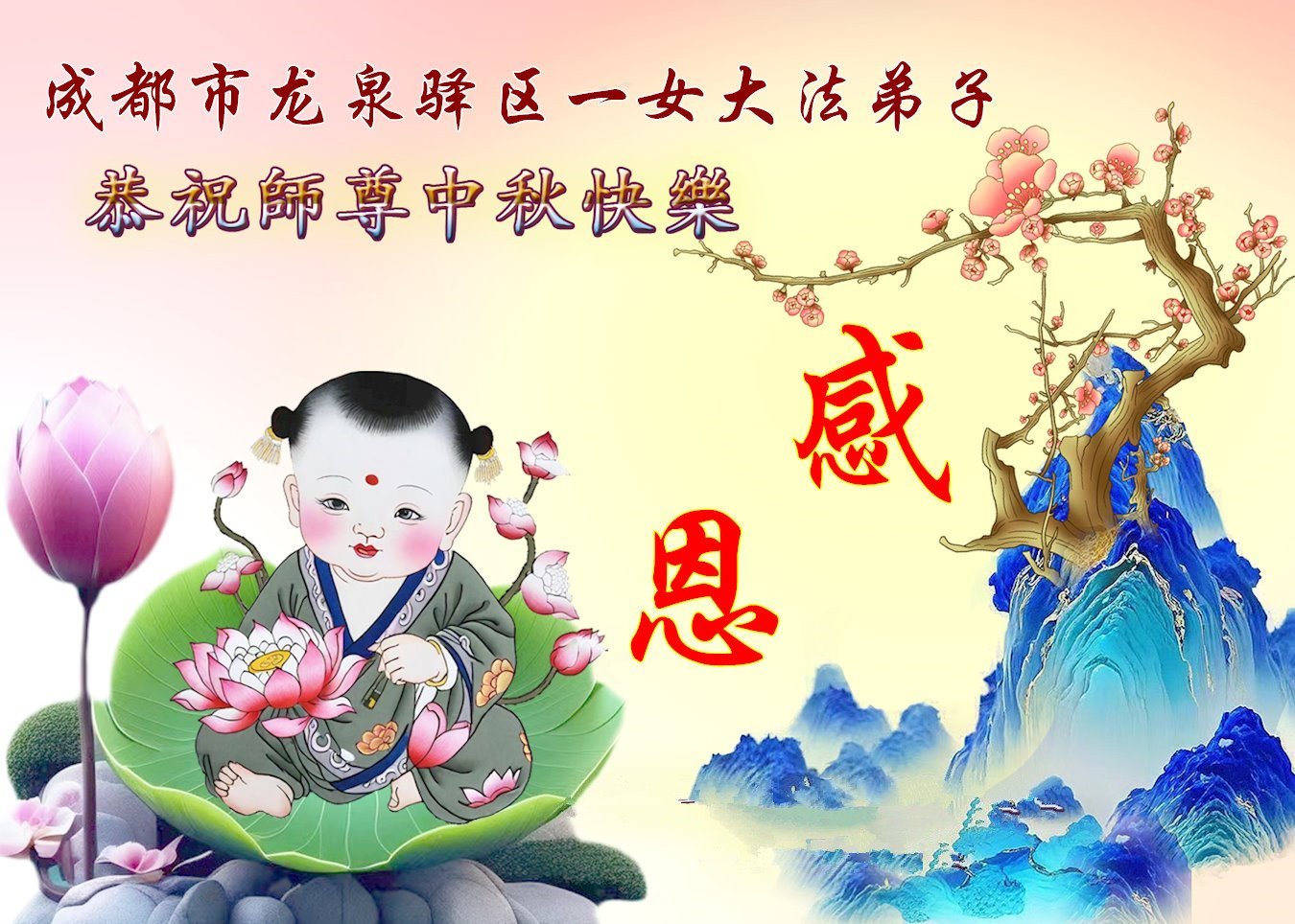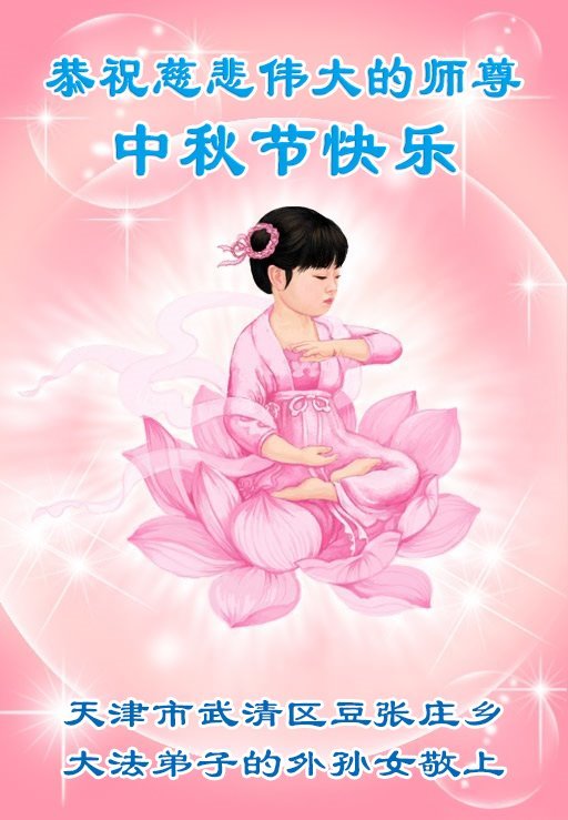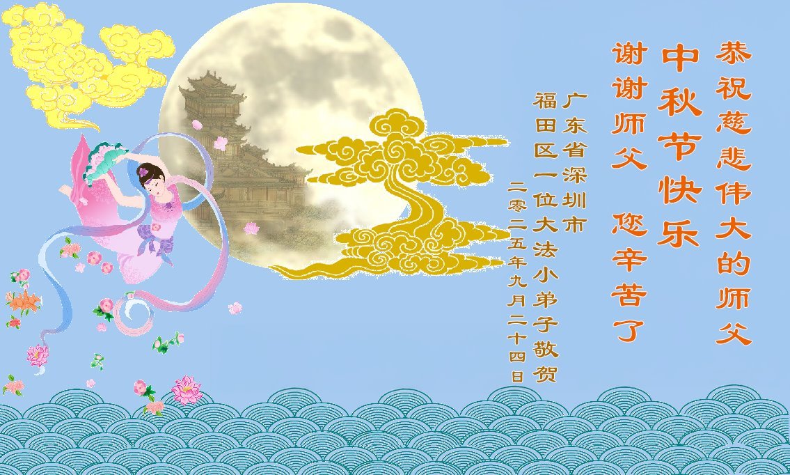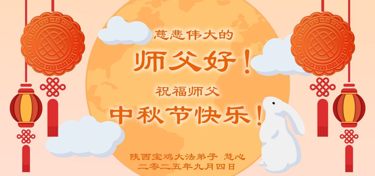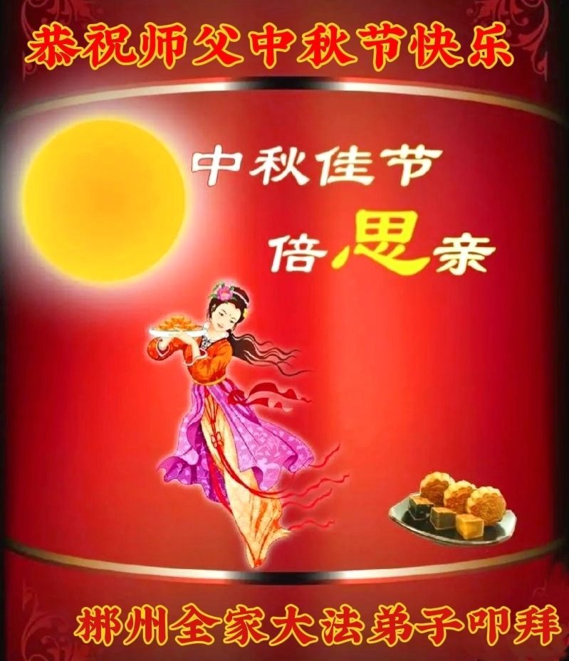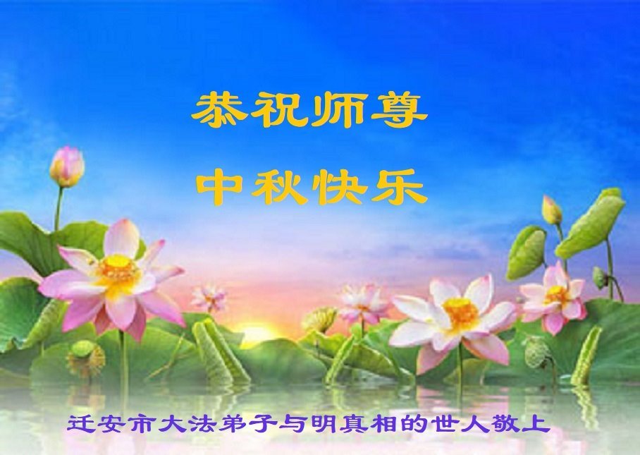 师父,您为众生承受的太多了!为了使大法弟子修炼成熟,为了使更多的众生得救,师父用巨大的付出一再延长时间。作为弟子没有语言表达对师父的感恩,唯有借此中秋佳节之际向伟大的师父问好:师父您辛苦了!我们一定遵照师父教诲,做好三件事,以报师恩!