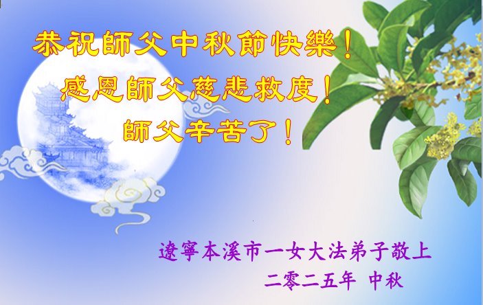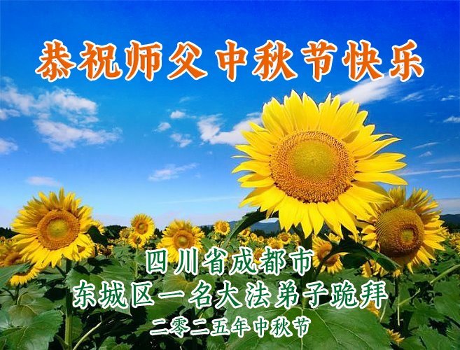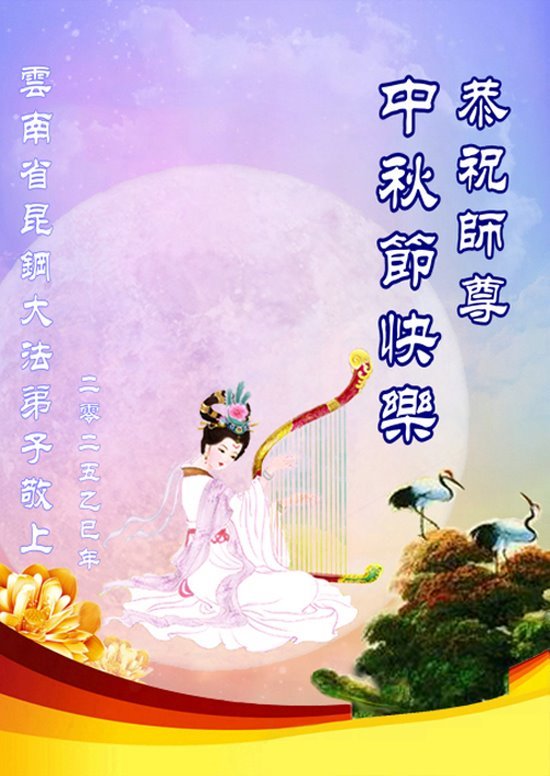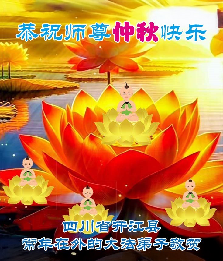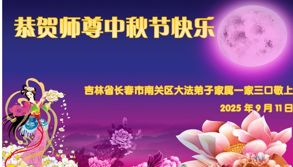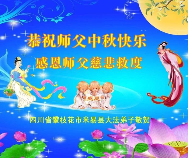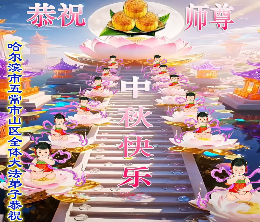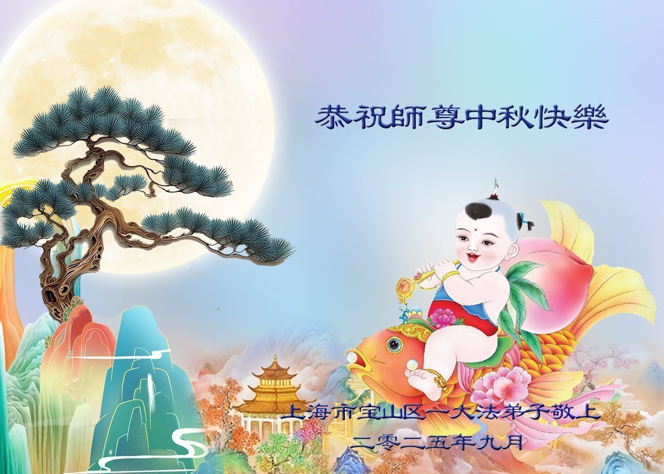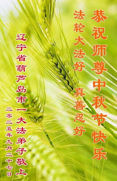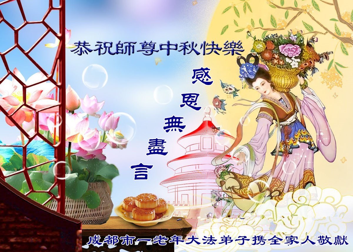 师父,您为众生承受的太多了!为了使大法弟子修炼成熟,为了使更多的众生得救,师父用巨大的付出一再延长时间。作为弟子没有语言表达对师父的感恩,唯有借此中秋佳节之际向伟大的师父问好:师父您辛苦了!我们一定遵照师父教诲,做好三件事,以报师恩!