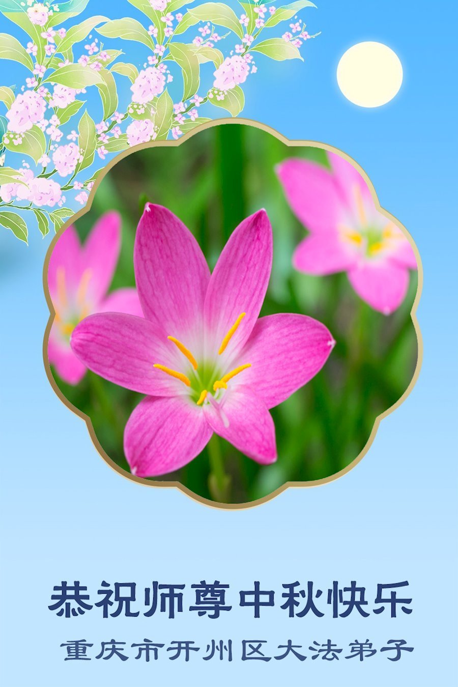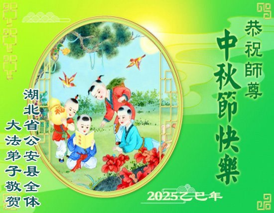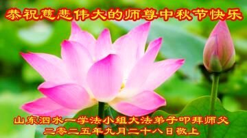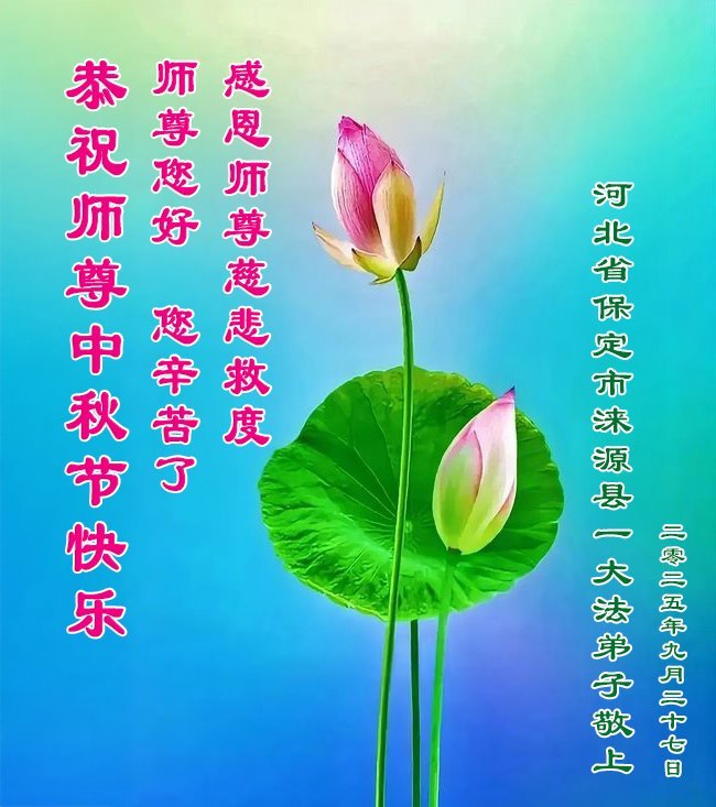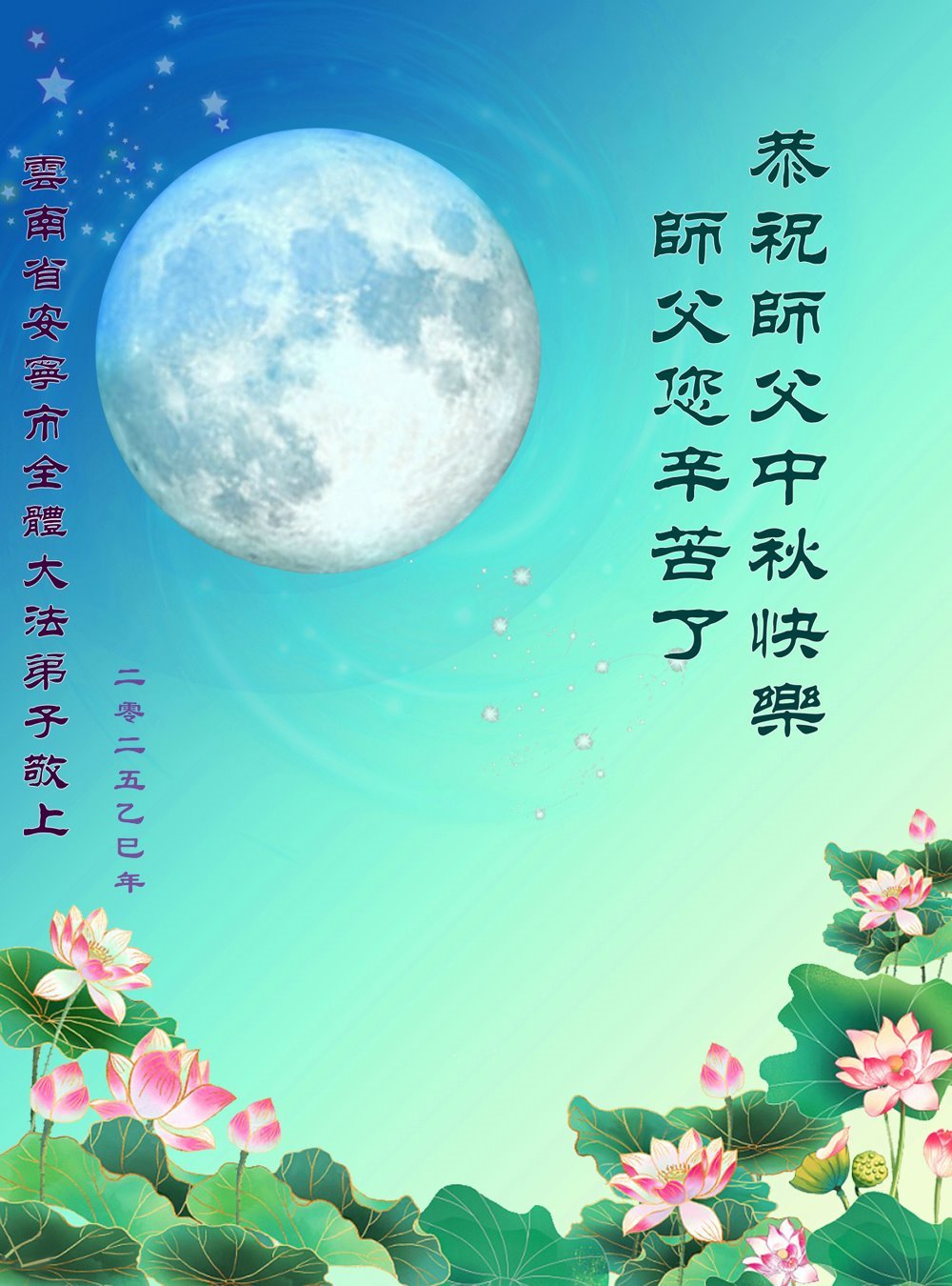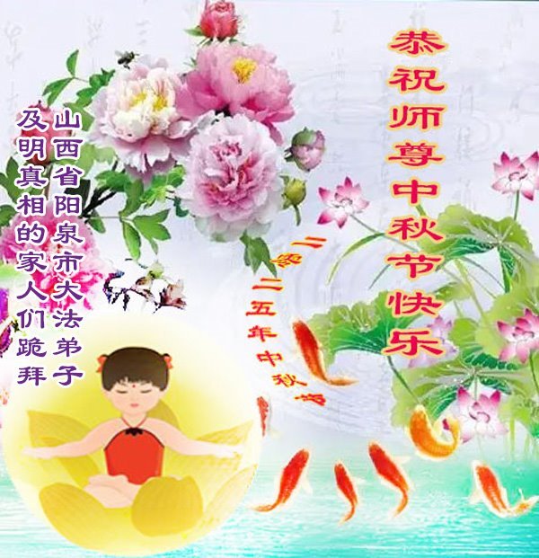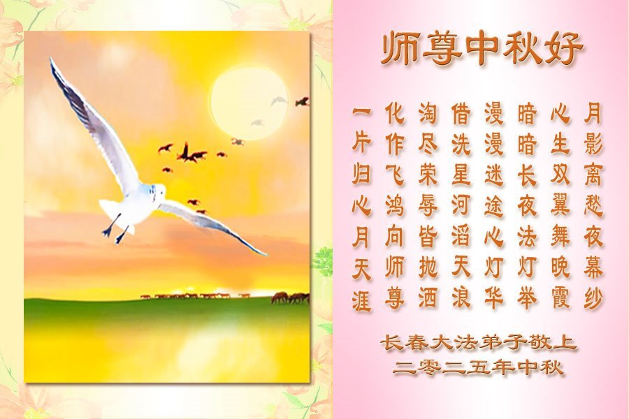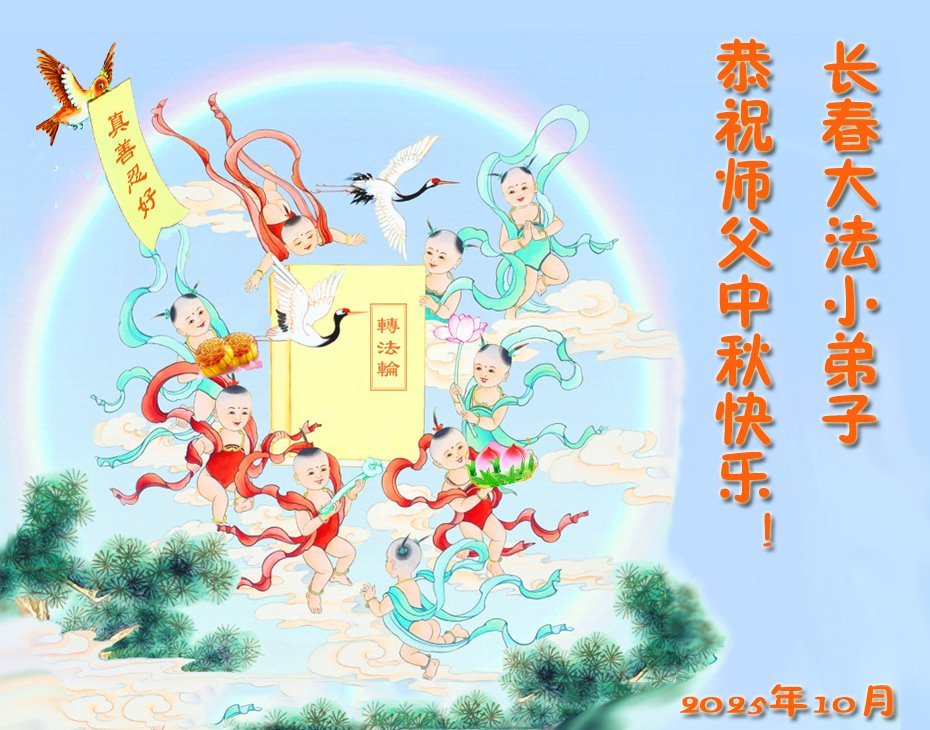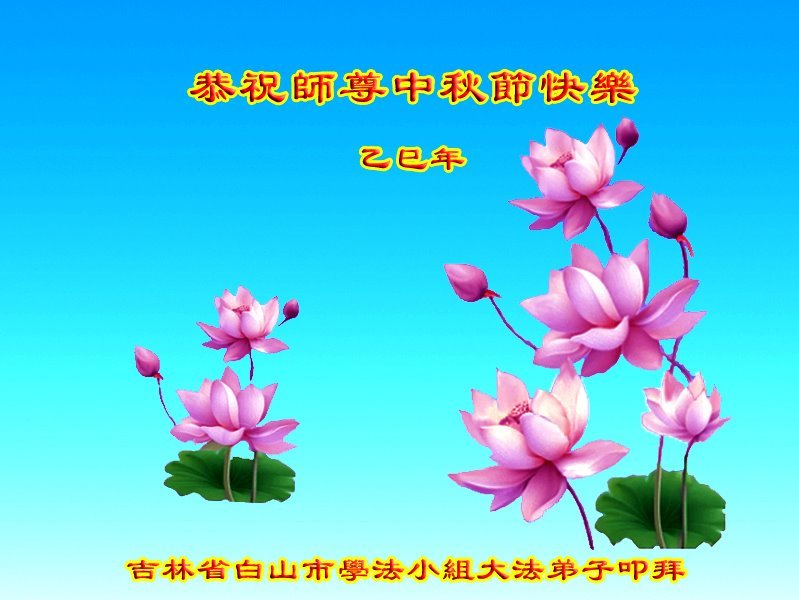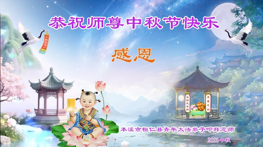 师父,您为众生承受的太多了!为了使大法弟子修炼成熟,为了使更多的众生得救,师父用巨大的付出一再延长时间。作为弟子没有语言表达对师父的感恩,唯有借此中秋佳节之际向伟大的师父问好:师父您辛苦了!我们一定遵照师父教诲,做好三件事,以报师恩!