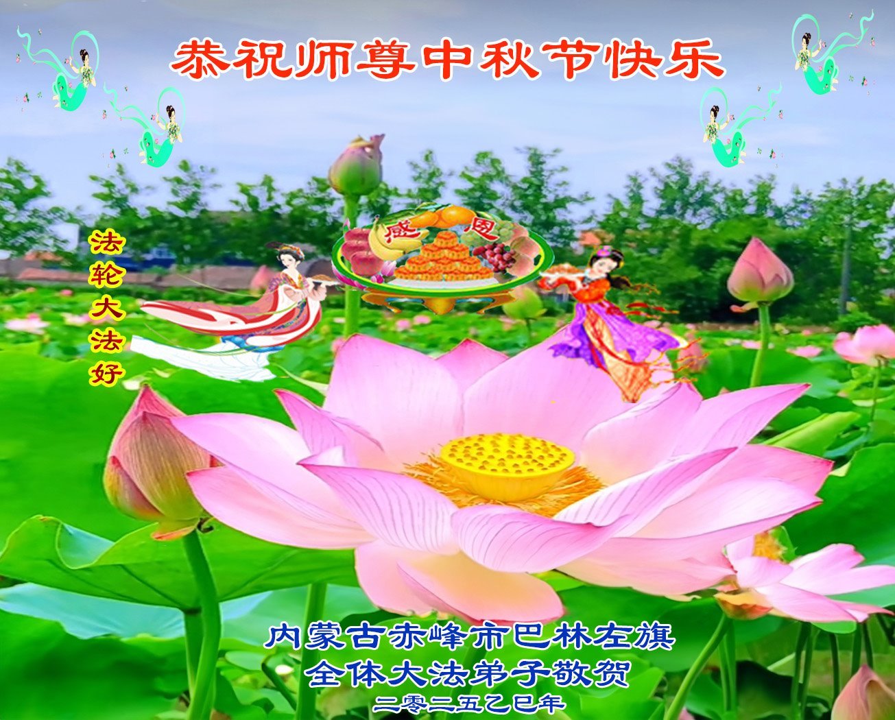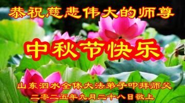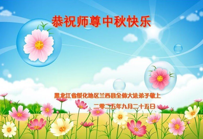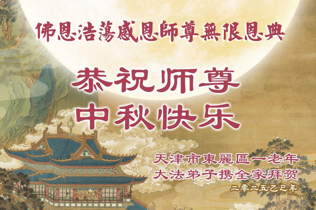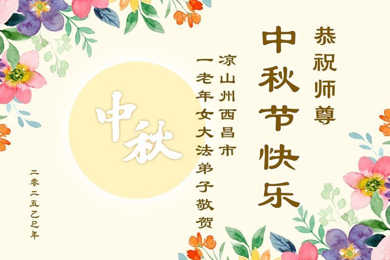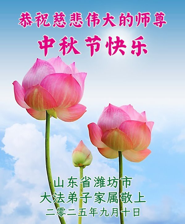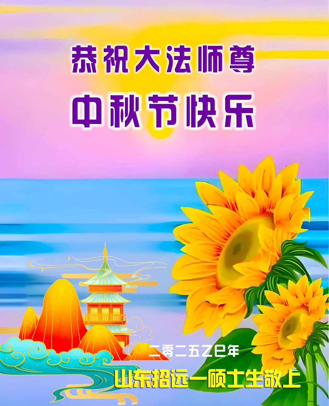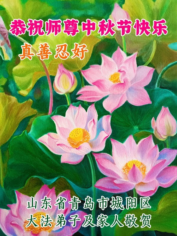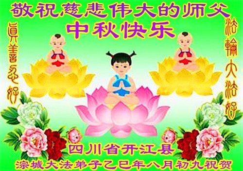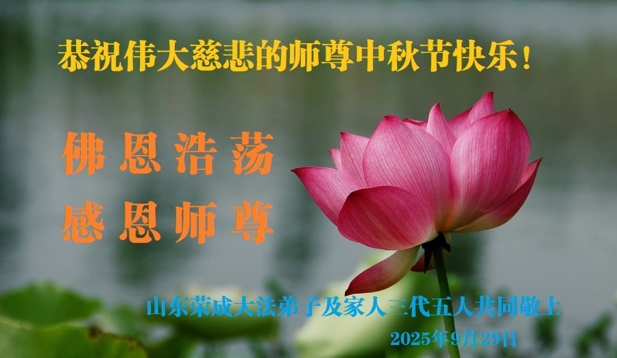 师父,您为众生承受的太多了!为了使大法弟子修炼成熟,为了使更多的众生得救,师父用巨大的付出一再延长时间。作为弟子没有语言表达对师父的感恩,唯有借此中秋佳节之际向伟大的师父问好:师父您辛苦了!我们一定遵照师父教诲,做好三件事,以报师恩!