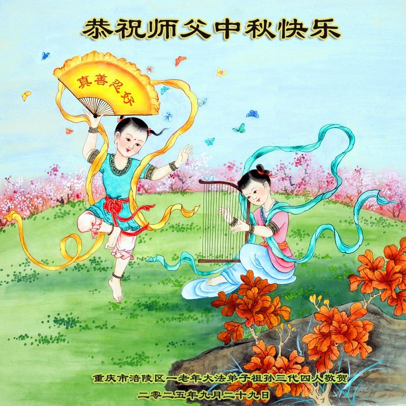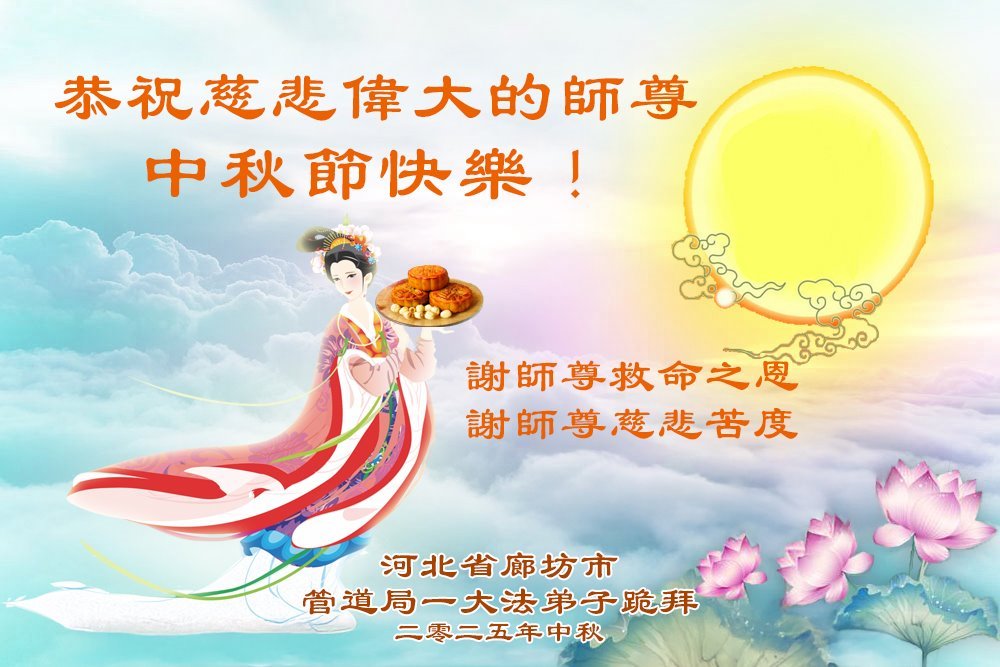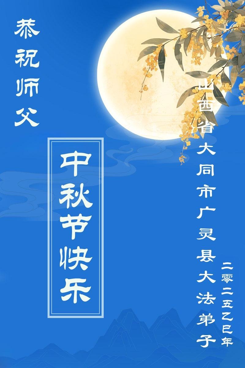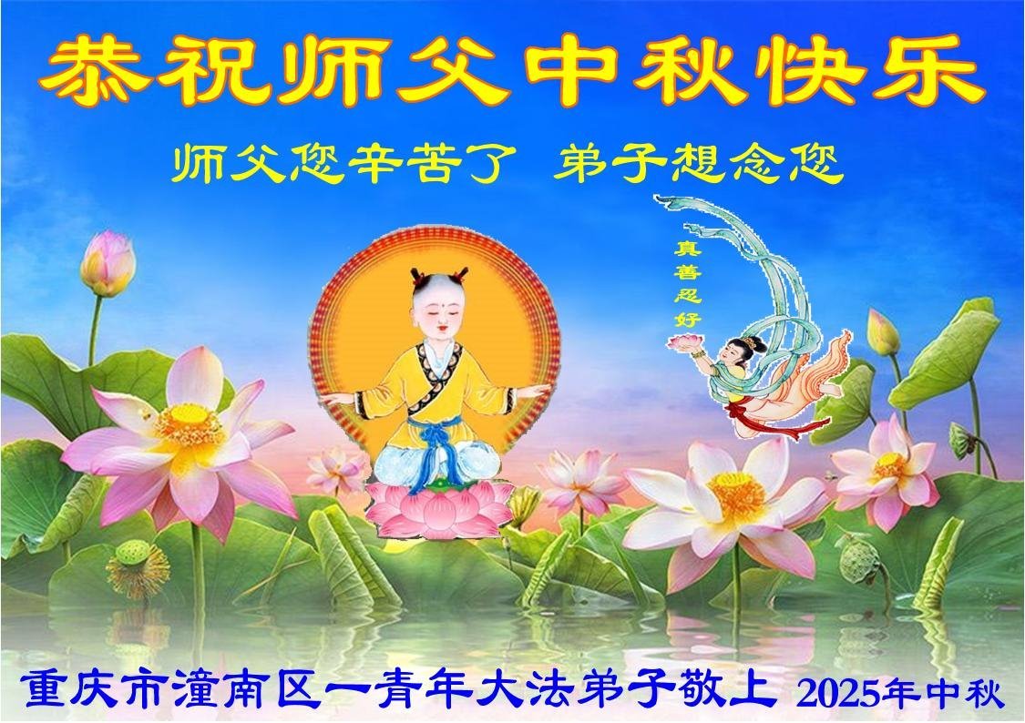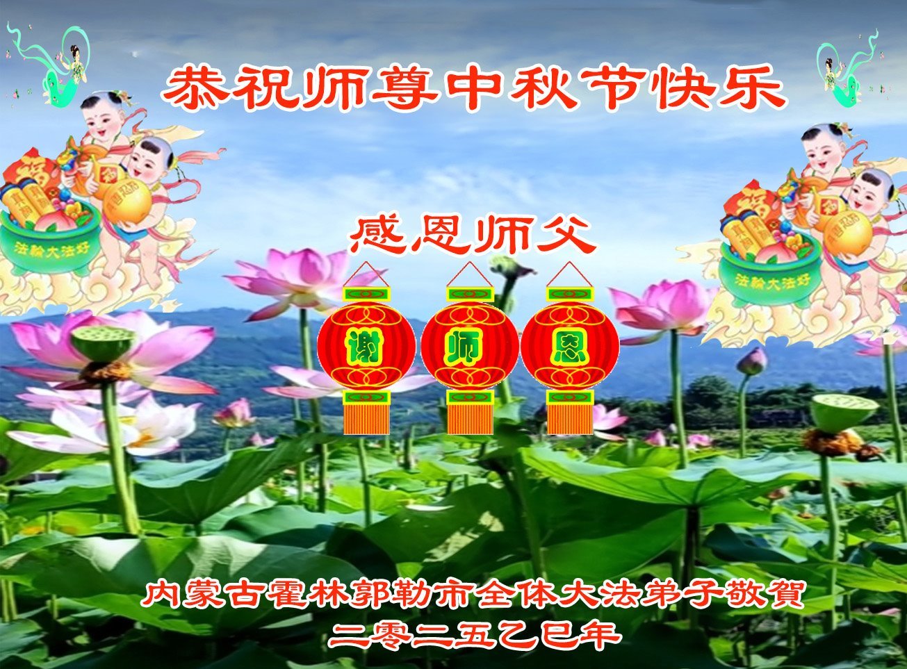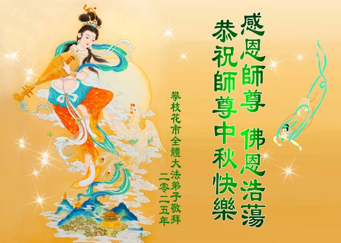 师父,您为众生承受的太多了!为了使大法弟子修炼成熟,为了使更多的众生得救,师父用巨大的付出一再延长时间。作为弟子没有语言表达对师父的感恩,唯有借此中秋佳节之际向伟大的师父问好:师父您辛苦了!我们一定遵照师父教诲,做好三件事,以报师恩!