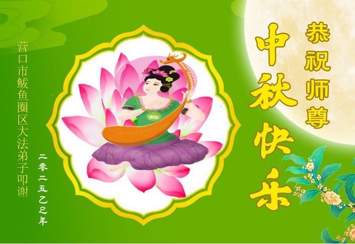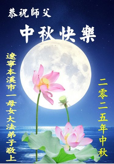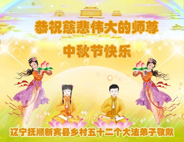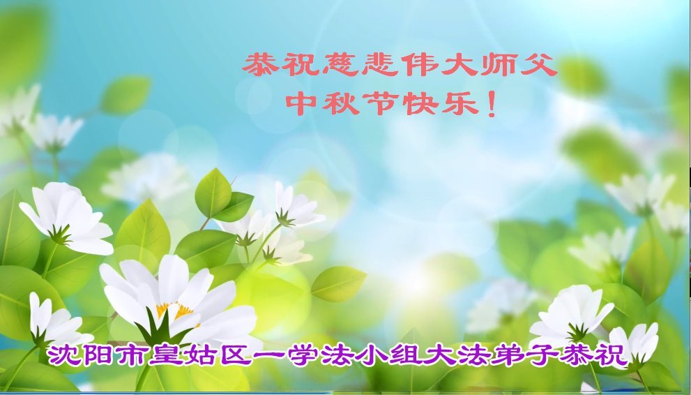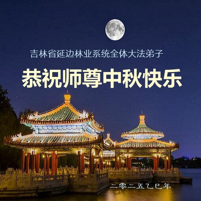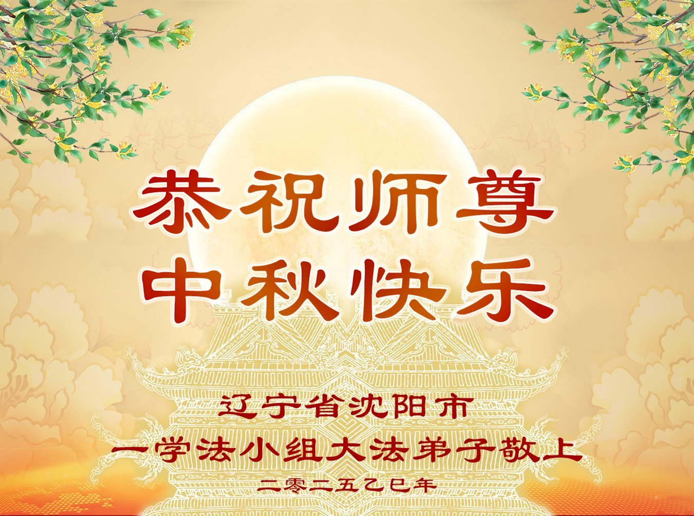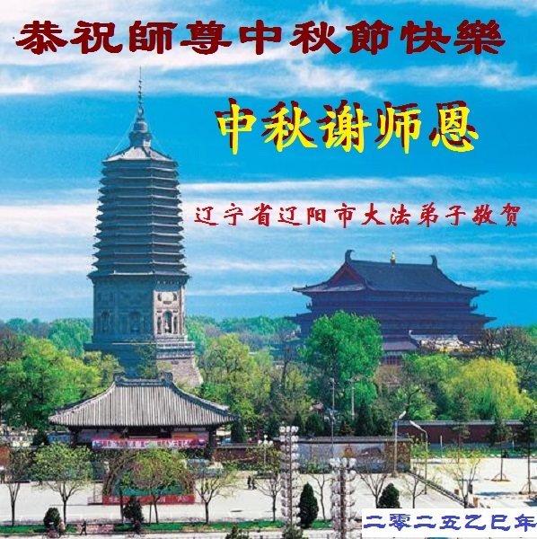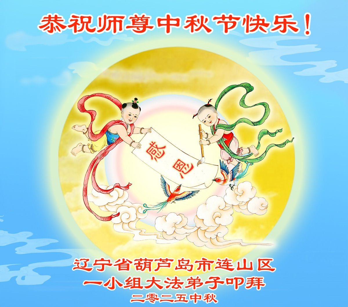 在这秋高气爽,明月高悬之时,我们大陆辽宁省辽阳市一学法小组怀着对师尊的感恩,怀着对正法必成的信念,怀着救度众生的史前大愿,决心一定不辱使命,放下人心,努力配合,助师正法,救度众生,在最后有限的正法时间里,做的更好,圆满随师还。