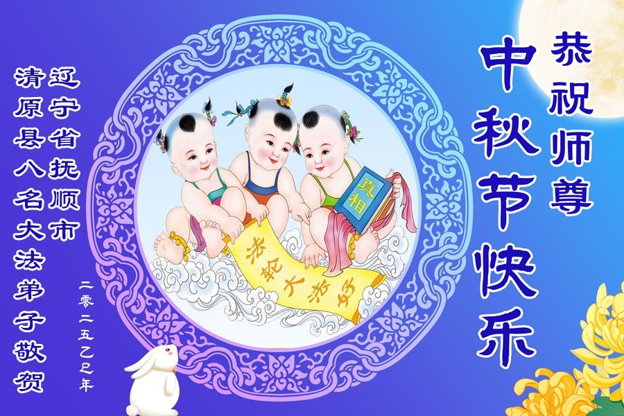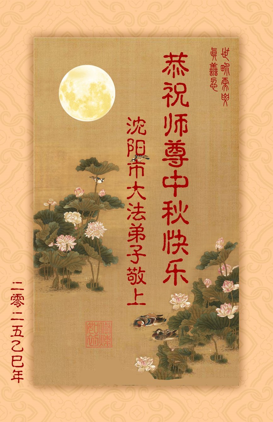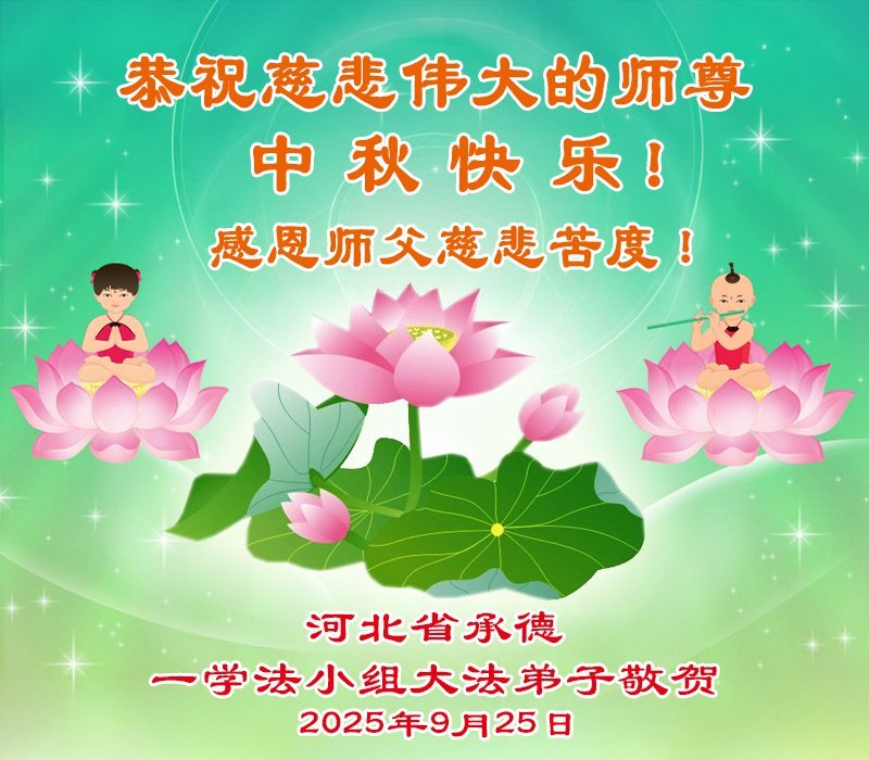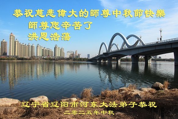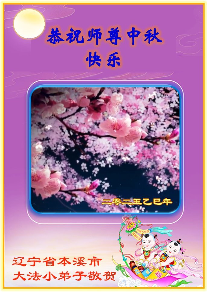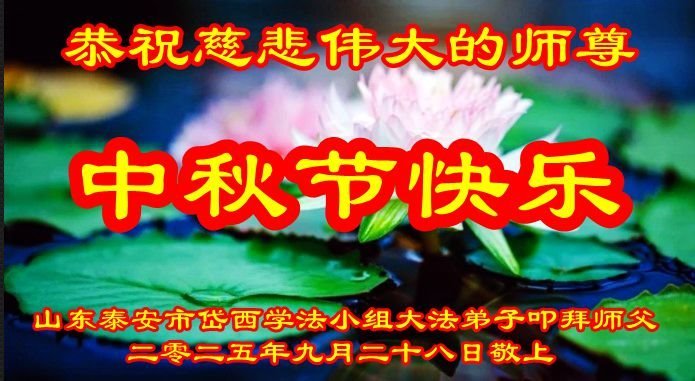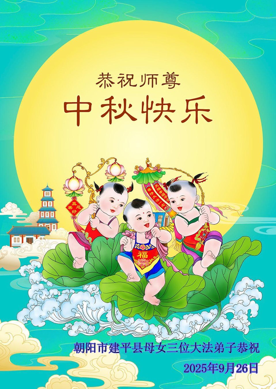 在这秋高气爽,明月高悬之时,我们大陆辽宁省辽阳市一学法小组怀着对师尊的感恩,怀着对正法必成的信念,怀着救度众生的史前大愿,决心一定不辱使命,放下人心,努力配合,助师正法,救度众生,在最后有限的正法时间里,做的更好,圆满随师还。