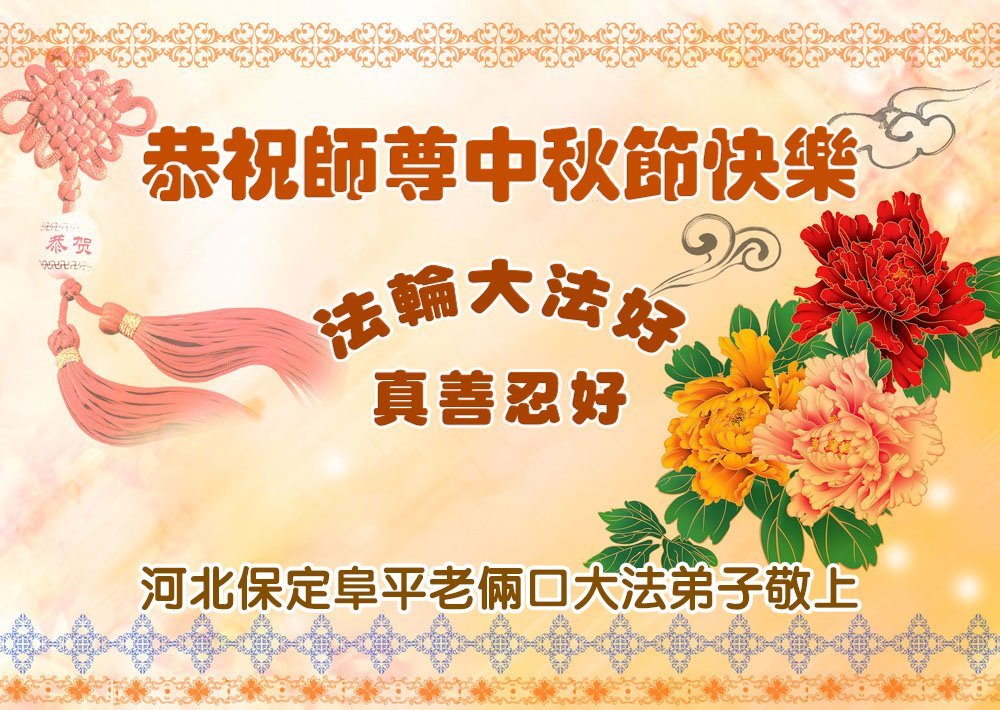 在我九十一岁那年,正值中秋节要到了,当时我让女儿帮我写给师父的节日问候。女儿写完后,我交给同修。同修把稿件的开头和结尾改变了一下,称呼作为大法弟子家人给师父的贺词发往明慧网。女儿写道:我妈妈今年九十一岁高龄了,自从二十年前炼了法轮功,从一个满身是病、不能干活的人,变成了走路生风无病一身轻的超级健康的人。而且,九十多岁的人,耳不聋、眼不花、头发不白,牙齿好,洗衣、做饭、收拾家务手脚麻利。因为我妈妈修炼法轮功,作为女儿我从不为她身体健康担心,用我妈妈自己的话说,她有师父管。感谢大法师父让我妈妈拥有健康的身体,感恩大法师父。中秋节来临,我衷心祝愿大法师父中秋节快乐!法轮大法好!真善忍好!