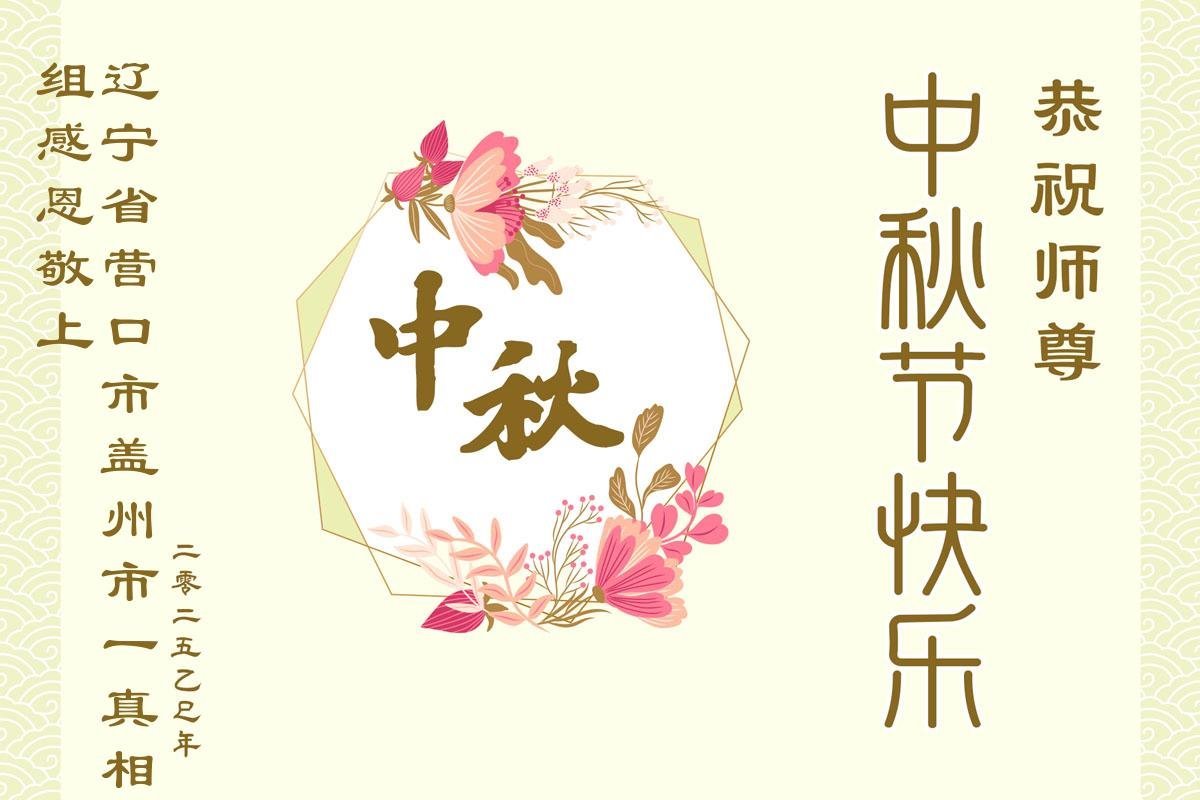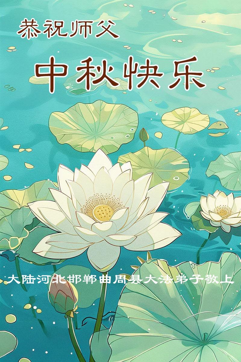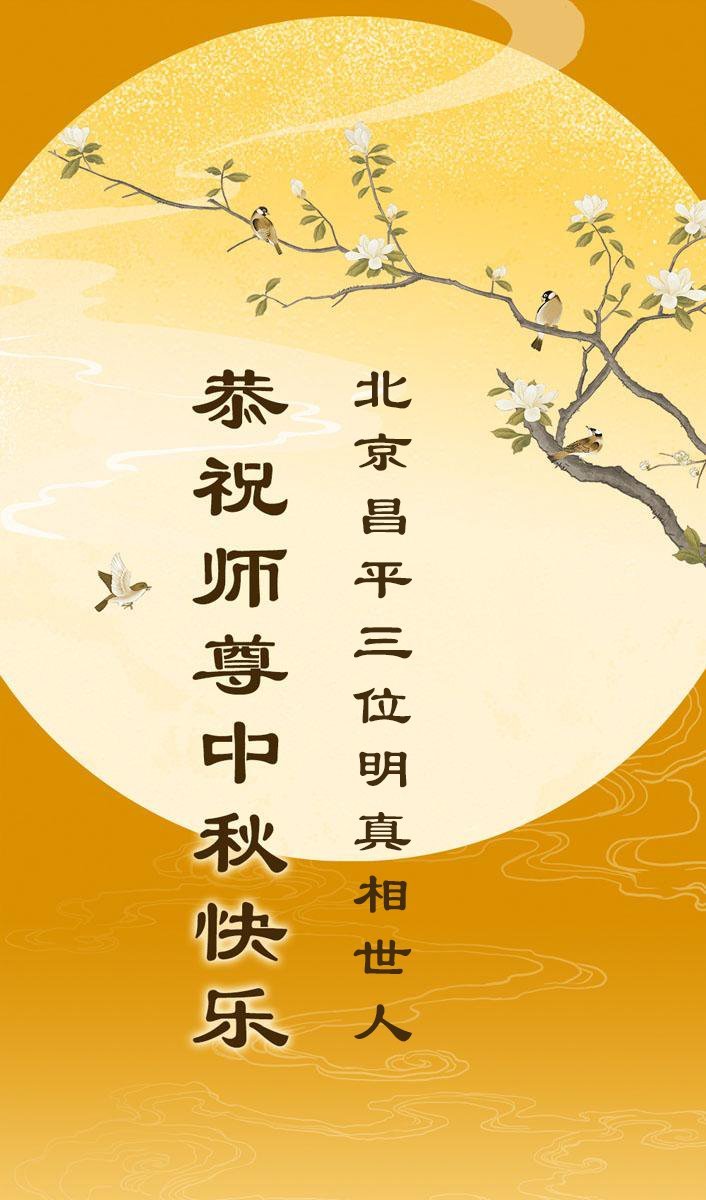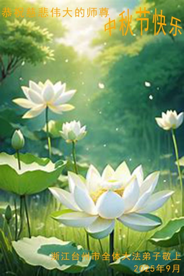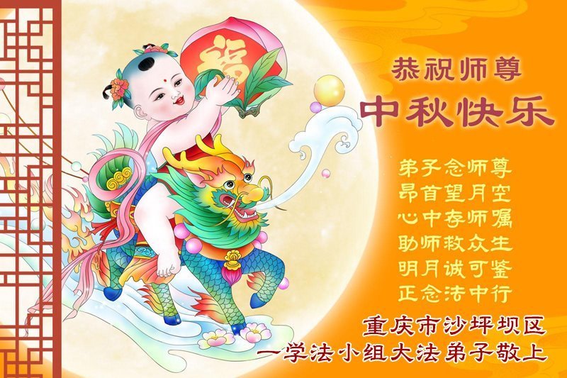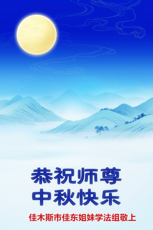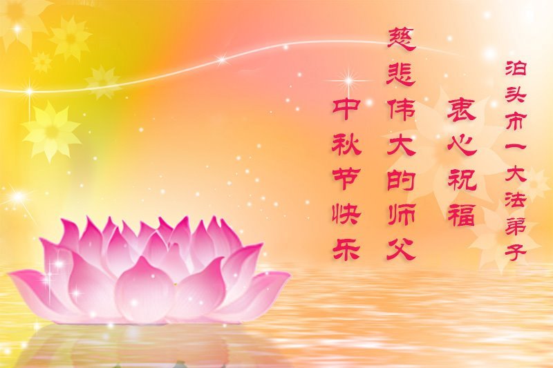 每逢佳节倍思亲!值此中秋佳节到来之际,我们宁波全体大法弟子将我们对师尊的思念与问候通过明慧转达,请师尊接受我们永恒的敬意与无尽的感恩!师恩浩荡!感恩师尊的慈悲救度!无论今后证实法与救度众生有多难多险,无论遇到多少意想不到的魔难与考验,弟子们都会坚修大法,同化真善忍,精進再精進,做好三件事,决不辜负师尊的慈悲苦度。