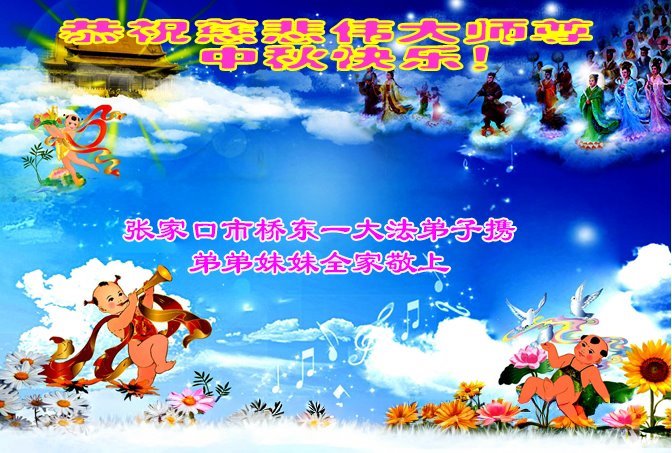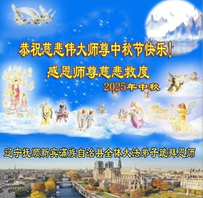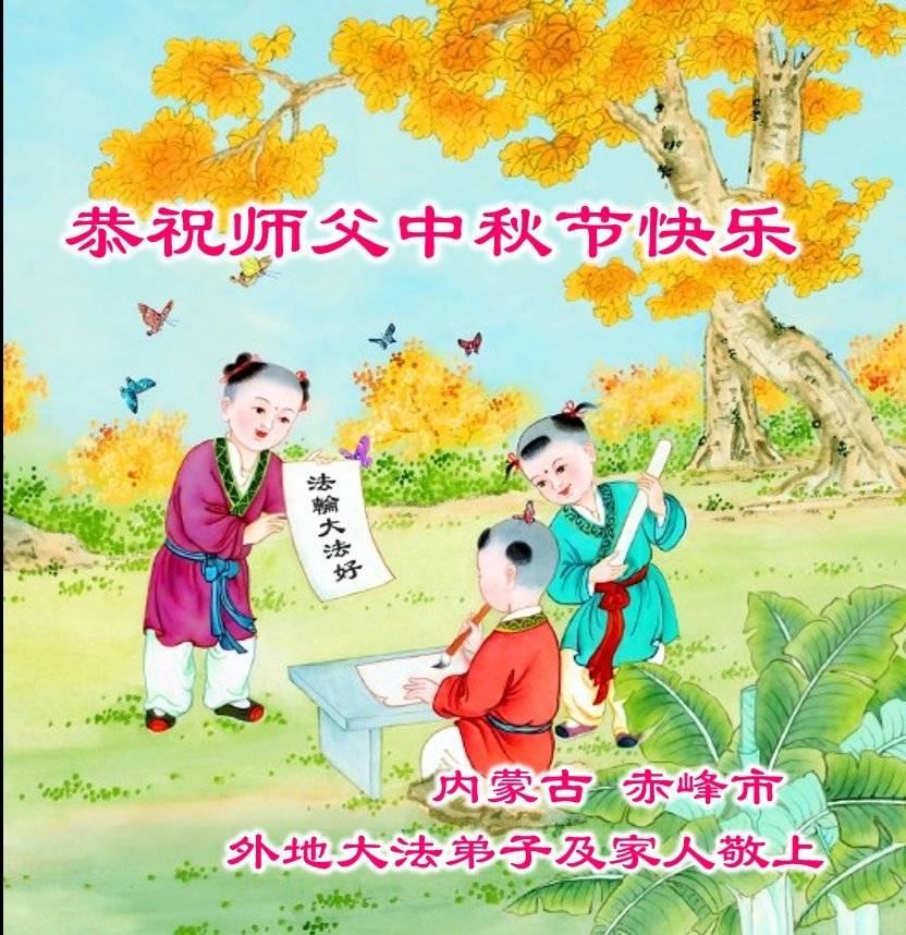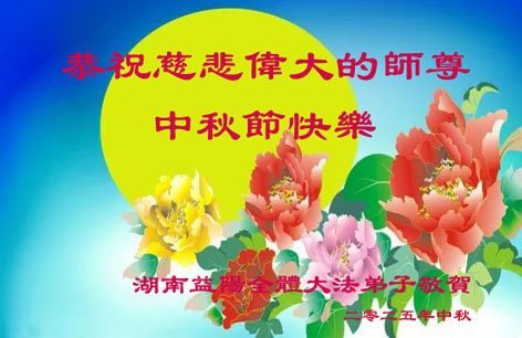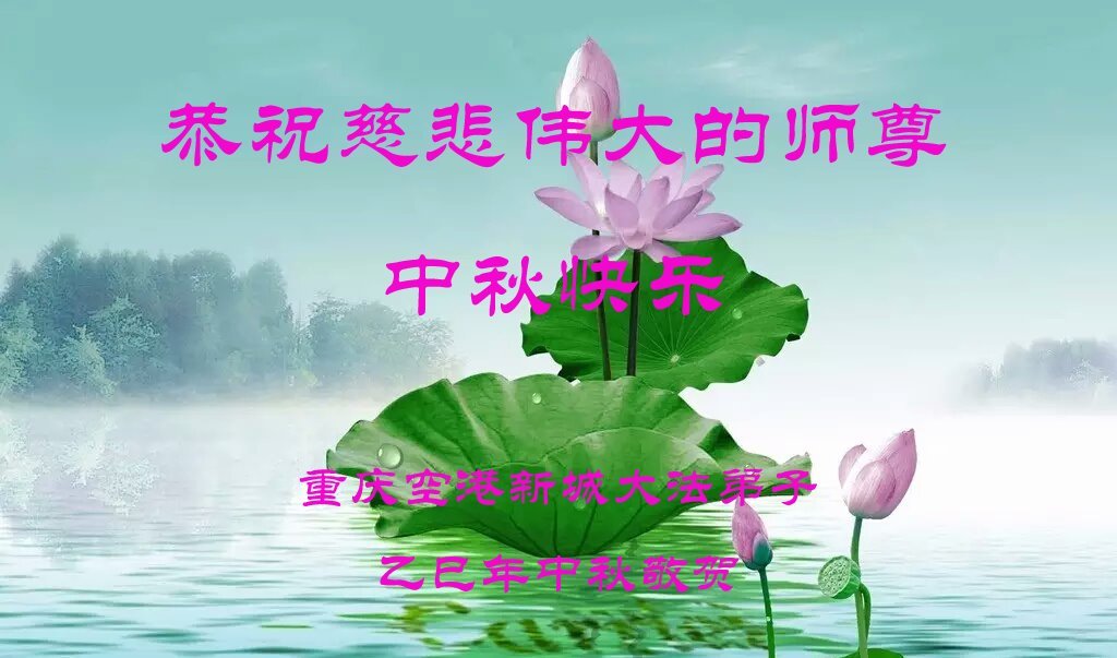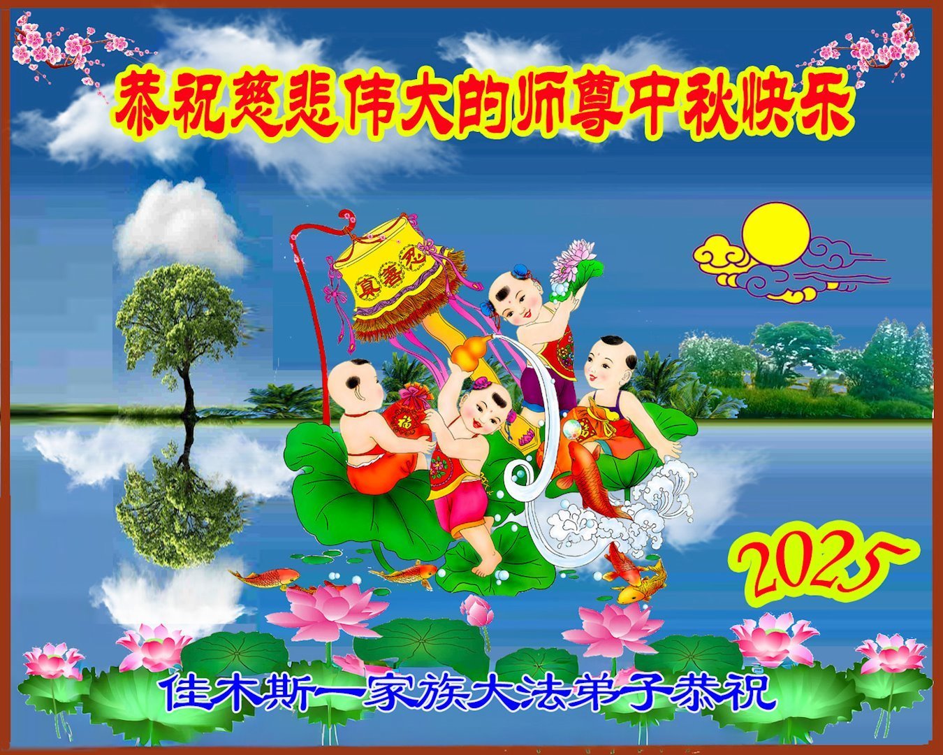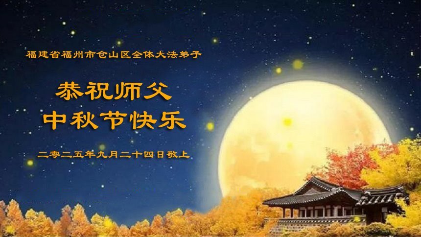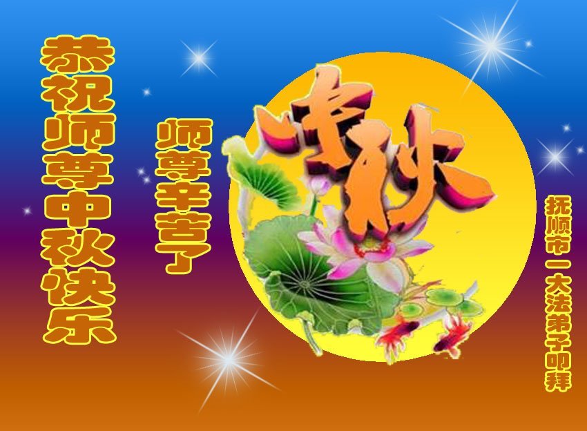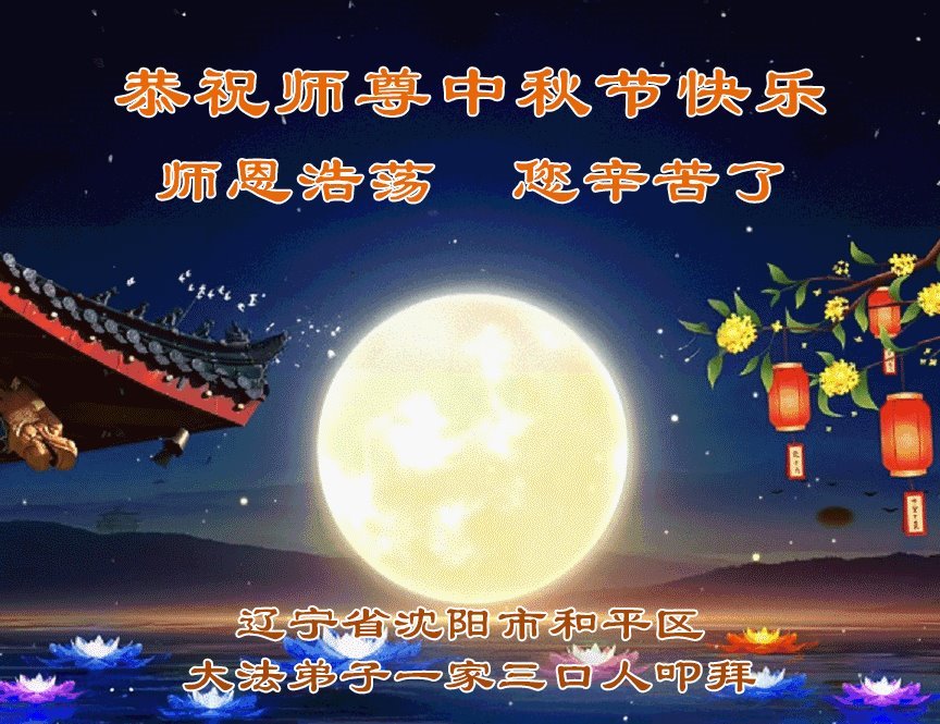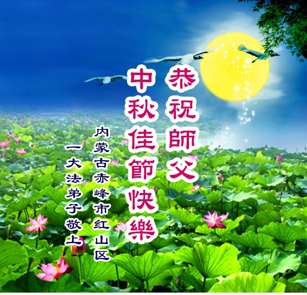 我们大法弟子携家人和明真相的世人恭祝师尊中秋节快乐!师尊辛苦了!谢谢师尊的慈悲苦度!弟子一定破除旧势力的安排,消除间隔,形成强大的整体,反迫害,救度众生。弟子们要多学法,学好法,发好正念,向内找,兑现自己的誓约,跟师父回家。