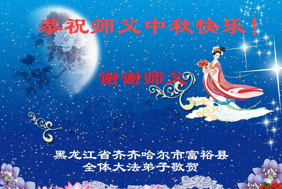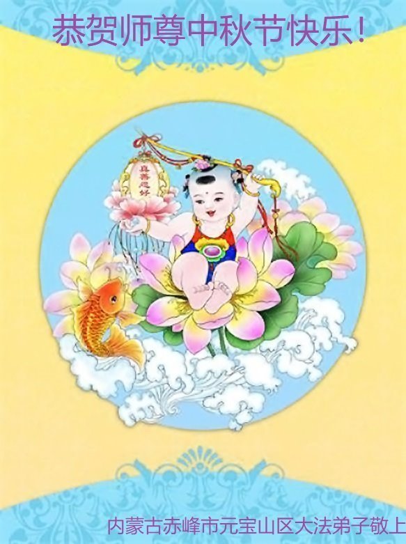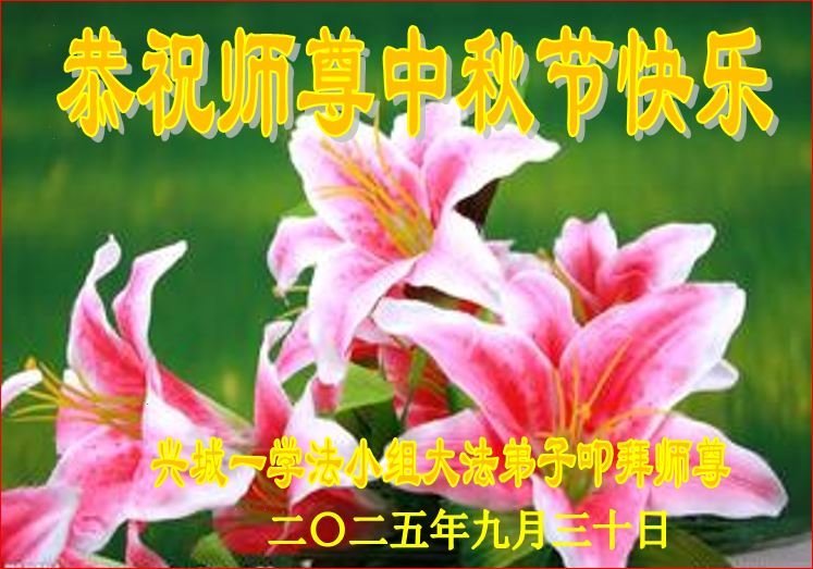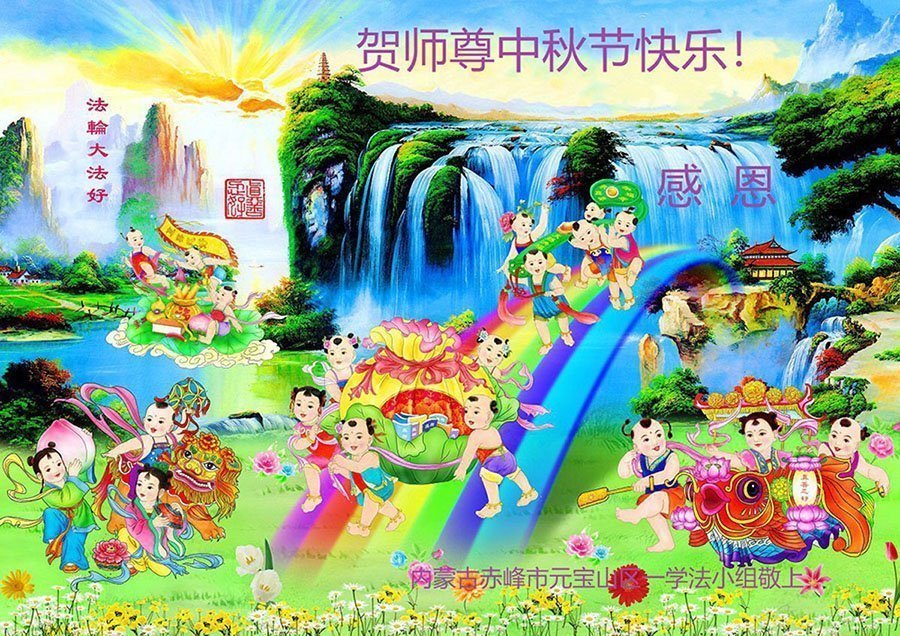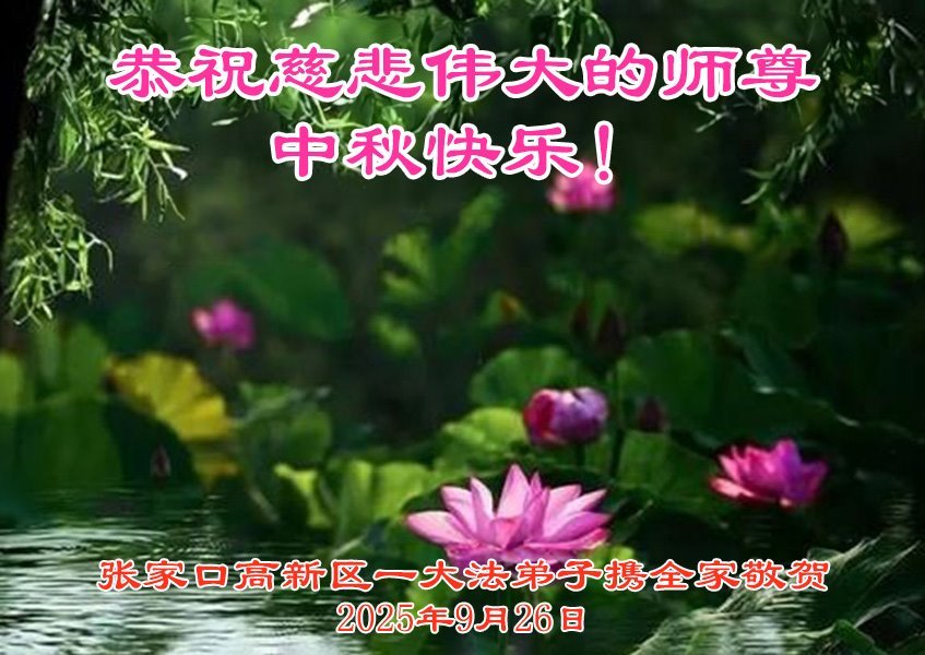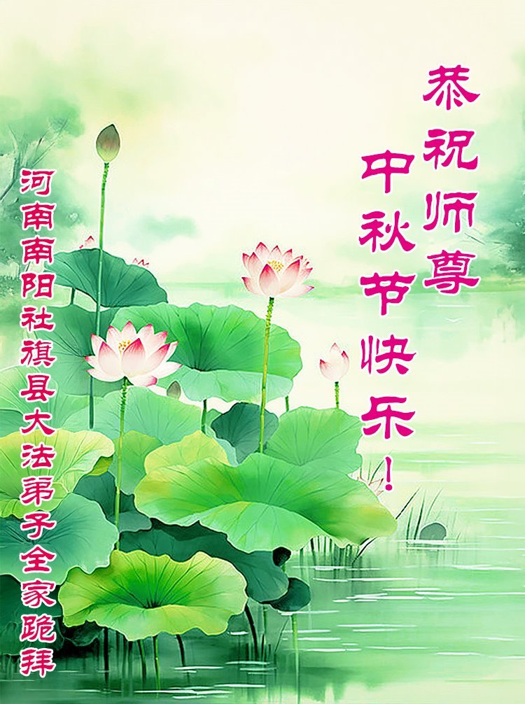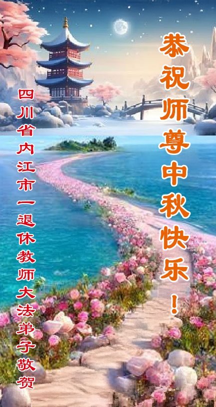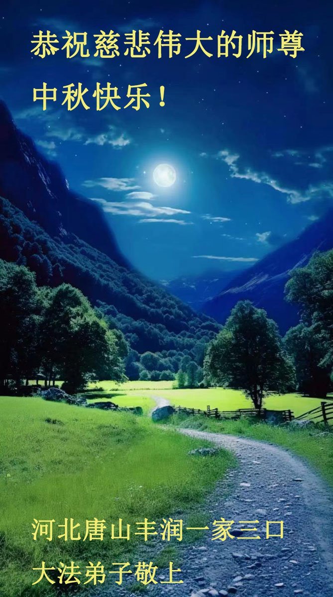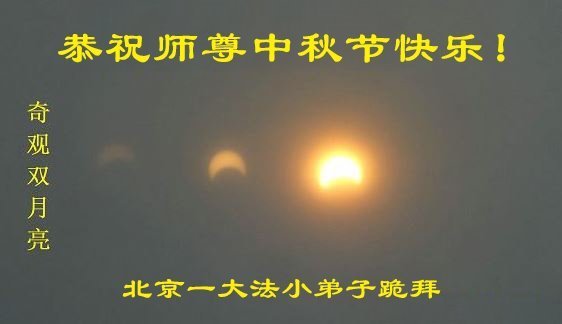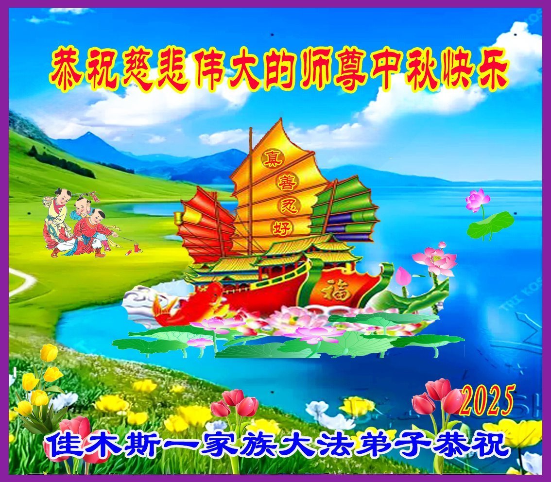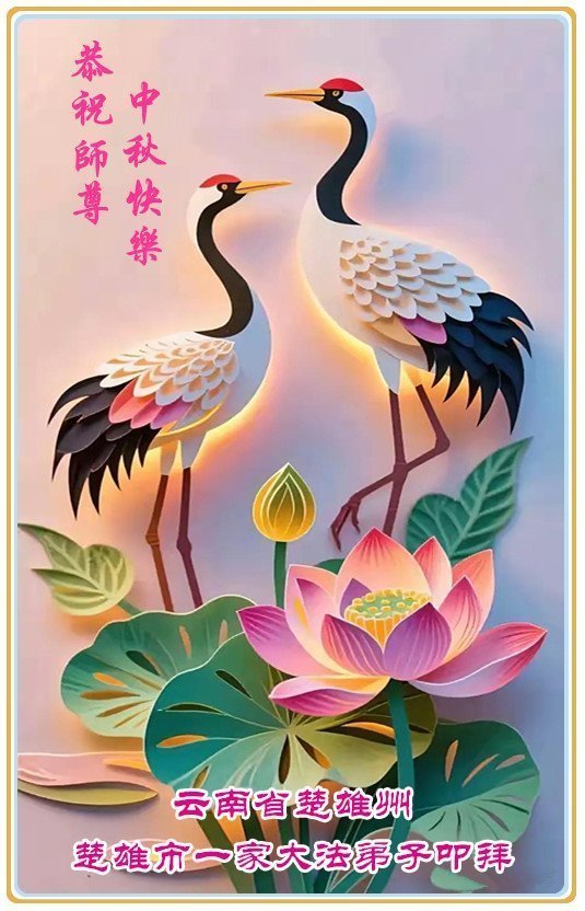 我们大法弟子携家人和明真相的世人恭祝师尊中秋节快乐!师尊辛苦了!谢谢师尊的慈悲苦度!弟子一定破除旧势力的安排,消除间隔,形成强大的整体,反迫害,救度众生。弟子们要多学法,学好法,发好正念,向内找,兑现自己的誓约,跟师父回家。