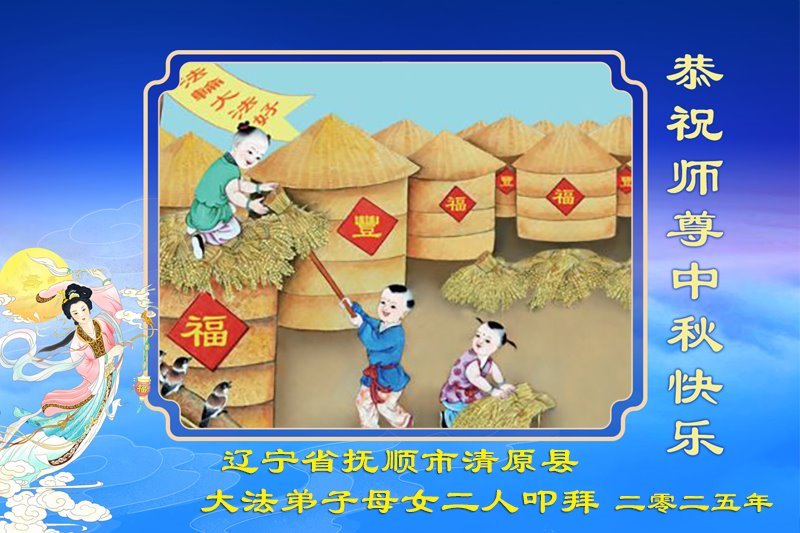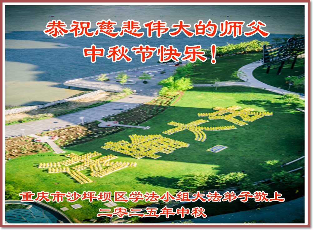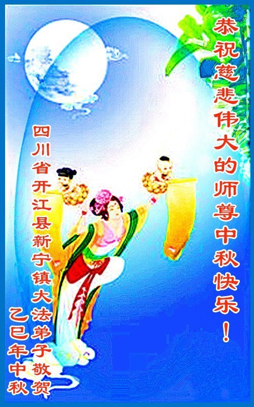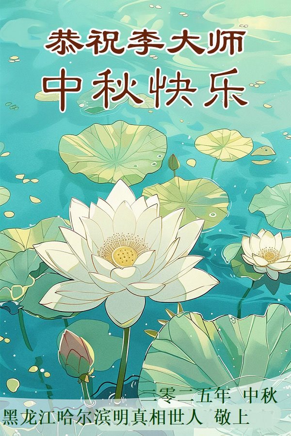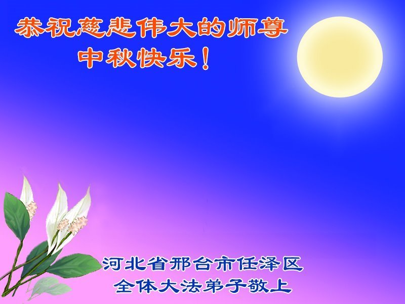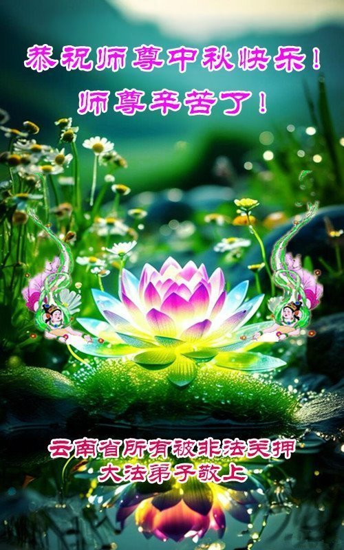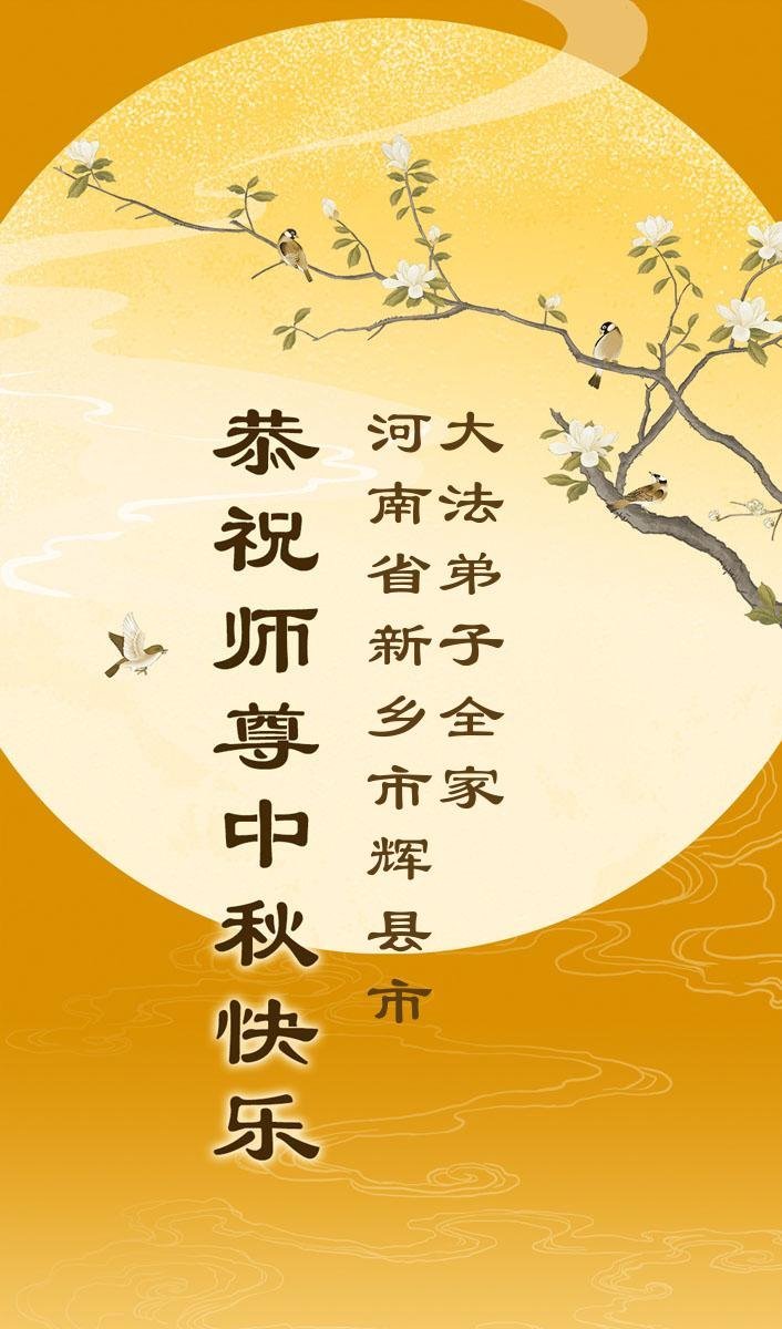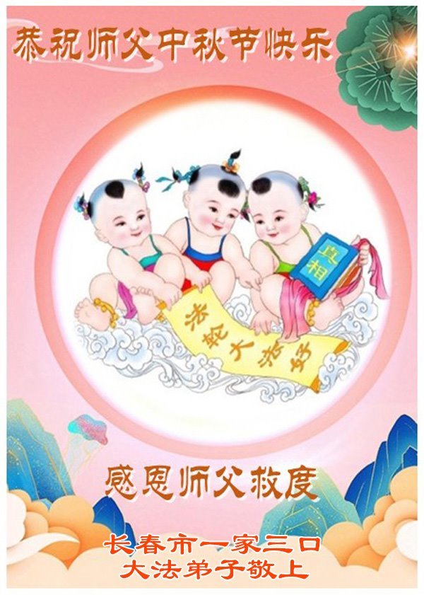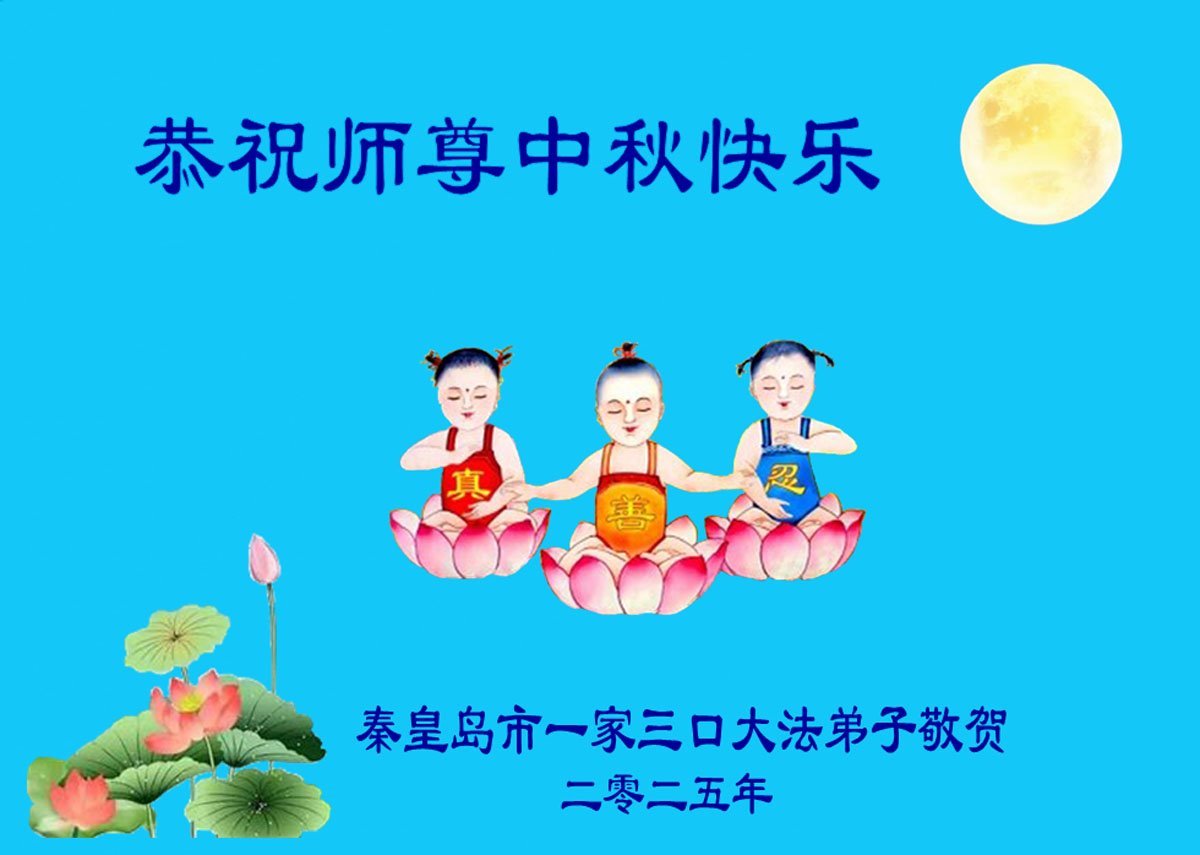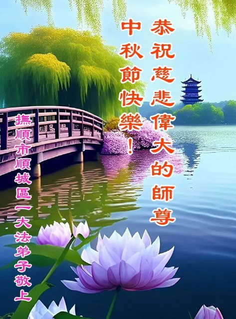我们大法弟子携家人和明真相的世人恭祝师尊中秋节快乐!师尊辛苦了!谢谢师尊的慈悲苦度!弟子一定破除旧势力的安排,消除间隔,形成强大的整体,反迫害,救度众生。弟子们要多学法,学好法,发好正念,向内找,兑现自己的誓约,跟师父回家。