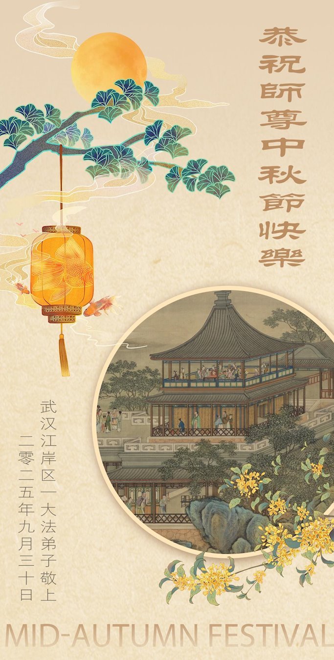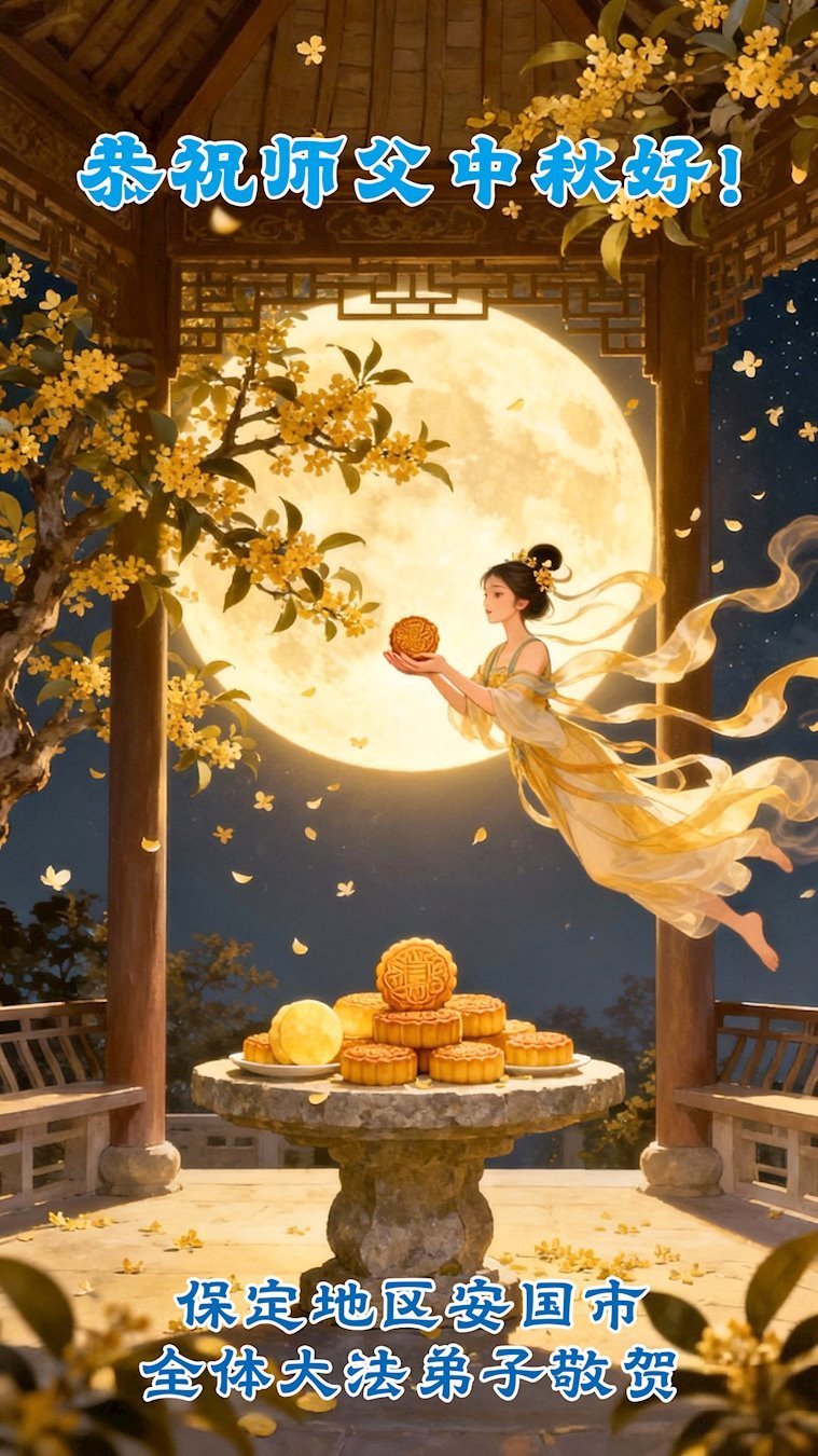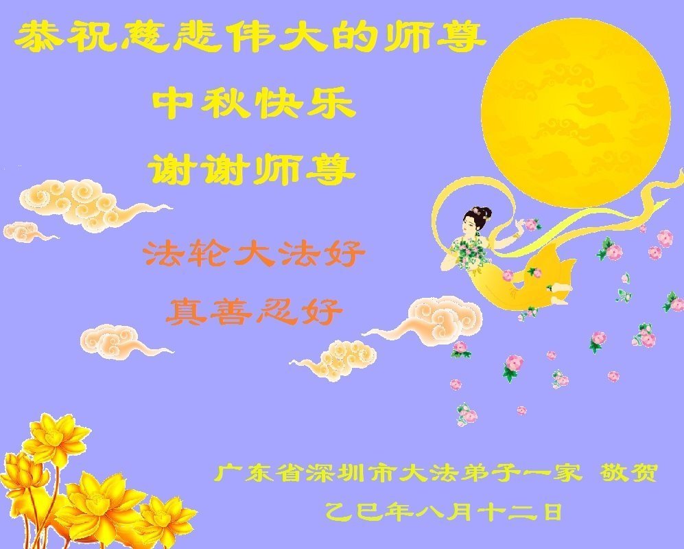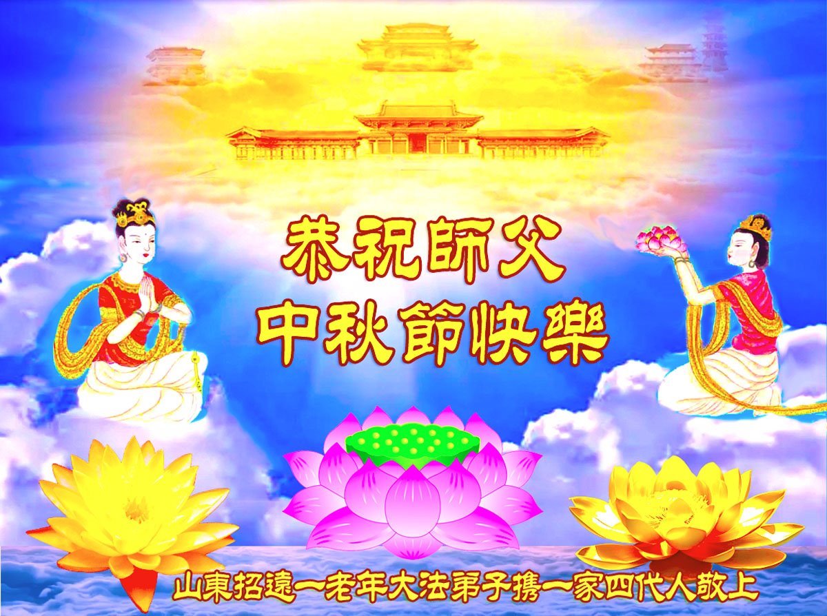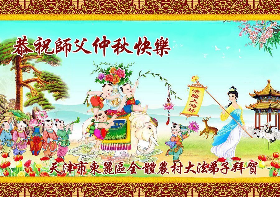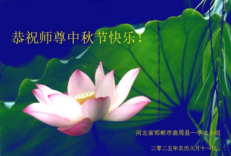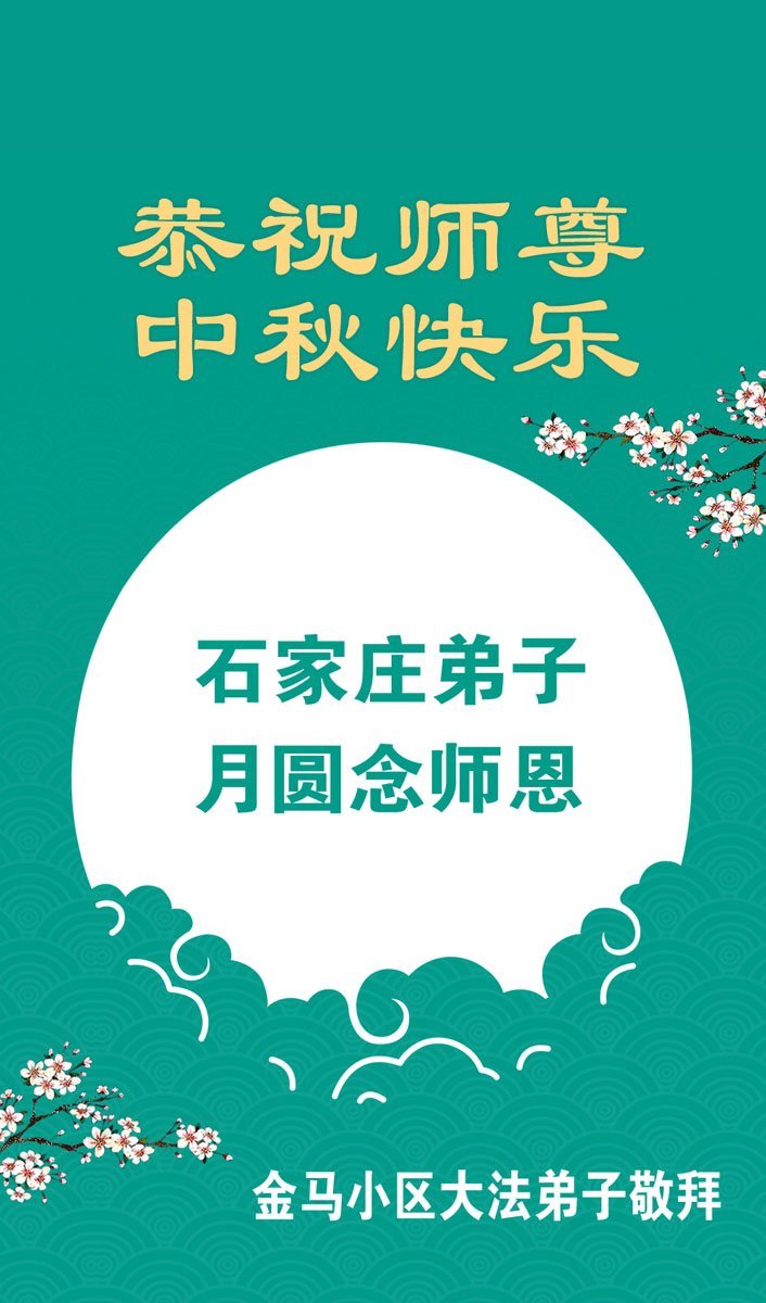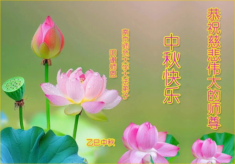 我们大法弟子携家人和明真相的世人恭祝师尊中秋节快乐!师尊辛苦了!谢谢师尊的慈悲苦度!弟子一定破除旧势力的安排,消除间隔,形成强大的整体,反迫害,救度众生。弟子们要多学法,学好法,发好正念,向内找,兑现自己的誓约,跟师父回家。