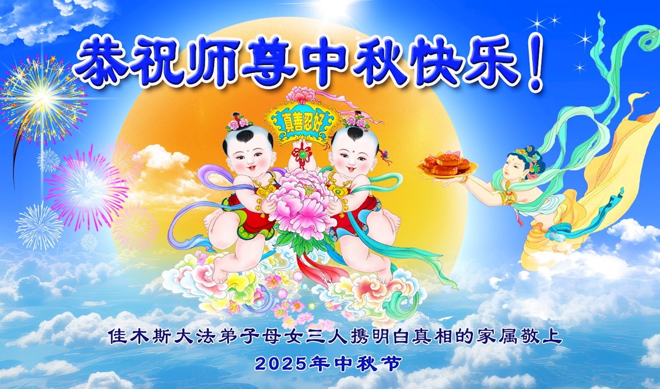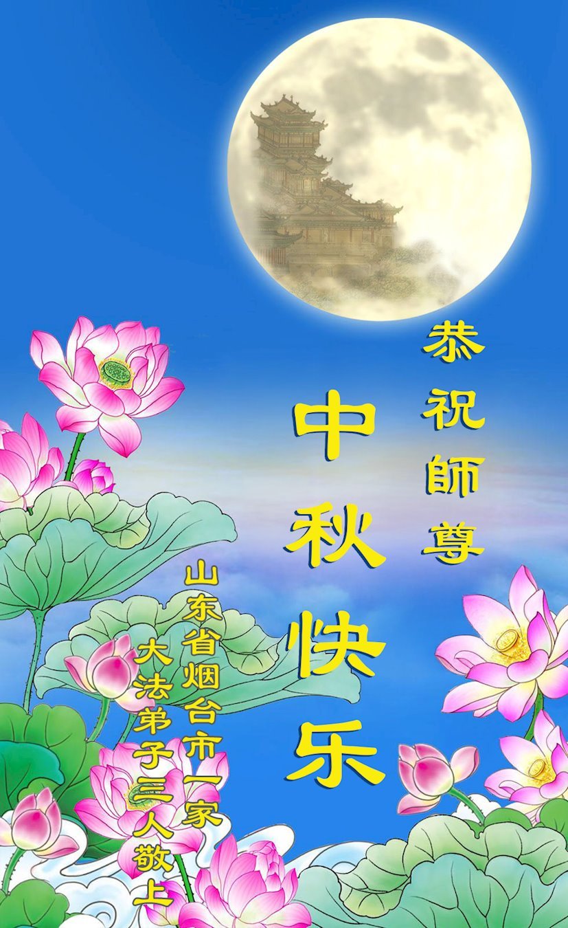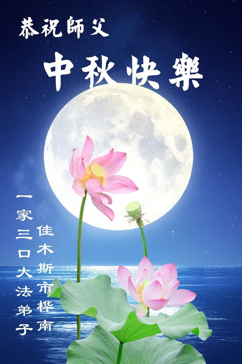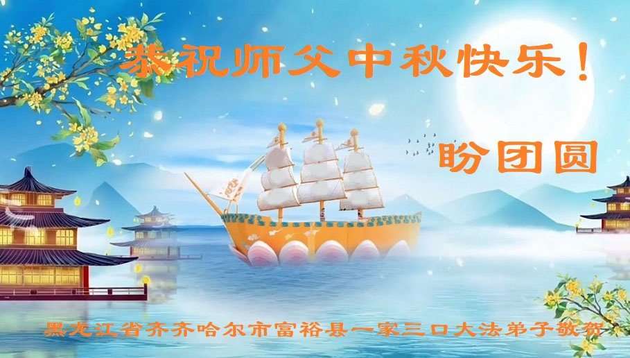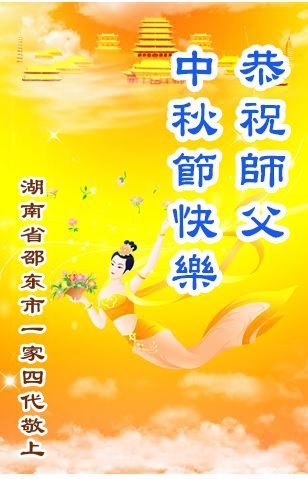 师父您好!我的家人们很早就明白了真相三:退.了,选择了美好的未来。在中秋佳节来临之际,全家衷心感恩大法师父,并祝愿大法师父中秋节快乐!