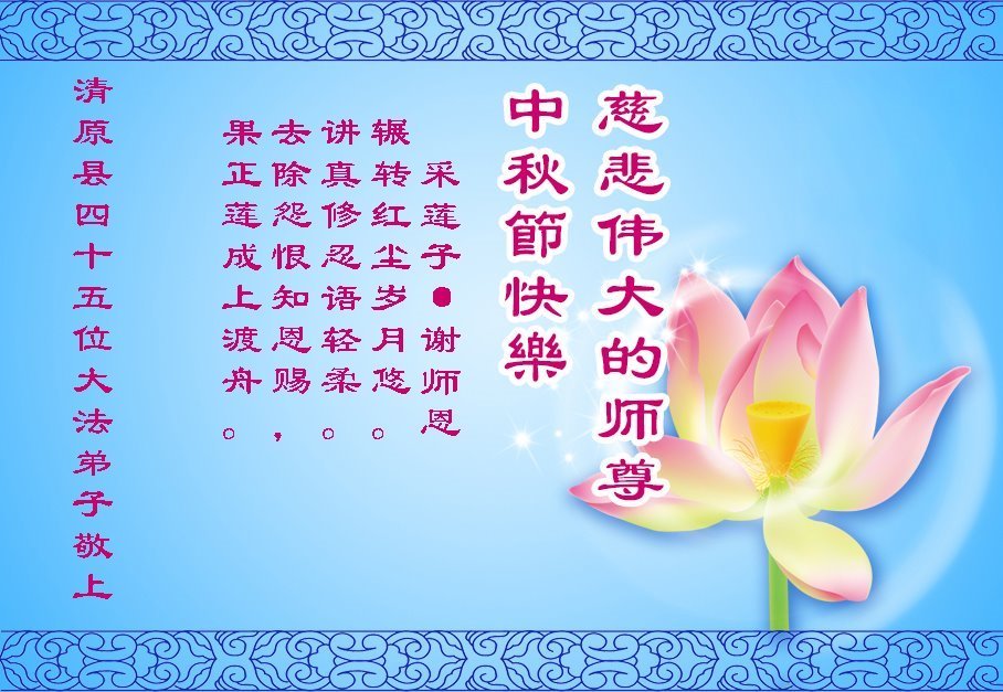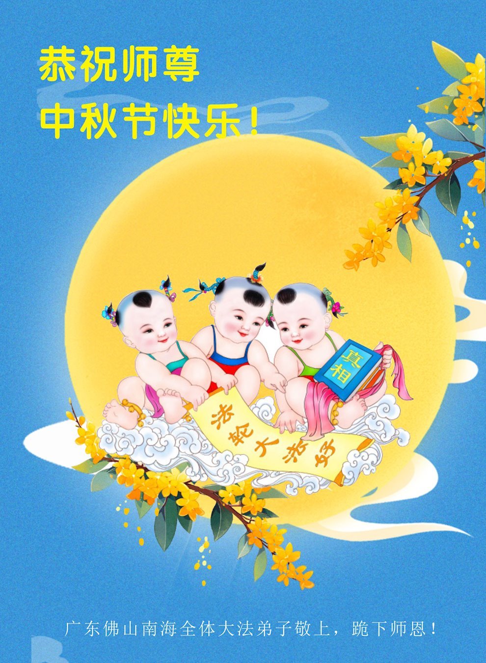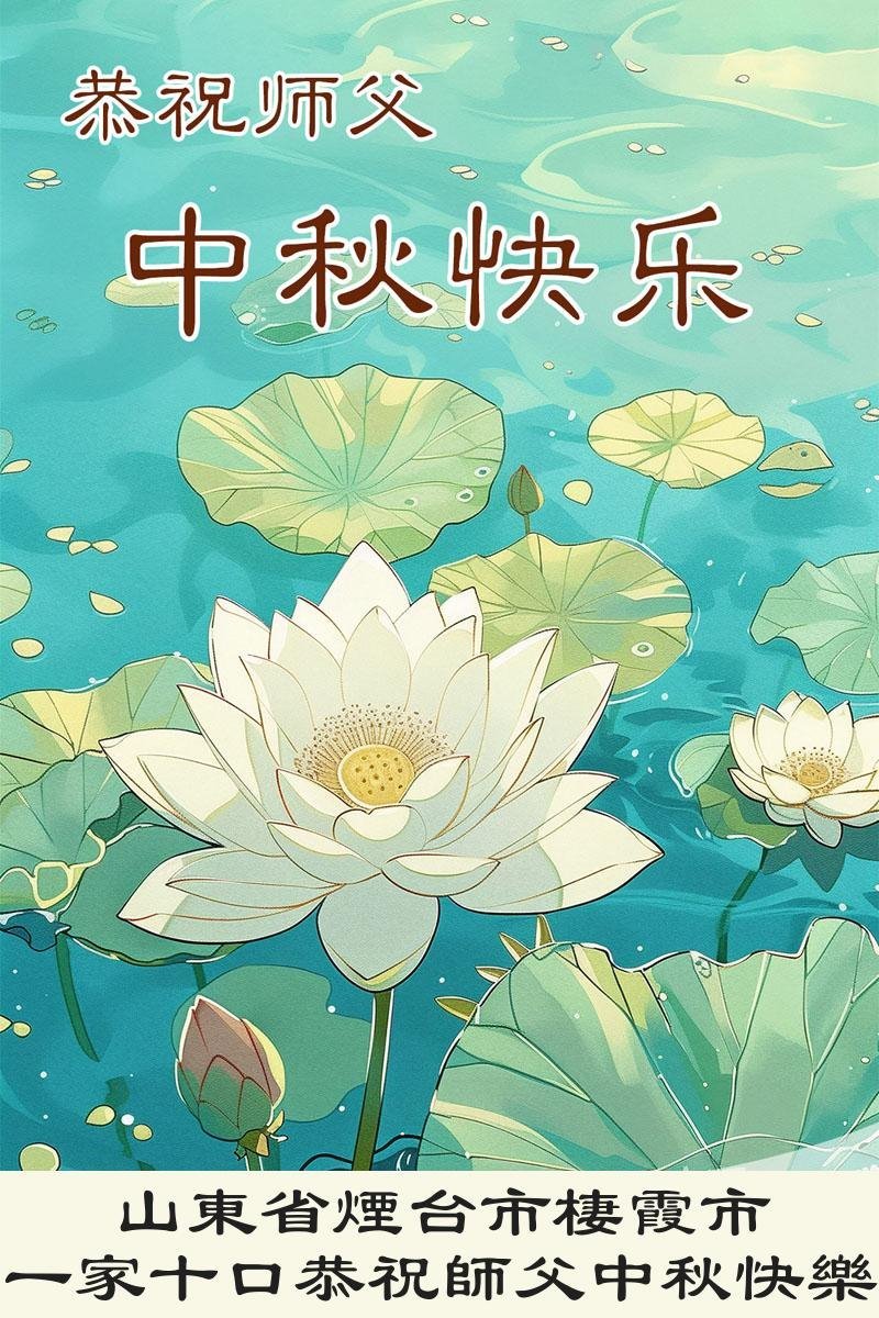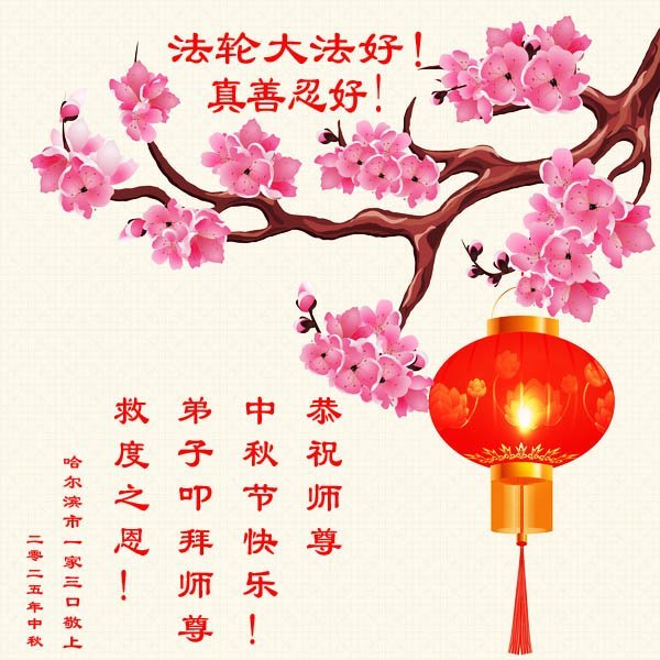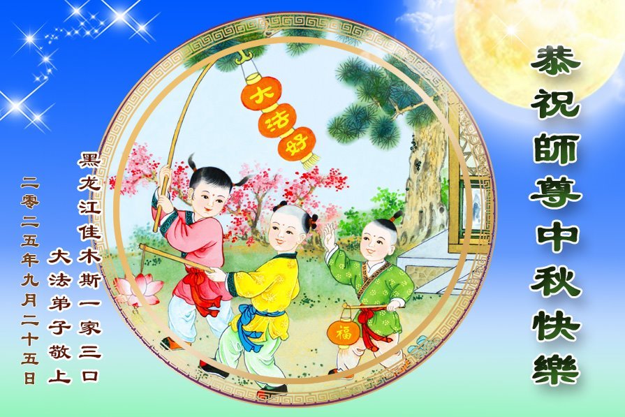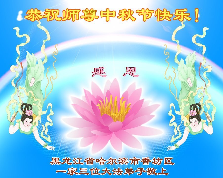 师父您好!我的家人们很早就明白了真相三:退.了,选择了美好的未来。在中秋佳节来临之际,全家衷心感恩大法师父,并祝愿大法师父中秋节快乐!