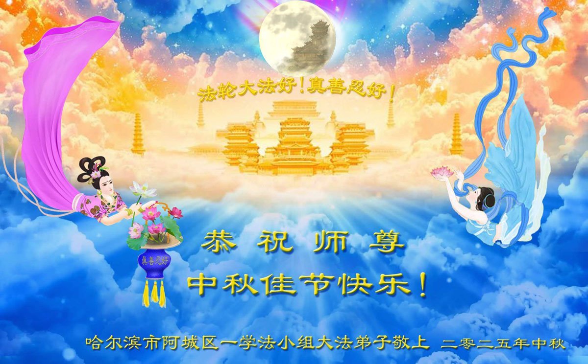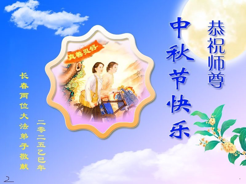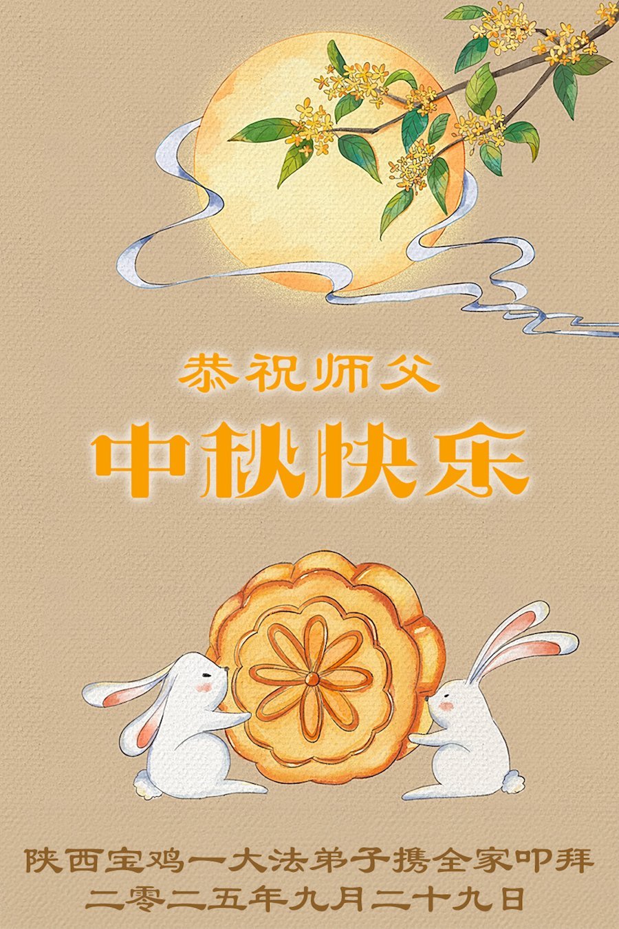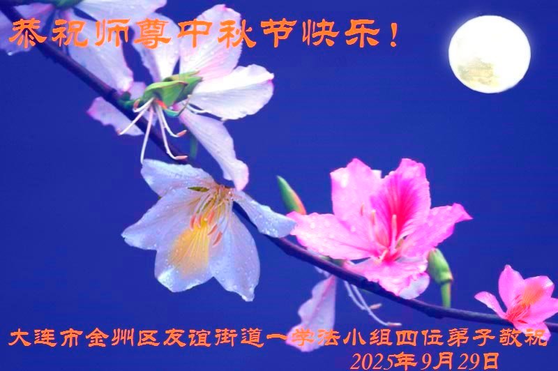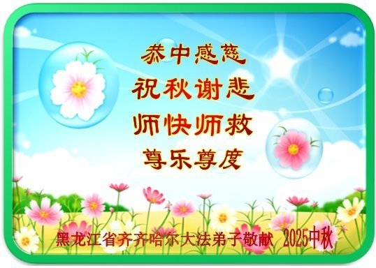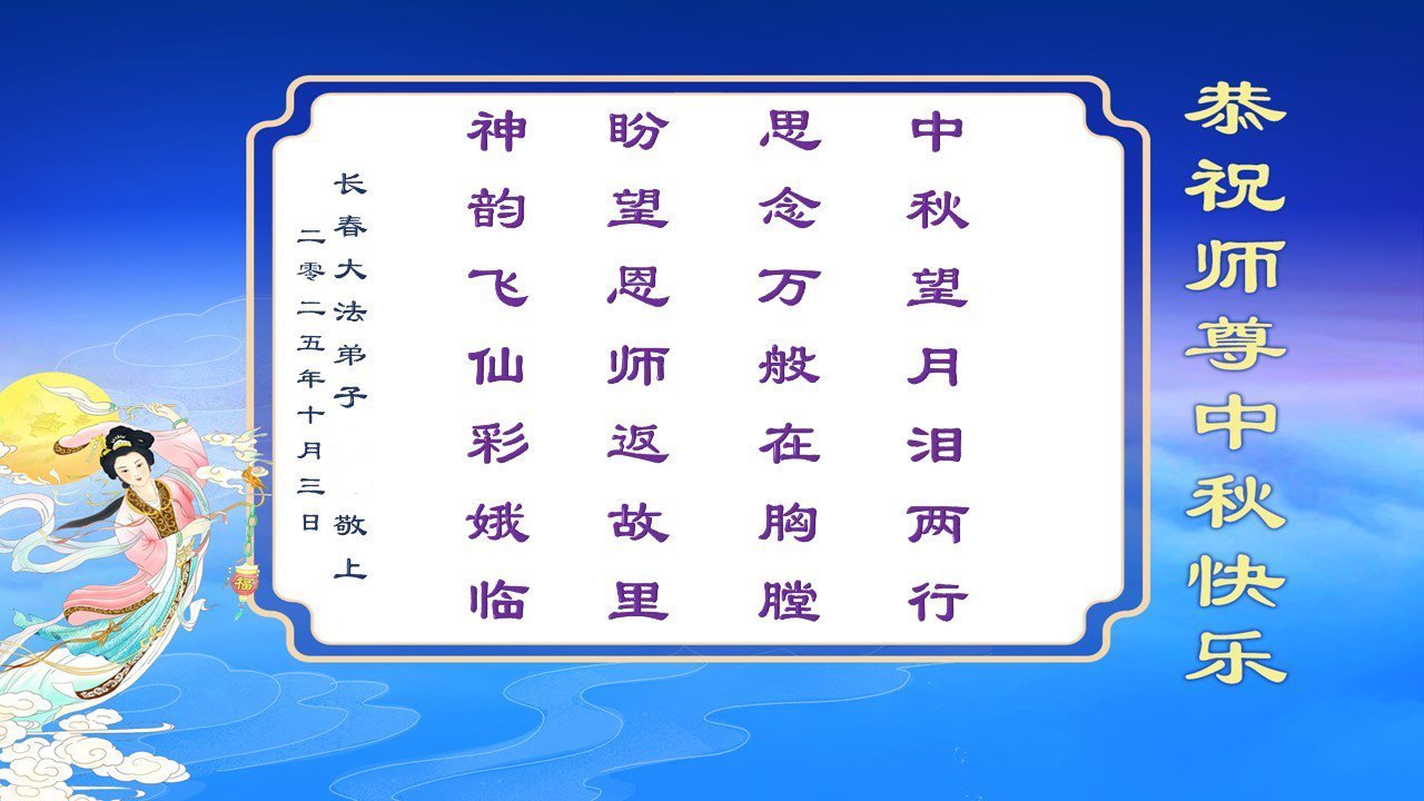 【明慧网二零二五年十月五日】(明慧网通讯员综合报道)海天一碧月儿圆,随师正法在人间。在这中秋佳节万家团圆的日子里,中国大陆各省市大法弟子们万分想念师父,感恩师父!感念师尊亲临世间传大法,赐予众生得救的万古机缘。不管未来的路是艰难还是平坦,弟子们都会义无反顾的紧随师尊,把阳光与希望洒向人间。